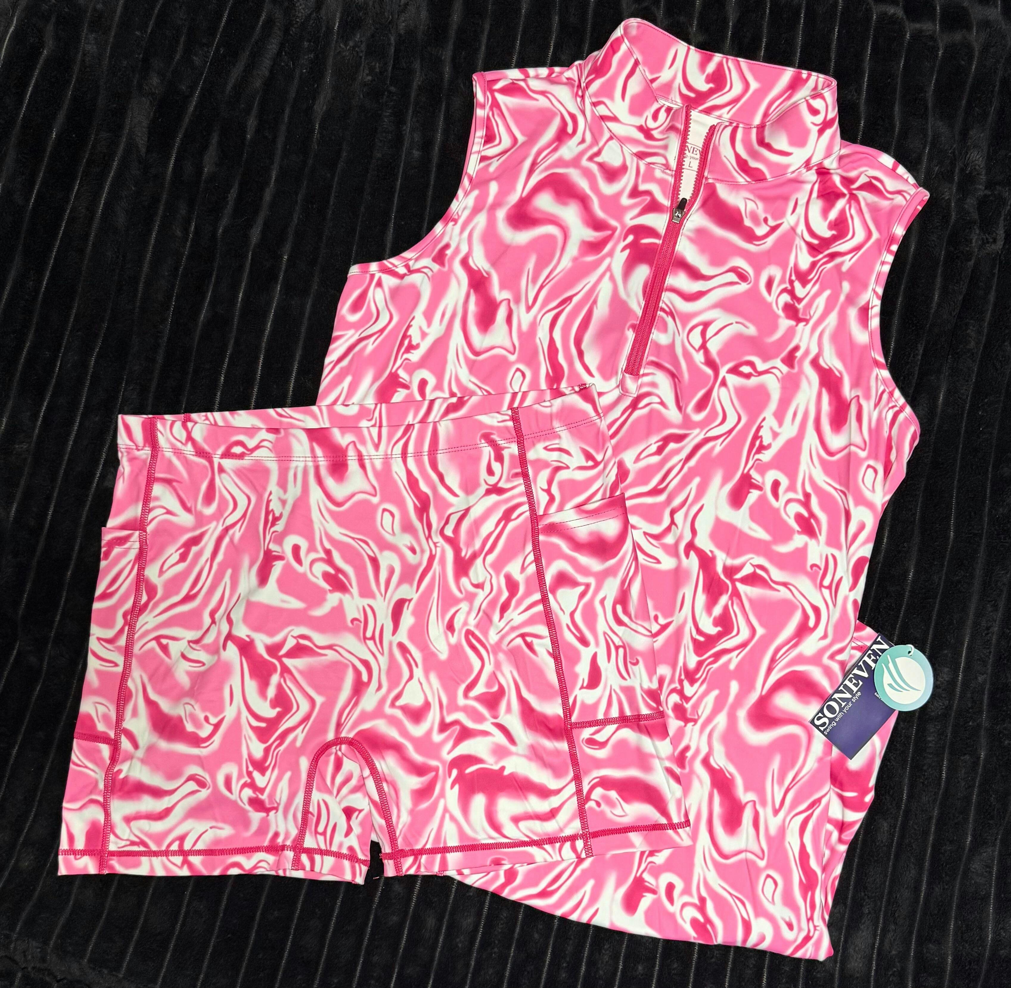 Pink Water Ripples 35" Stand-collar Sleeveless Dress with Pockets and Shorts