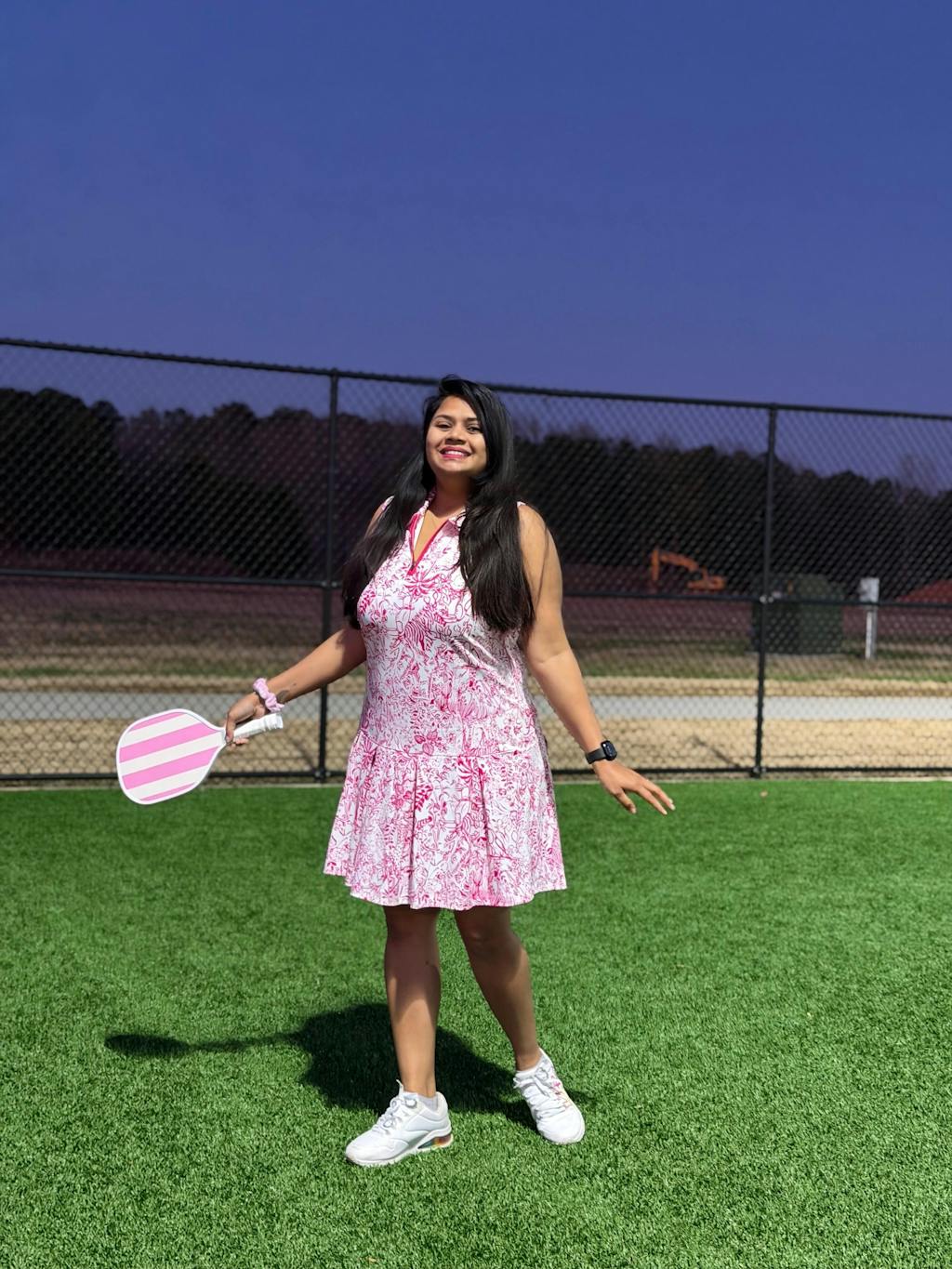Embrace the wild spirit with our sleeveless pleated dress from our Call of the Wild Collection. Crafted from 4-way stretch fabric, this women's golf dress ensures a full range of motion. The flowy 34" hem makes it the perfect blend of comfort and style for the court or green.