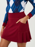 Bring the heat with our red skort that's built for action. Paired with integrated shorts and handy pockets, you've got everything you need right at your fingertips. The breathable, quick-dry fabric whisks moisture away while the stretchy blend gives you total freedom to move. Perfect for your next tennis match, golf round, pickleball game, or celebration.
