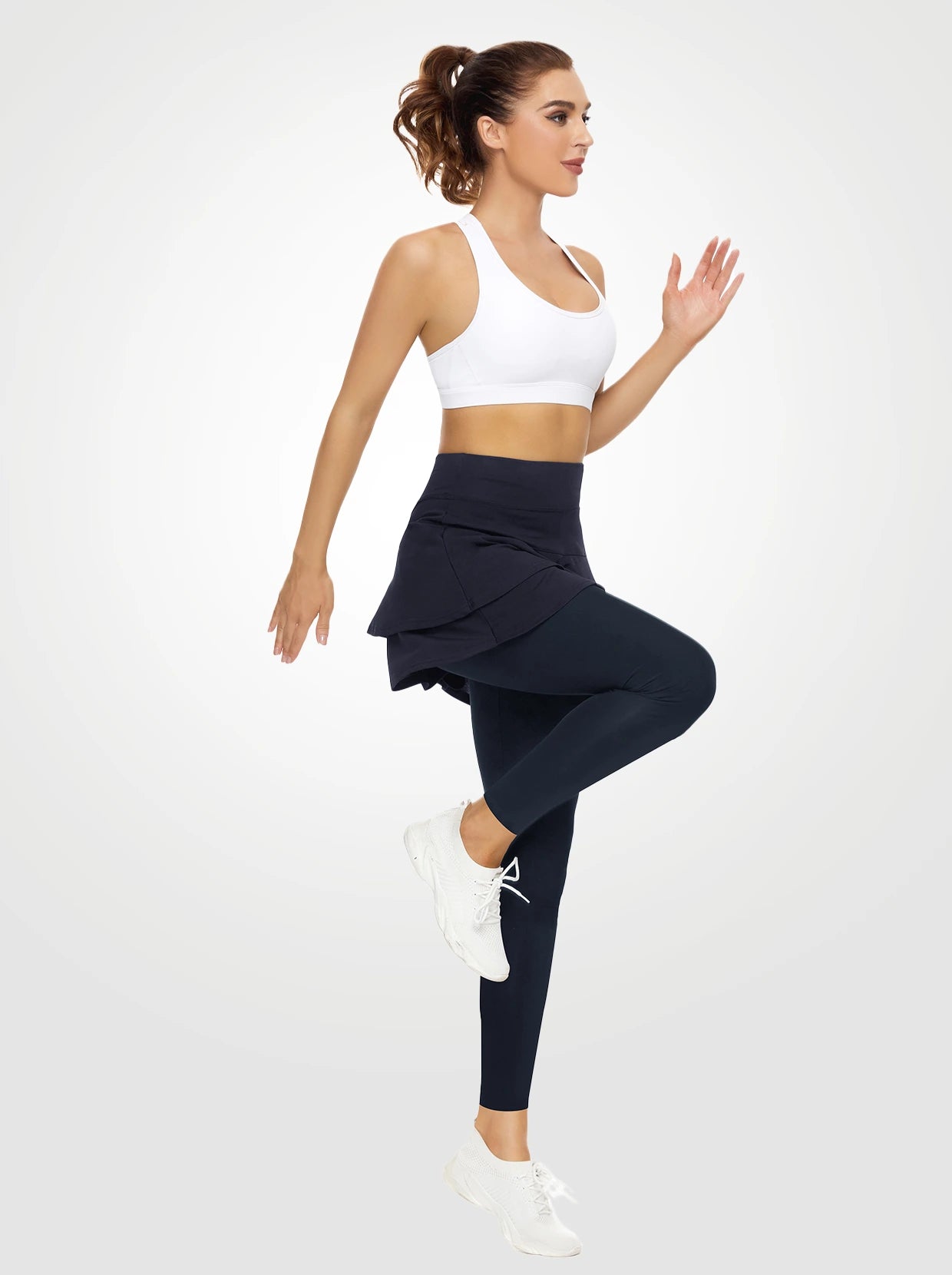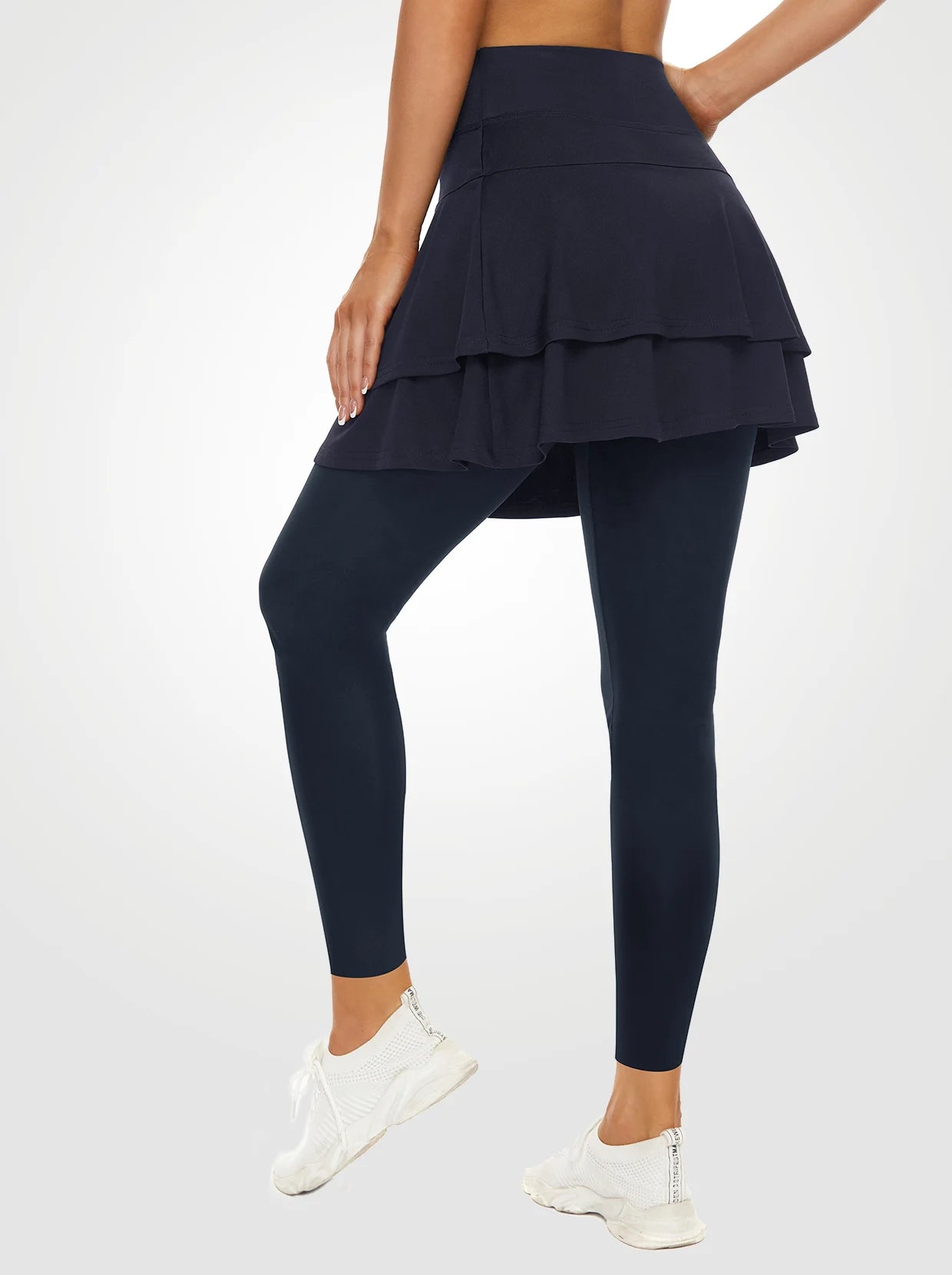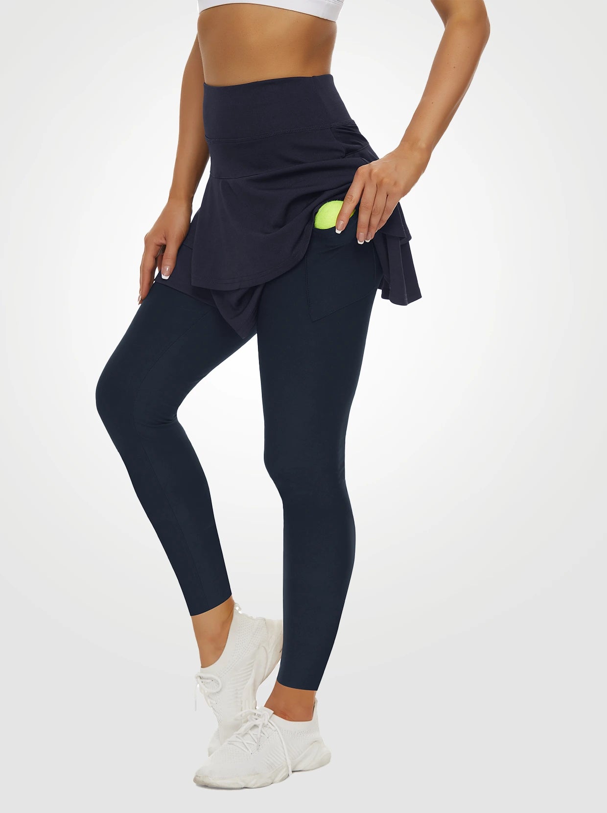 Soneven Pleated Athletic Skirted Leggings with Pockets