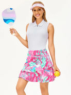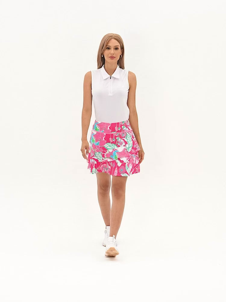 Serve up style and performance in these vibrant active skorts from our Awaken in Bloom Collection. The 4-way stretch fabric adapts to your body's natural movements, giving you the freedom to move without limits. The integrated shorts provide the coverage and confidence you need. Lightweight and comfortable enough for all-day wear, ideal for golf, tennis, pickleball, or everyday style.