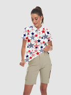 Multicolor Stars Quarter-Zip Short-sleeve Golf Polo for Women