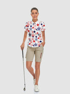 Elevate your golf game with our Multicolor Stars Short-sleeve Golf Polo for Women. This stylish polo combines comfort and performance, featuring moisture-wicking fabric that keeps you cool on the course. The eye-catching multicolor star pattern adds a touch of fun to your outfit, while the classic fit ensures ease of movement. Perfect for transitioning from the course to social outings, this polo showcases your unique style while delivering exceptional playability.