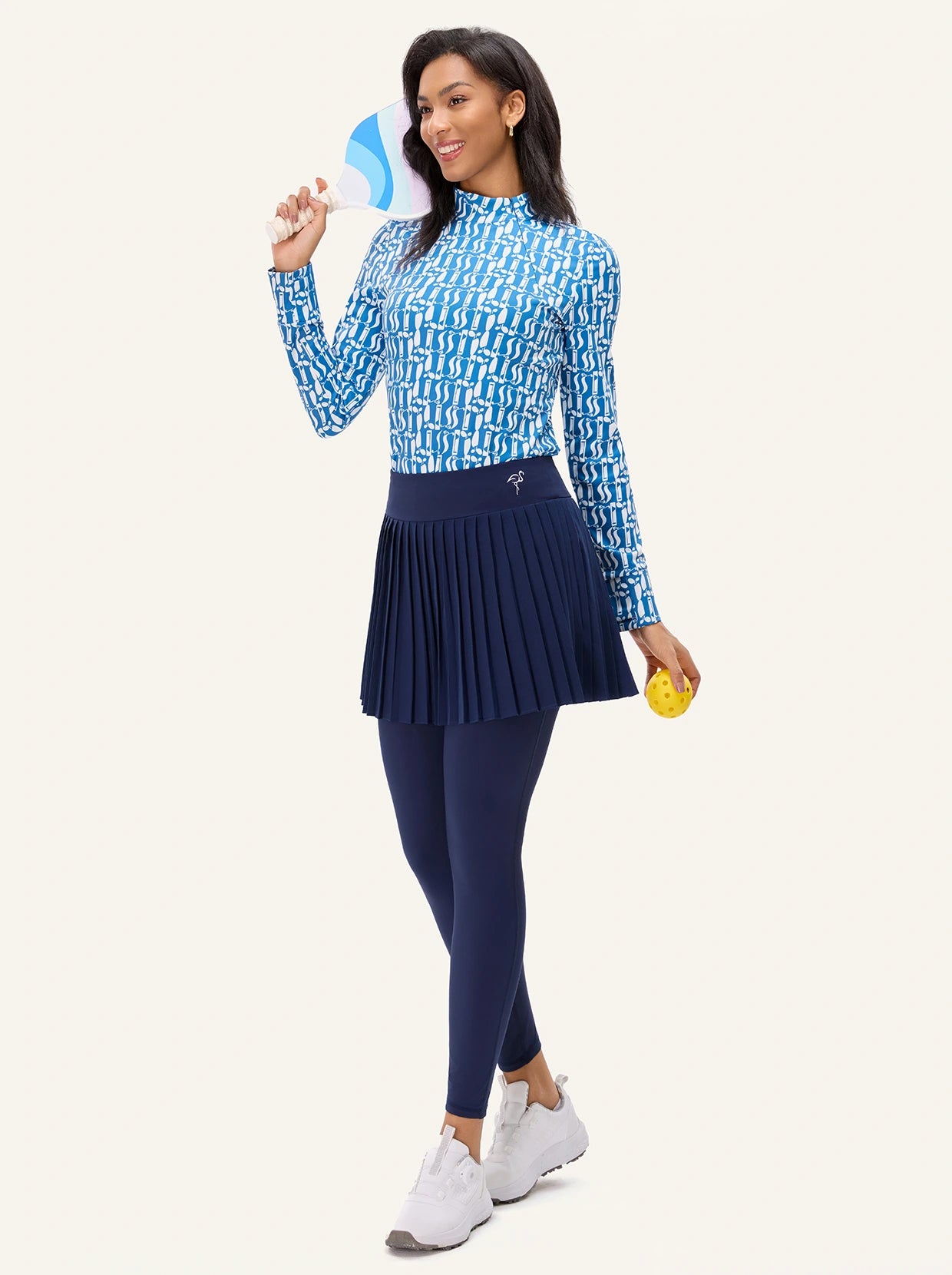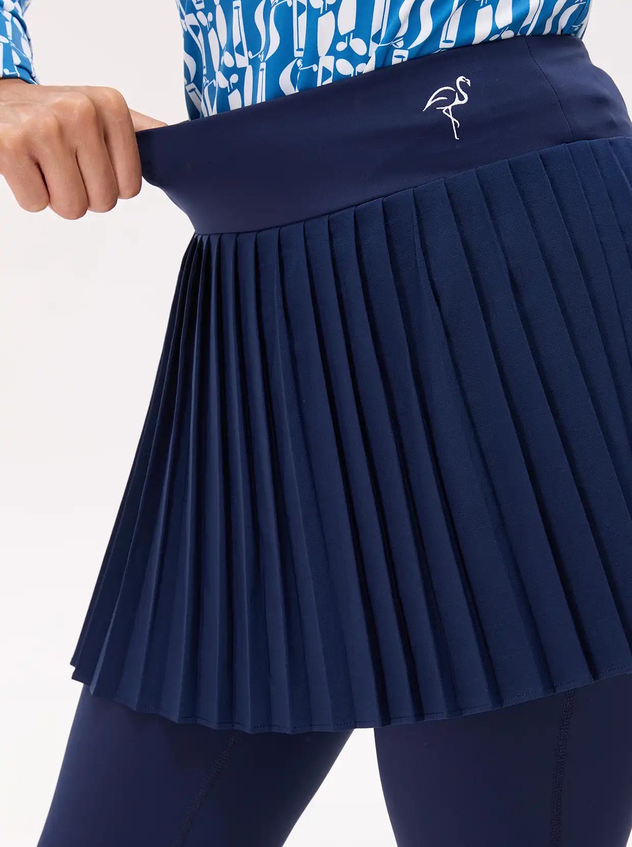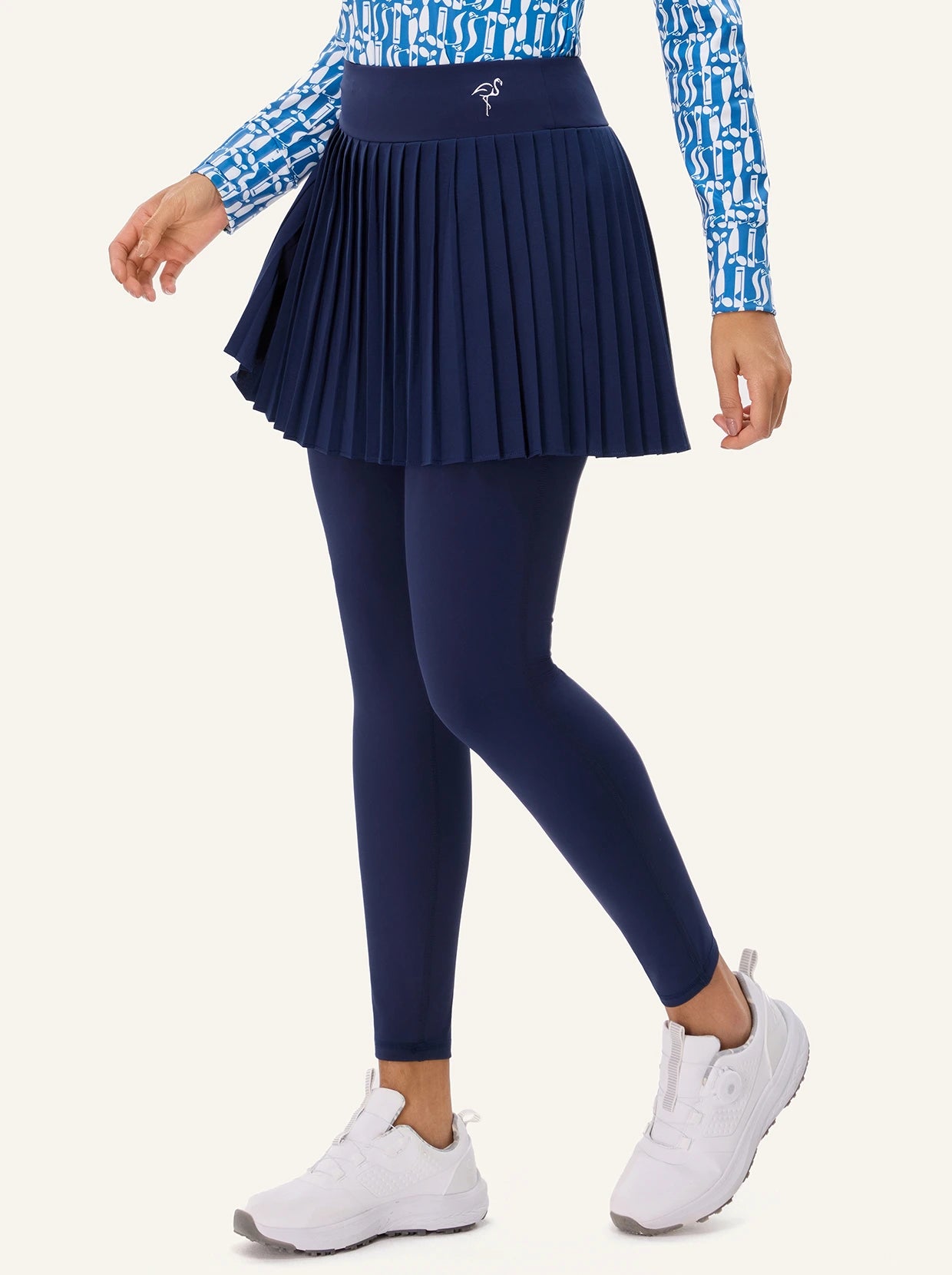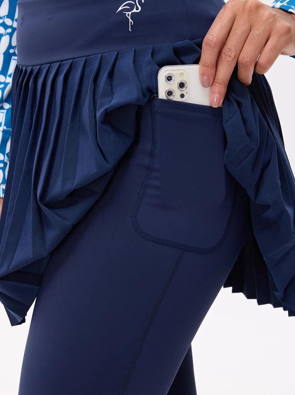 Navy Nylon Pleated Skirted Leggings (Ship in 7 Days)