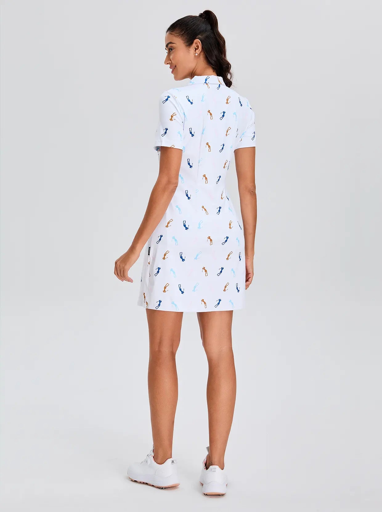 Golfer Pattern 33" Zipper Short-Sleeve Polo Dress With Inner Shorts