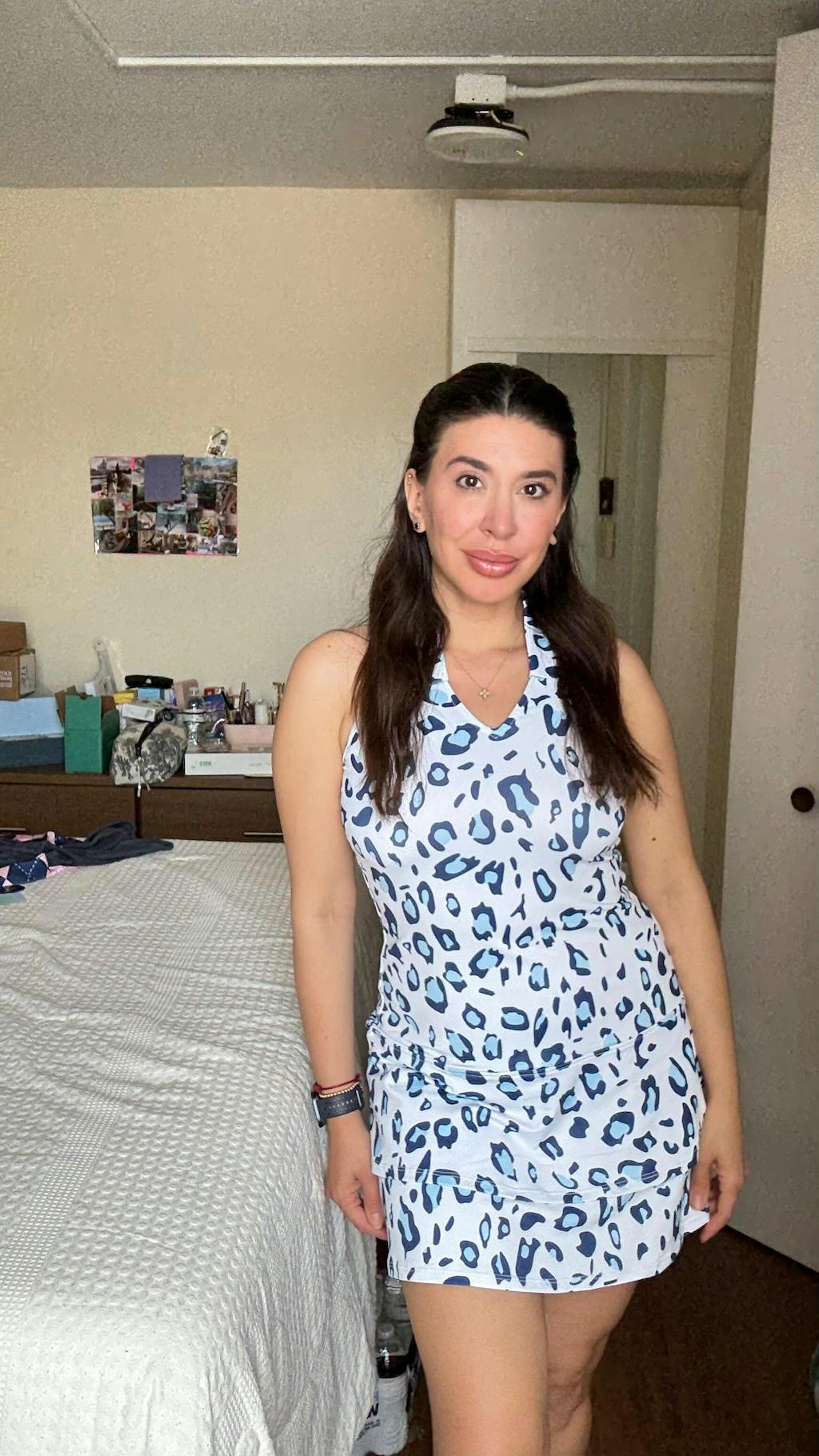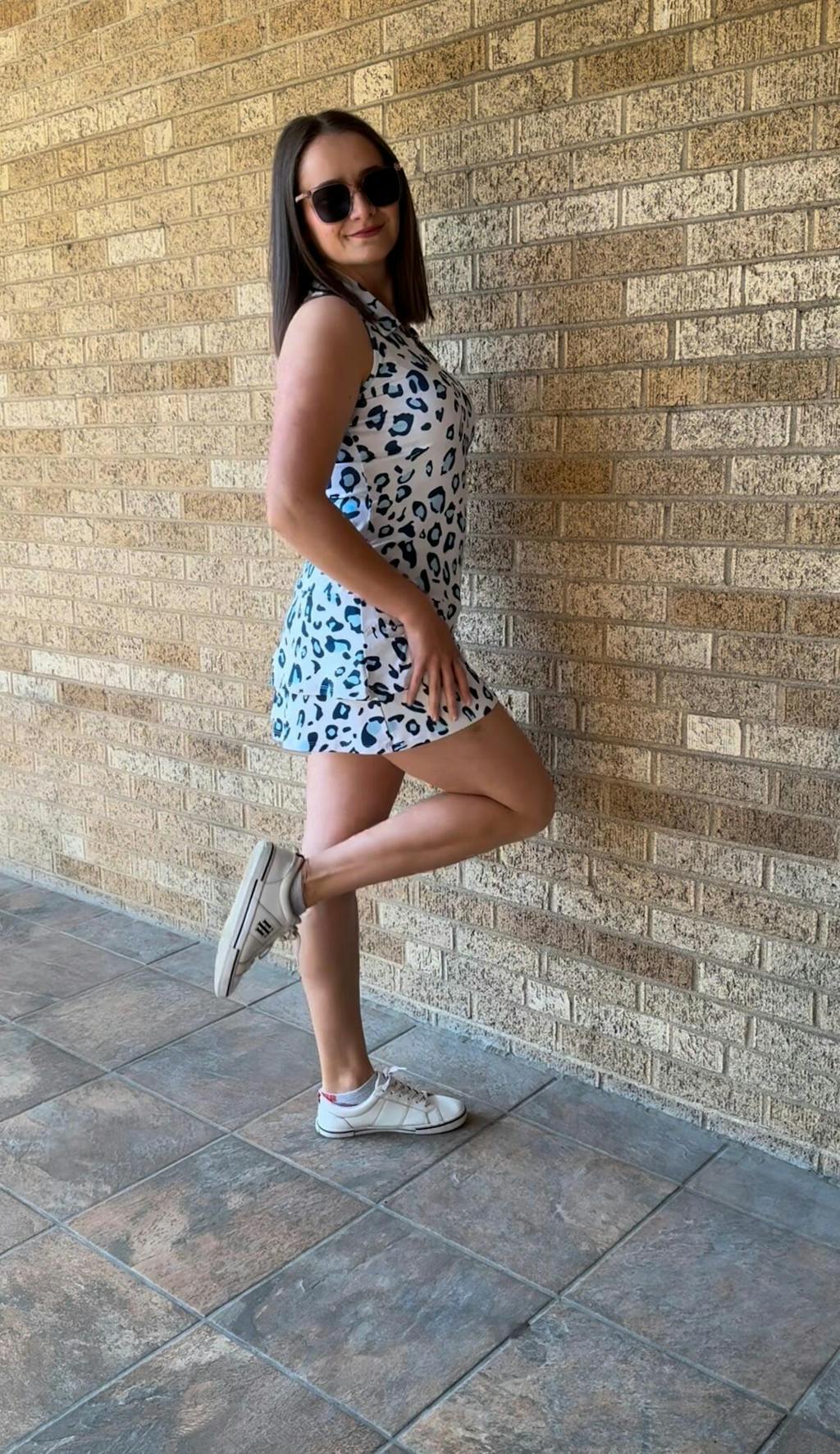 Experience the ultimate in comfort and versatility with our Blue Leopard Sleeveless Dress. Featuring moisture-wicking and quick-dry material, this tennis dress is perfect for any activity from golf to casual wear. Plus, the 4-way stretch fabric and racerback design ensure a comfortable fit and full range of motion. Make a statement with the trendy leopard print while staying cool and relaxed, no matter where your day takes you.