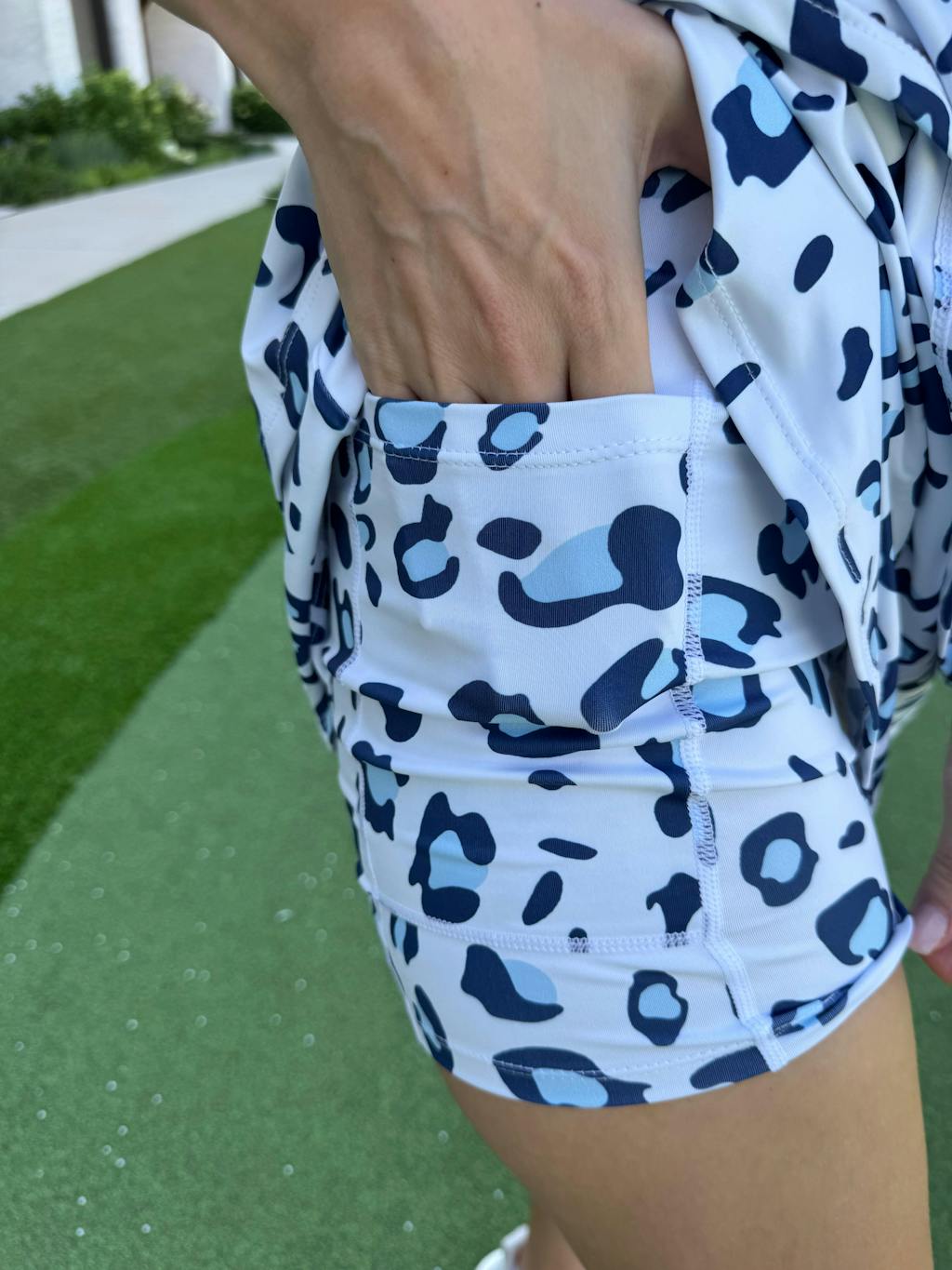 Blue Leopard 32"/37" V-neck Racerback Sleeveless Dress with Shorts