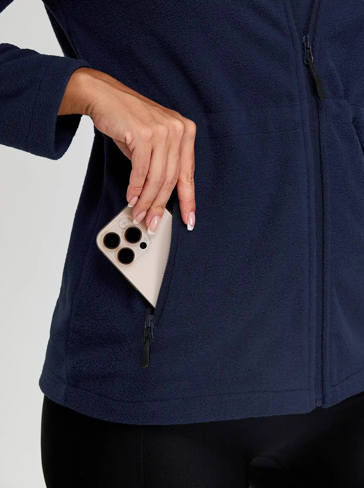 Stay warm and stylish with our Women's Black Full-Zip Polar Fleece Jacket.