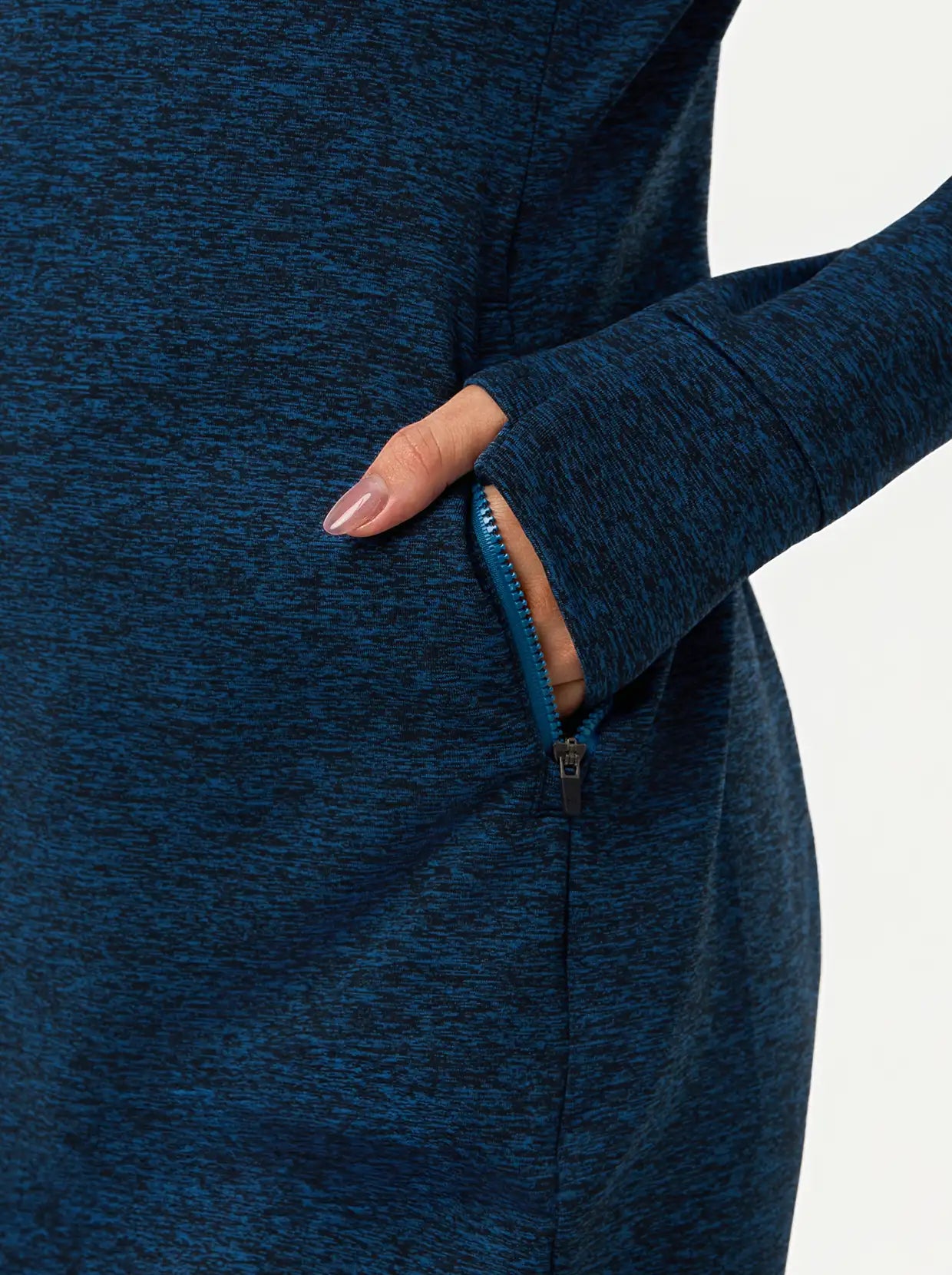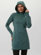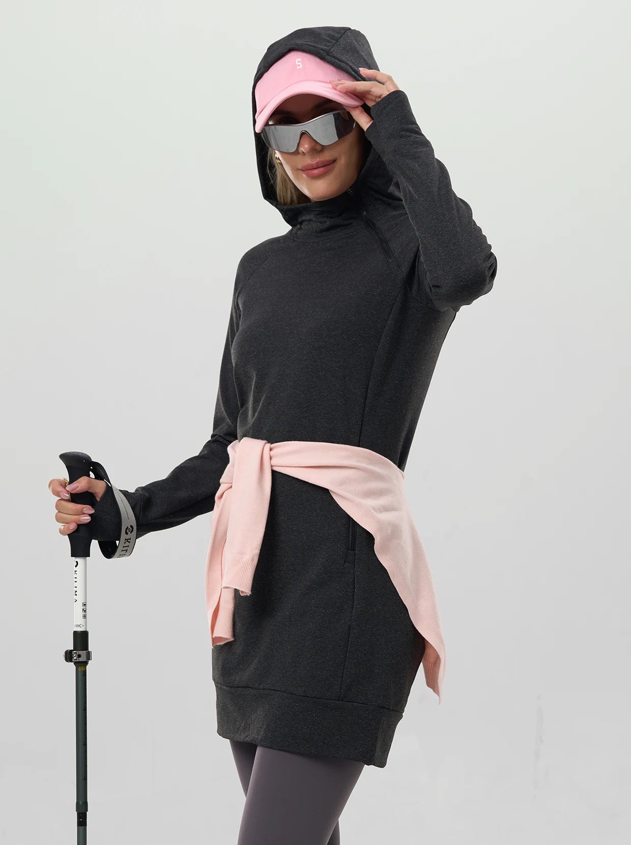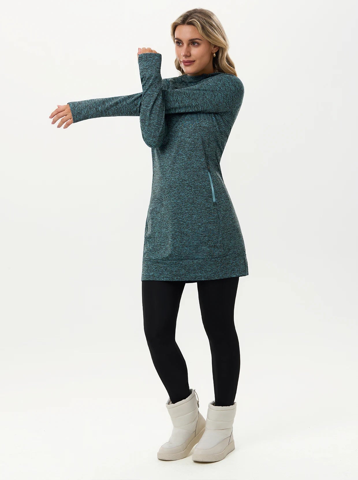 Move through your day in this thermal hooded dress that’s built for comfort and function. The cozy fleece lining provides powerful, lightweight warmth, ensuring the chill stays out. Stretchy, skin-friendly fabric guarantees total freedom of movement, and the thumbhole sleeves offer extra coverage and comfort for your hands.