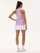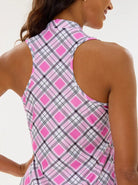 Pink and White Checkerboard Racerback Quarter-zip Sleeveless Shirt