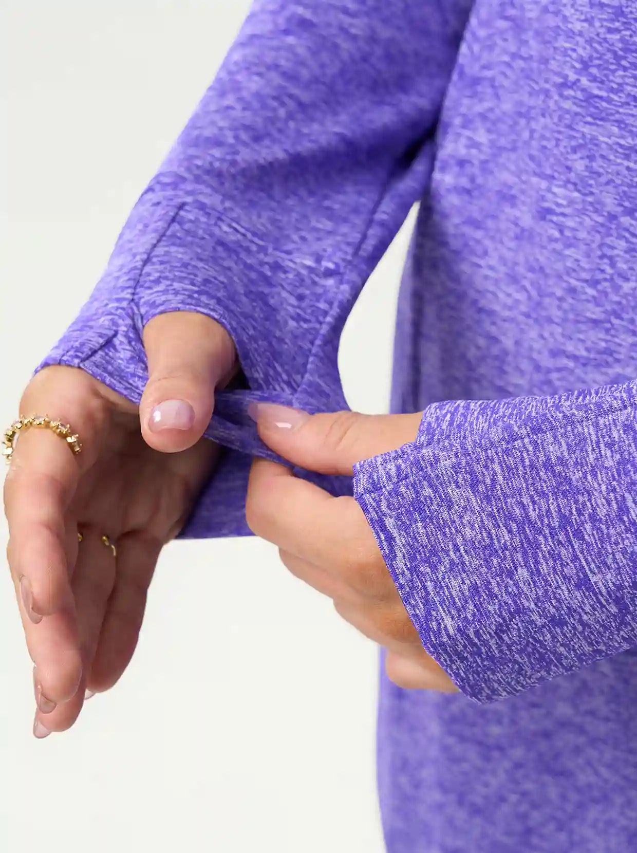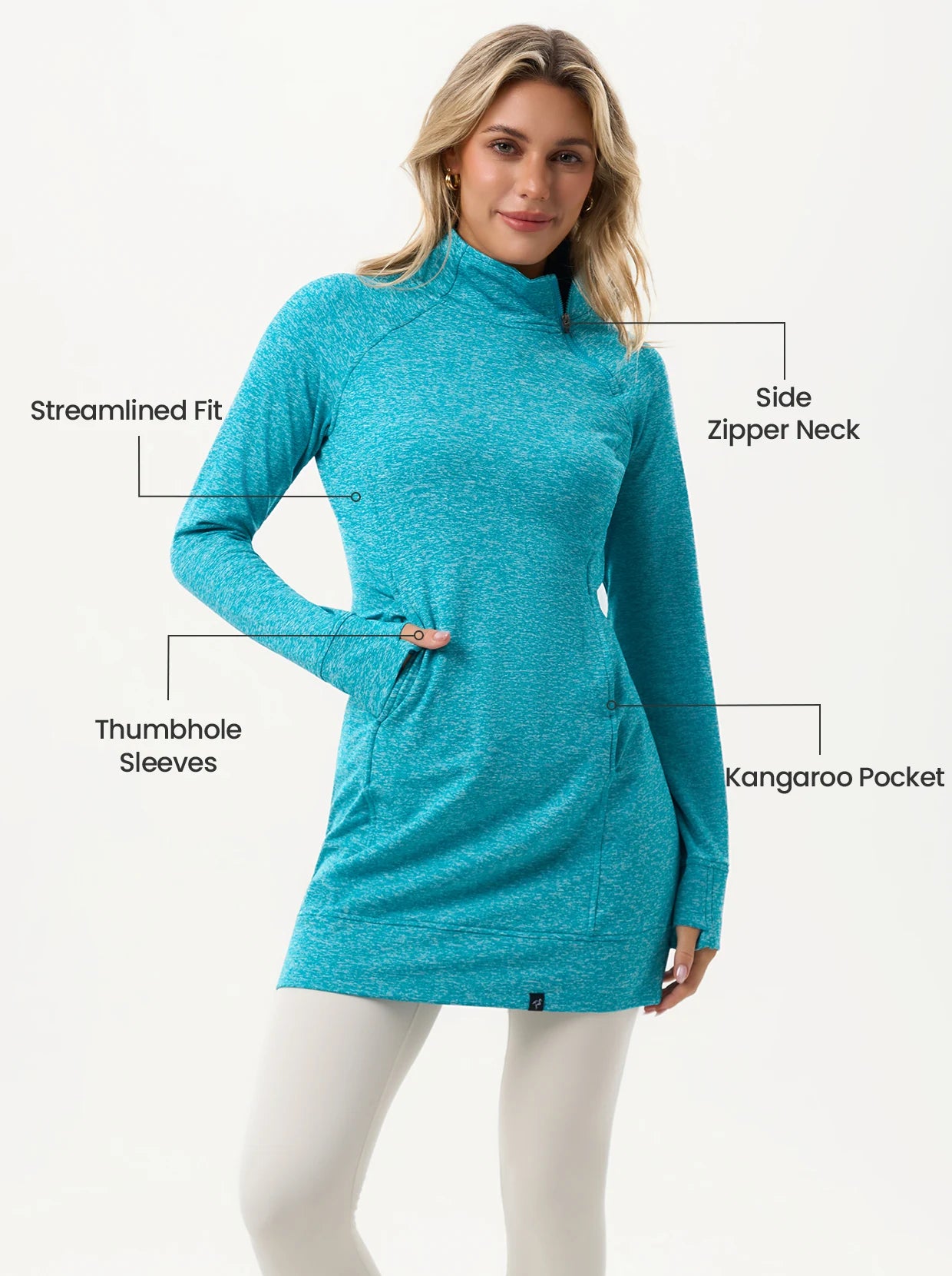 Stay comfy and ready for action in our long-sleeve thermal dress! Thumbholes keep your sleeves in place, while the side zipper makes layering a breeze. Moisture-wicking fabric keeps you dry, while also stretching and resisting pilling for lasting wear. With a handy pocket and playful style, it's your go-to for golf, tennis, pickleball, or just hanging out.