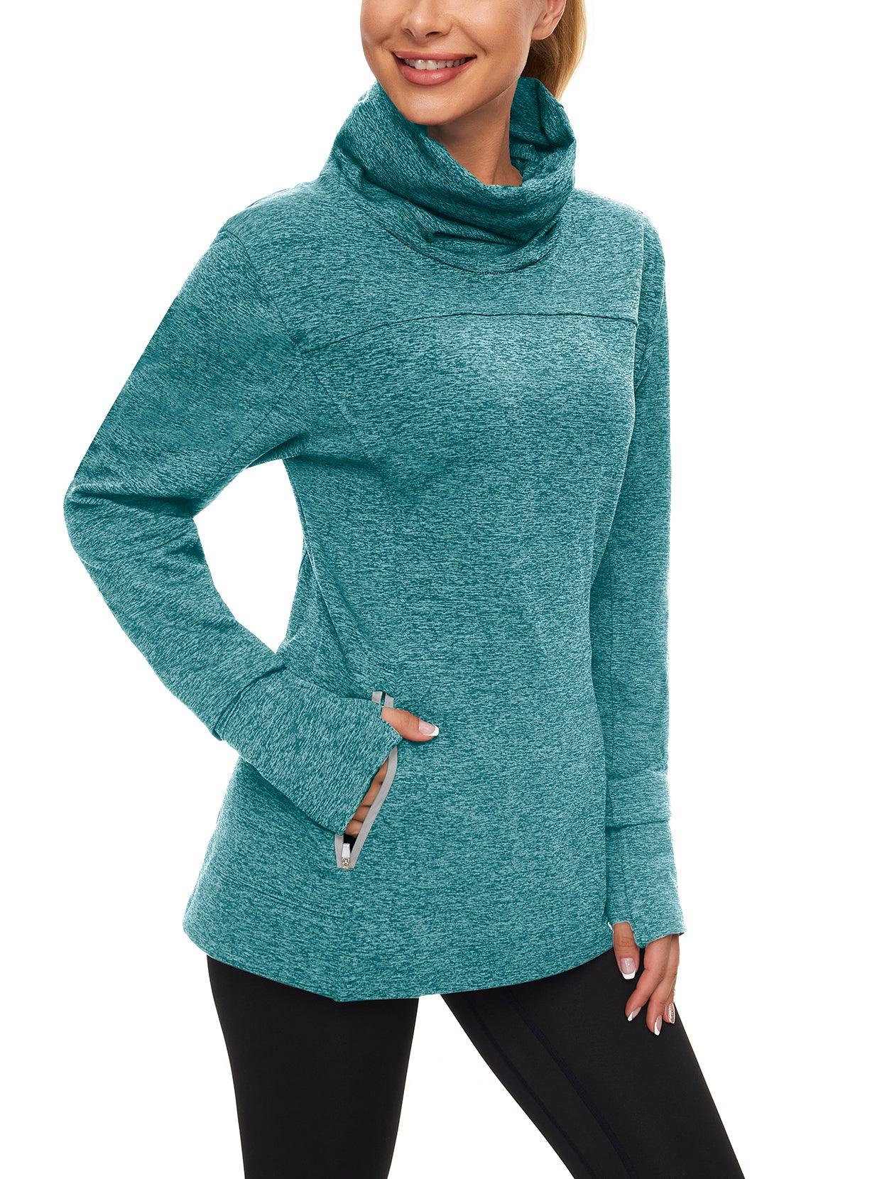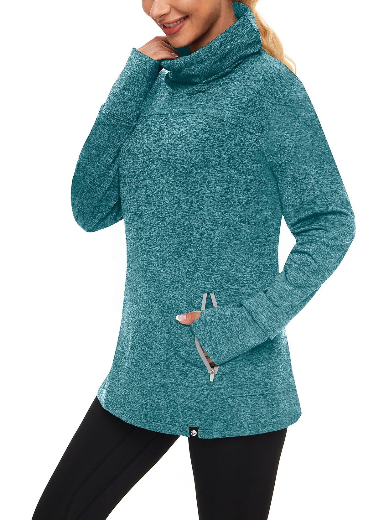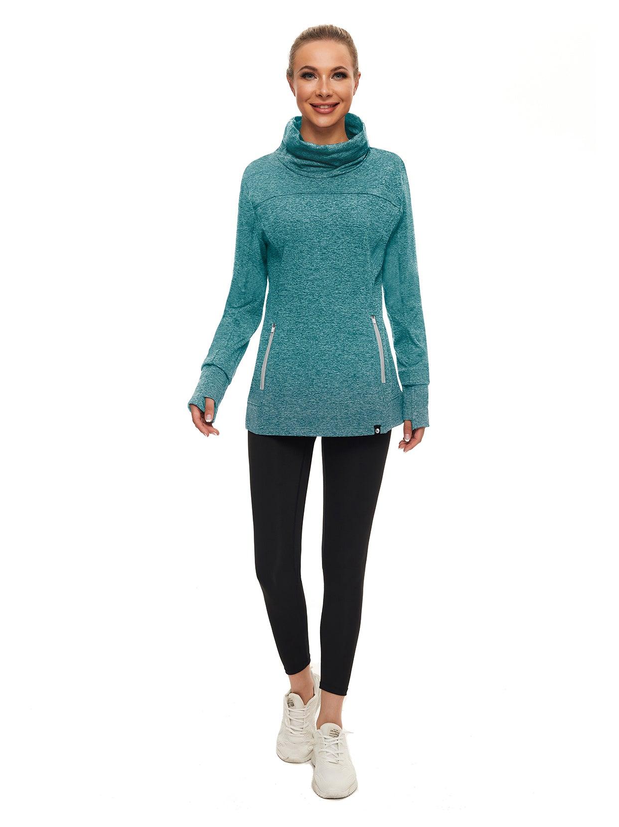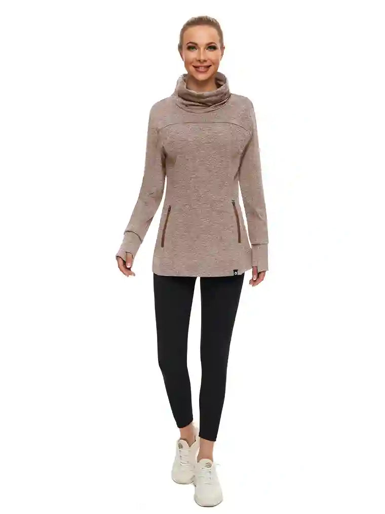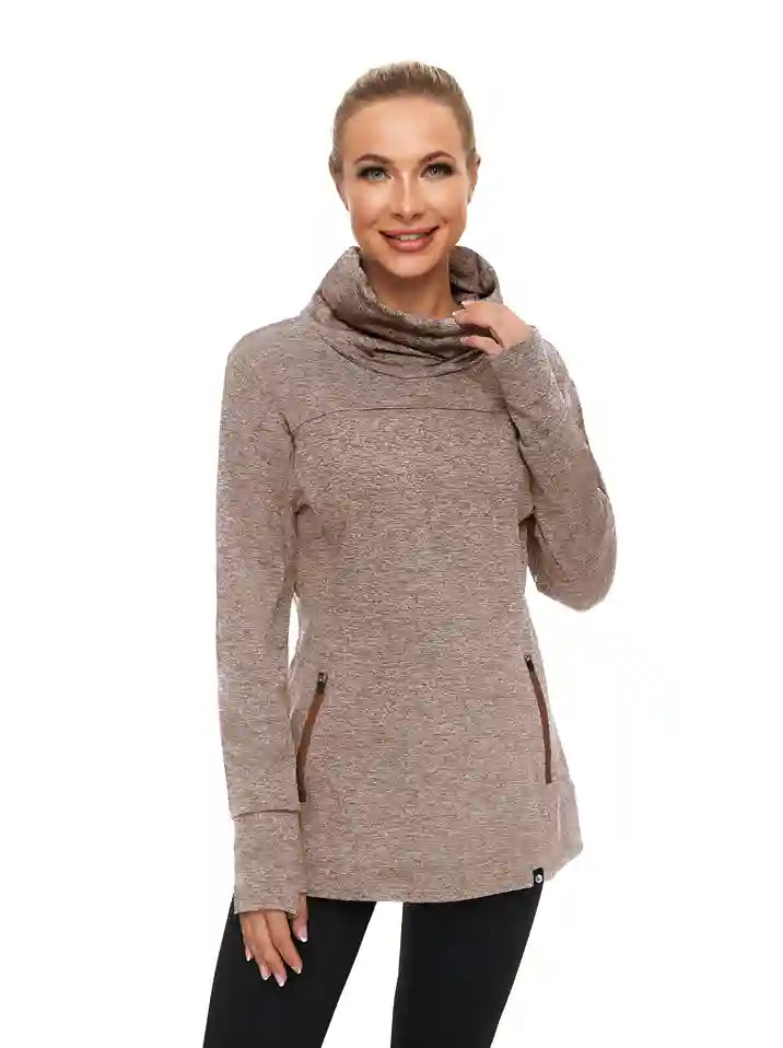 Cowl-neck Long-sleeve Fleece Top with Zip Pocket