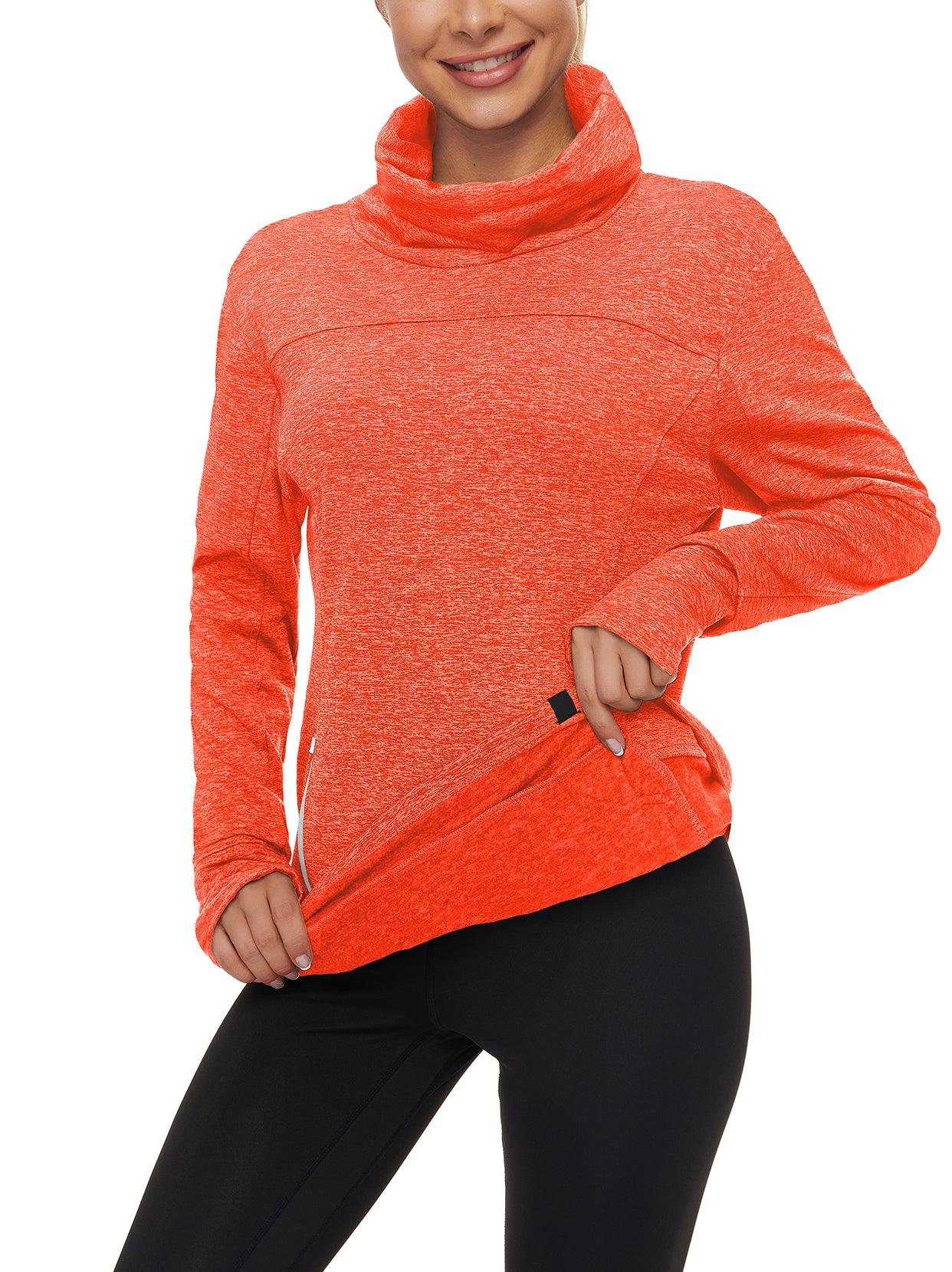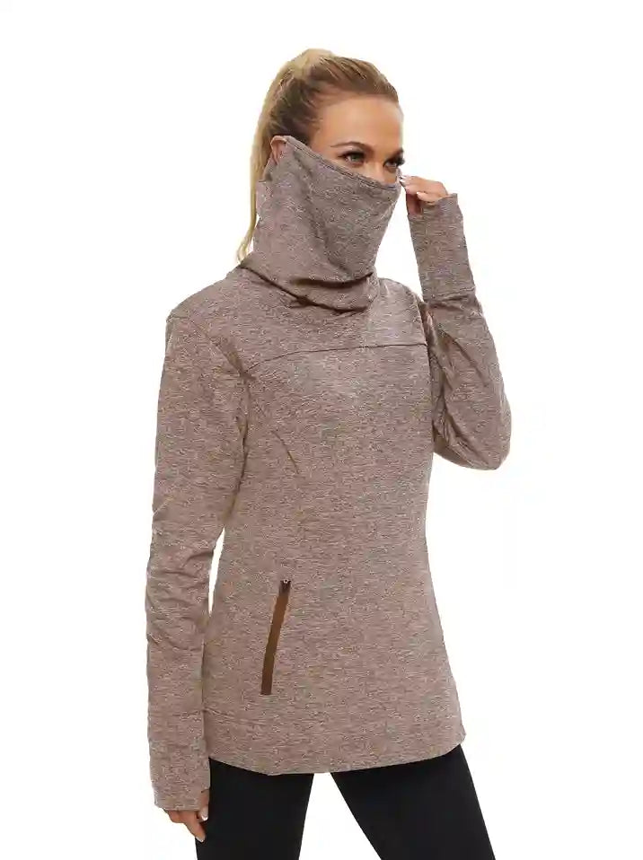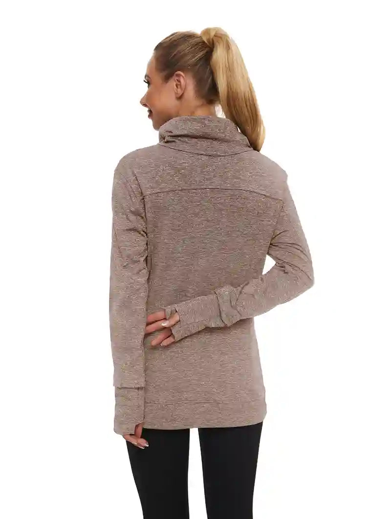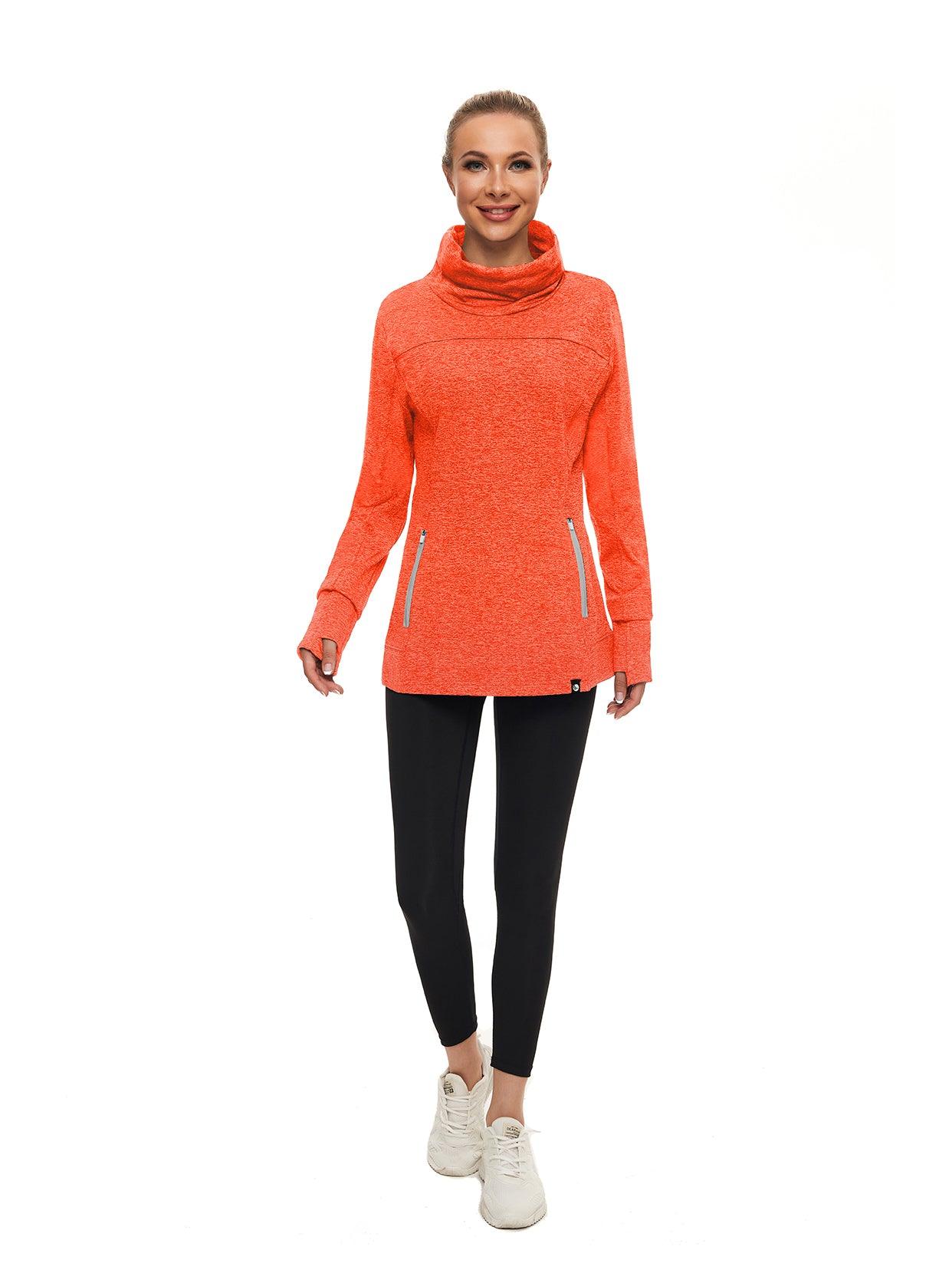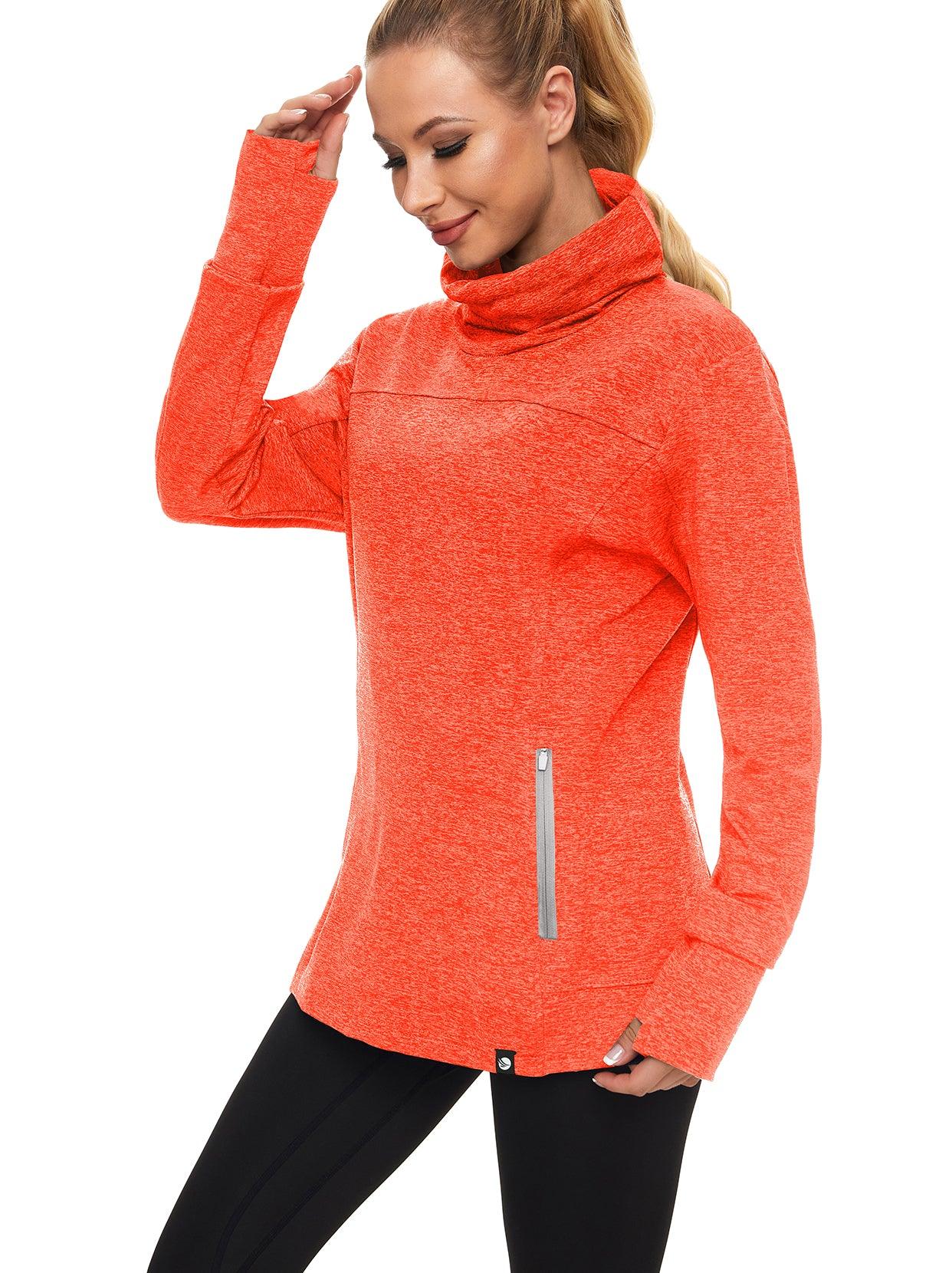 Cowl-neck Long-sleeve Fleece Top with Zip Pocket