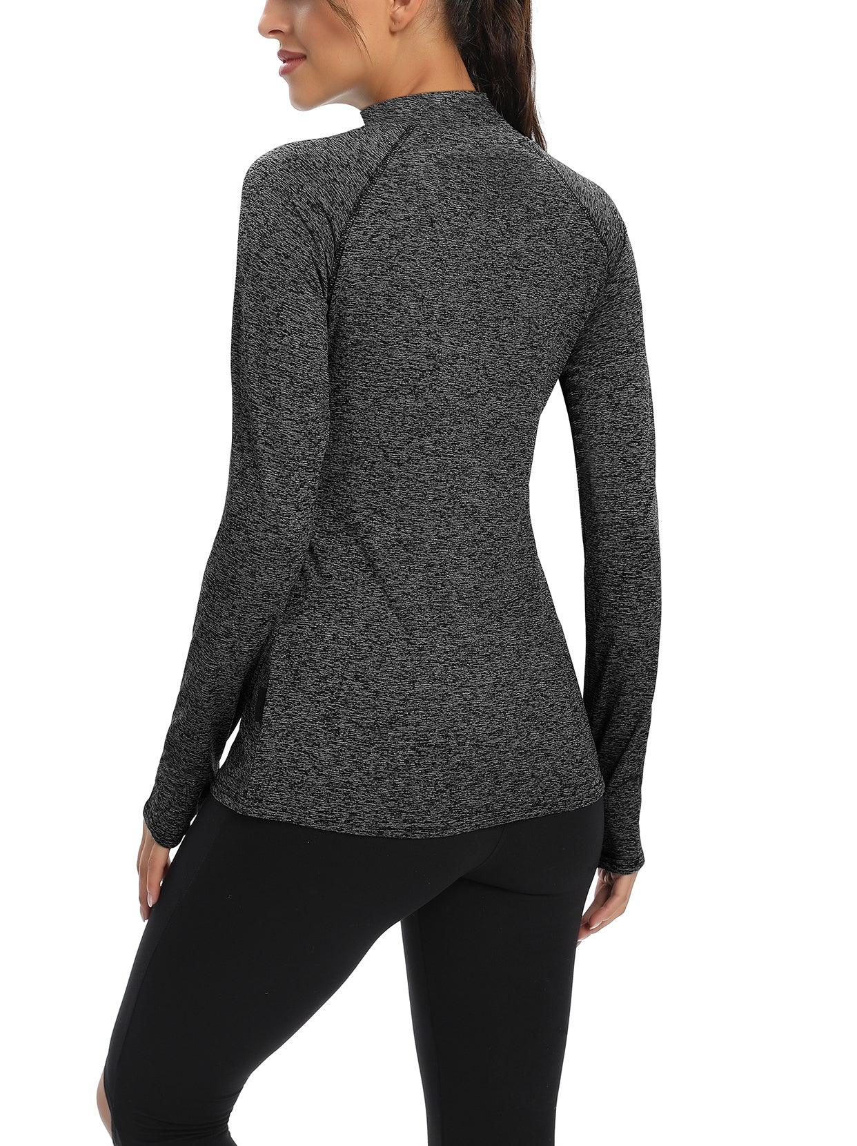 Quarter-zip Long-sleeve Thermal Tops with Curved Split Hem