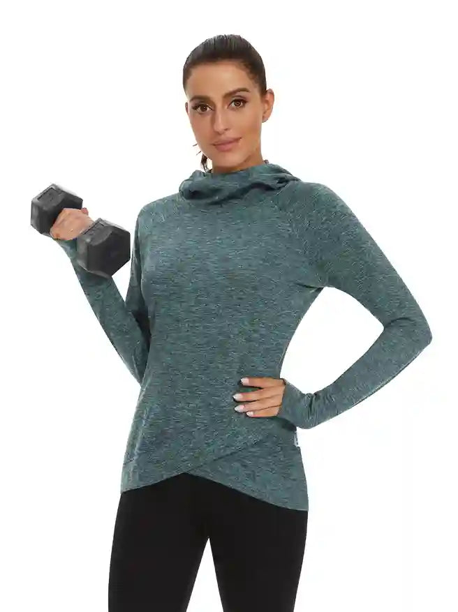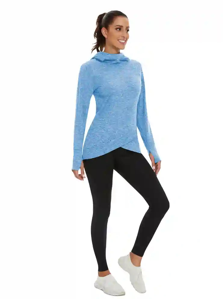 Hoodie Crossed Hem Long-sleeve Thermal Tops