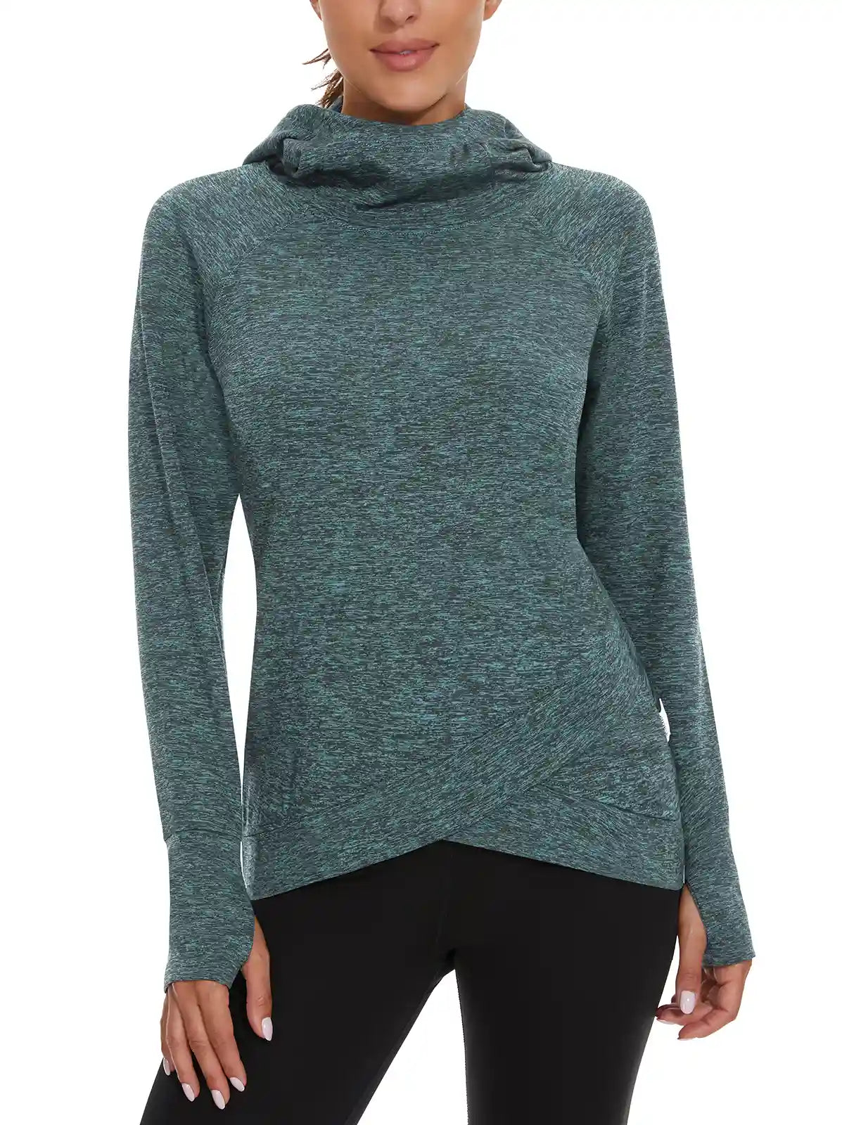 Pullover Hooded Crossed Hem Thermal Top for Women