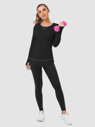 Stay Warm, Stay Active. Our Women's Thermal Top is the perfect blend of comfort and performance. Crafted with soft, quick-drying fabric, it locks in warmth and wicks away moisture. The 4-way stretch and curve hem ensure unrestricted movement, while the thumbhole design keeps your hands cozy. Ideal for your next workout or outdoor adventure.