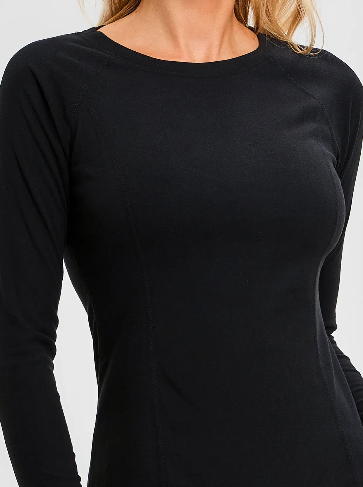 Stay warm and active with the SOcomfi™ Crew-Neck Long-Sleeve Baselayer. Crafted from soft, SOcommfi™ fabric, this thermal underwear provides ultimate comfort and keeps your body warm. The princess seams accentuate your waistline, while the crew neck and long sleeves provide a sleek, comfortable fit.