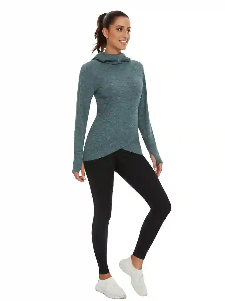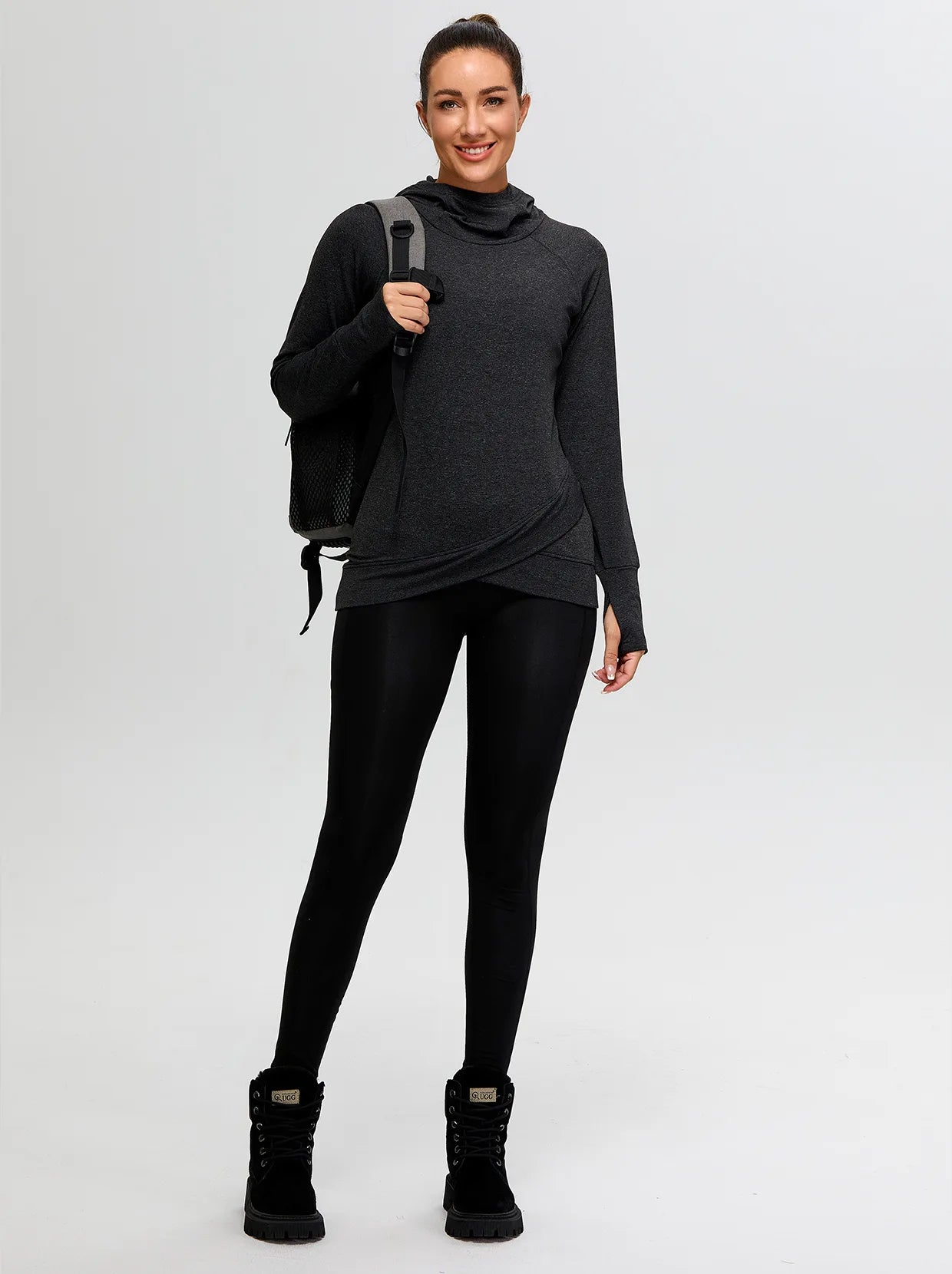 Pullover Hooded Crossed Hem Thermal Top for Women