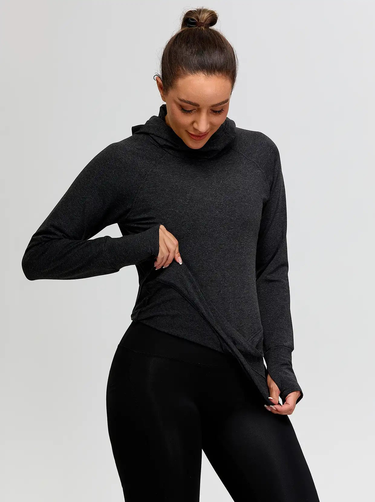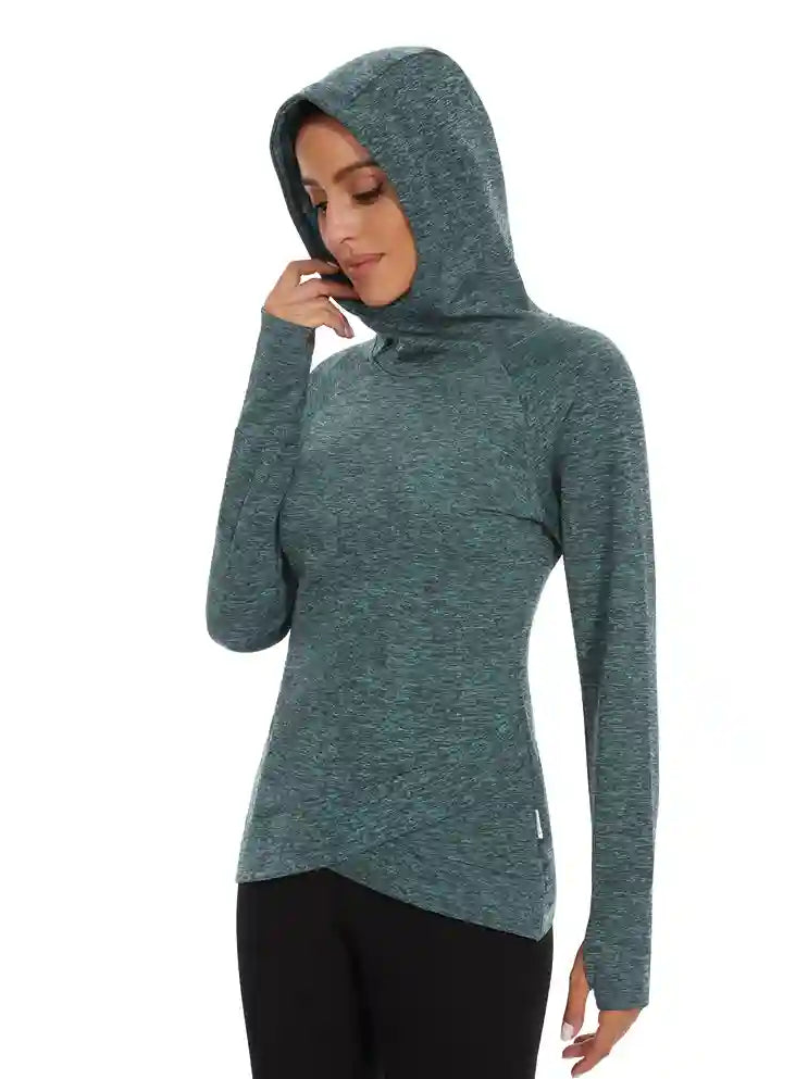 Highlights: UPF50+ (UVA/UVB), hoodies, crossed hem, thumbholes
