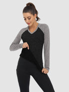 V-neck Long-sleeve Fleece Top with Thumbholes