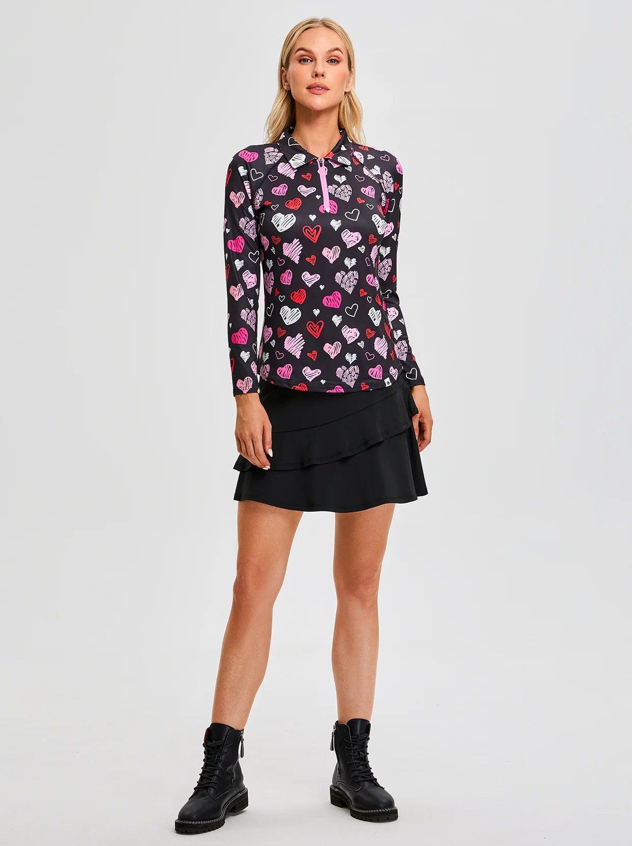 Colorful Heart Quarterzip Long Sleeve Polo Shirt for Women