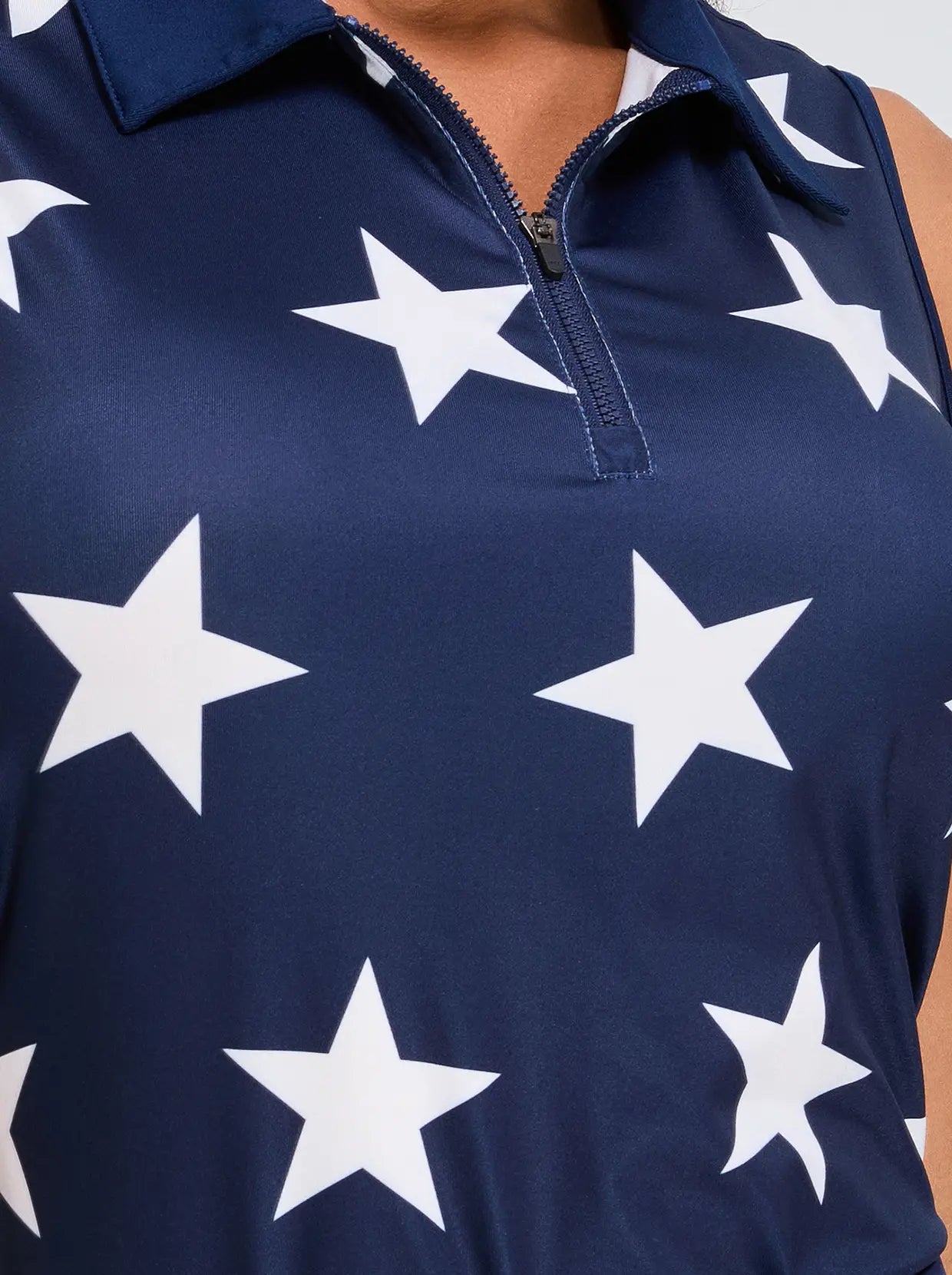 Tee off in style and comfort with our White Star Quarter-Zip Sleeveless Polo. The moisture-wicking fabric keeps you cool and dry during intense rounds, while the 4-way stretch allows for a full range of motion with every swing. The sleeveless design offers maximum breathability on hot days. Perfect for workouts and celebration activities.