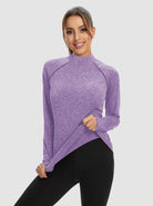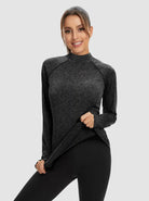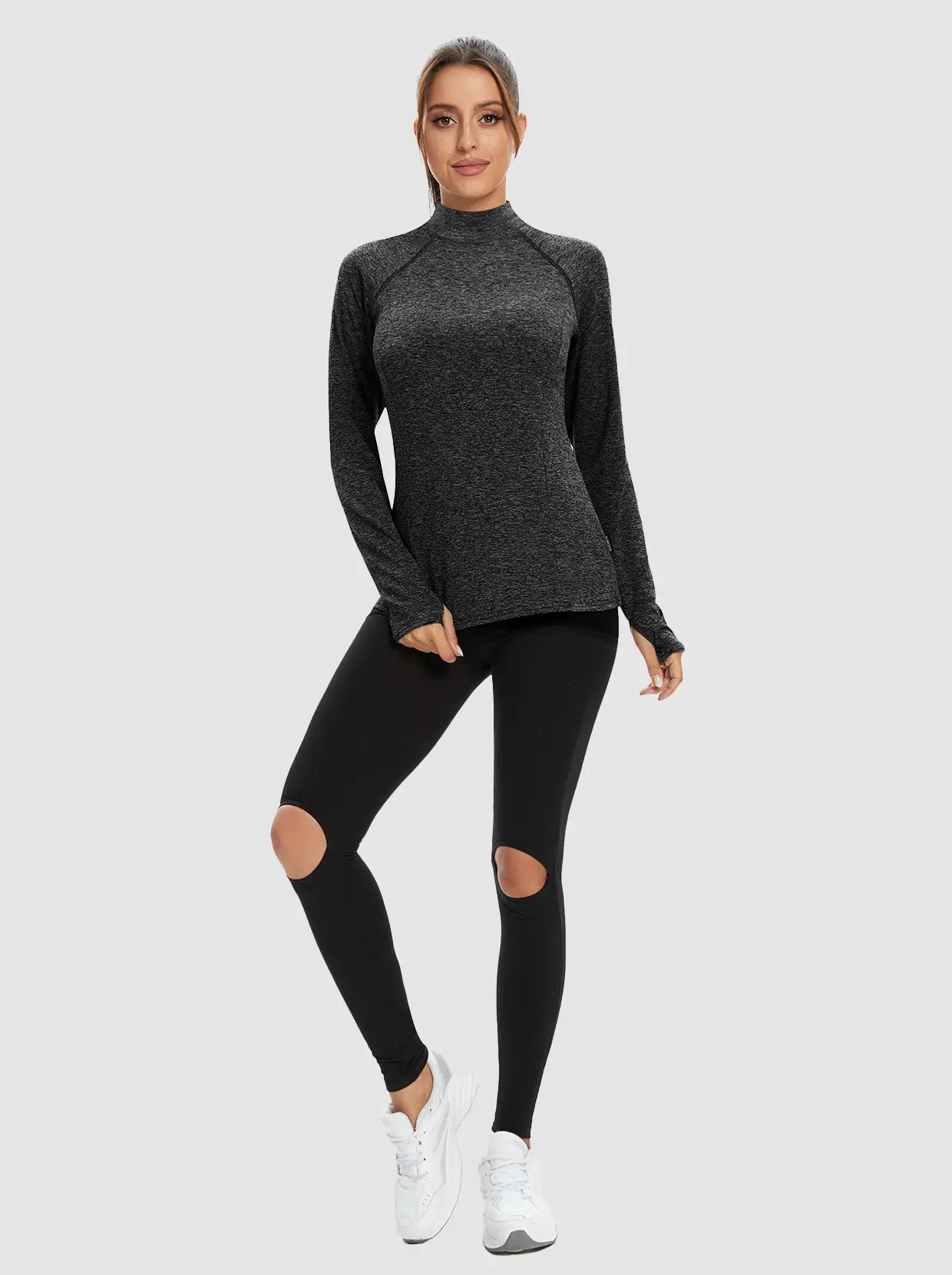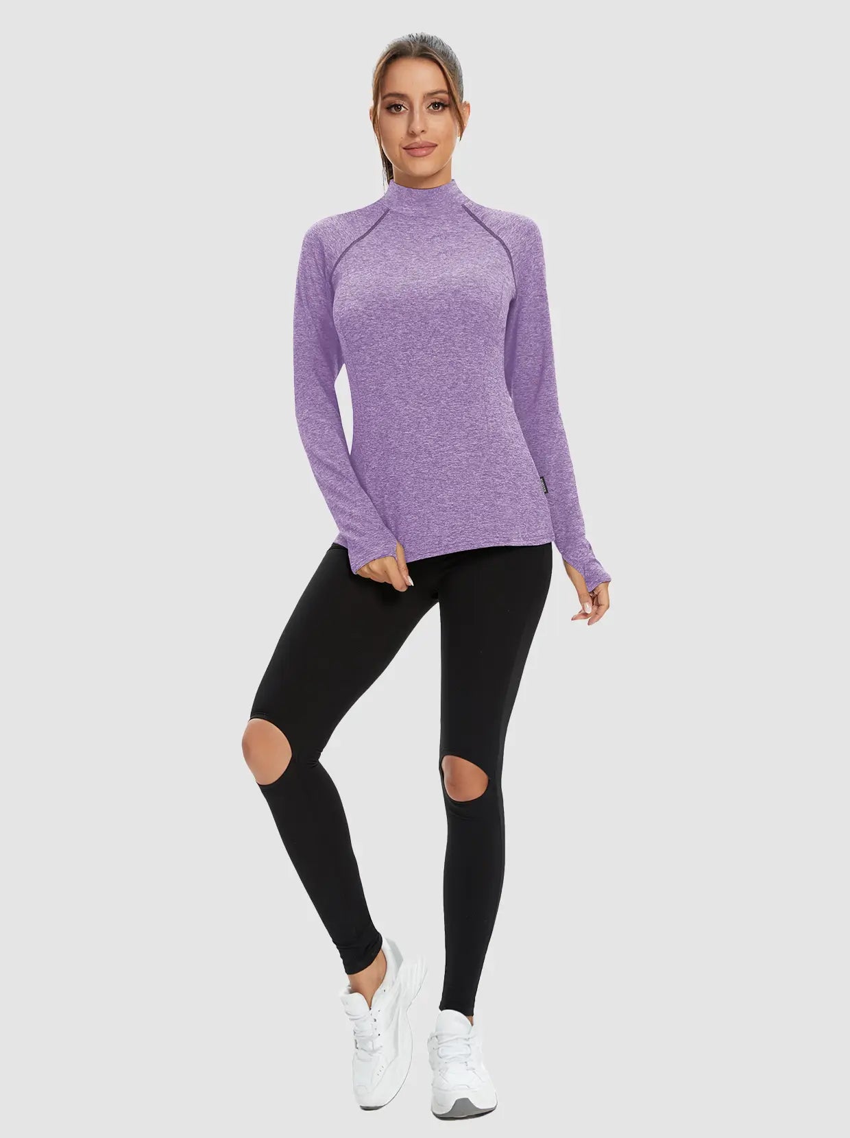 Exercise in comfort and warmth with this long-sleeve base layer. The soft, fleece-lined fabric provides sufficient insulation, while the 4-way stretch and quick-drying material ensure a full range of motion and keep you dry. The thumbholes and mock neckline offer added protection from the cold, and the flat-seam construction helps prevent chafing. Perfect for outdoor activities and relaxing at home.