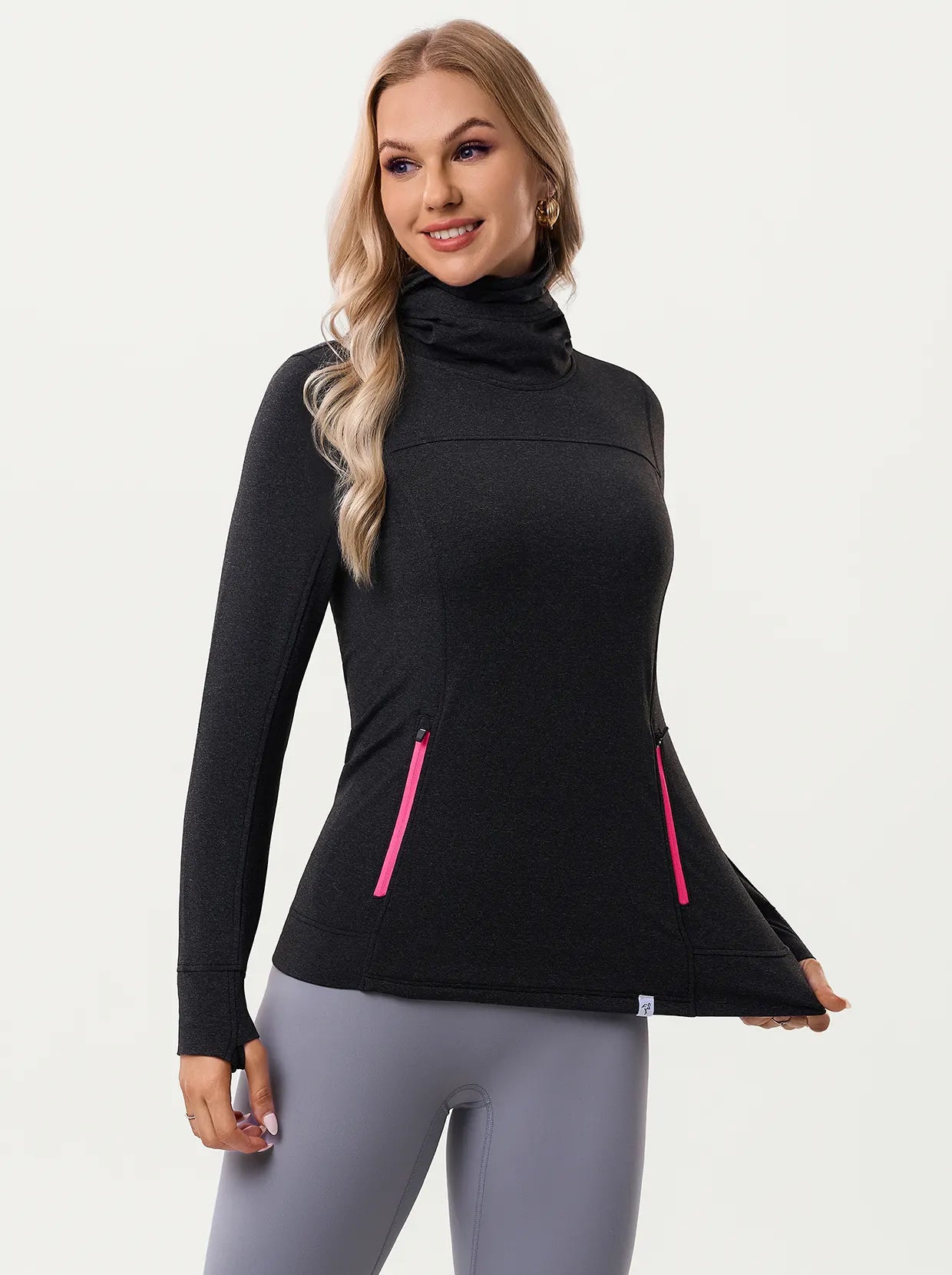 Cowl-Neck Thermal Fleece long-sleeve Top