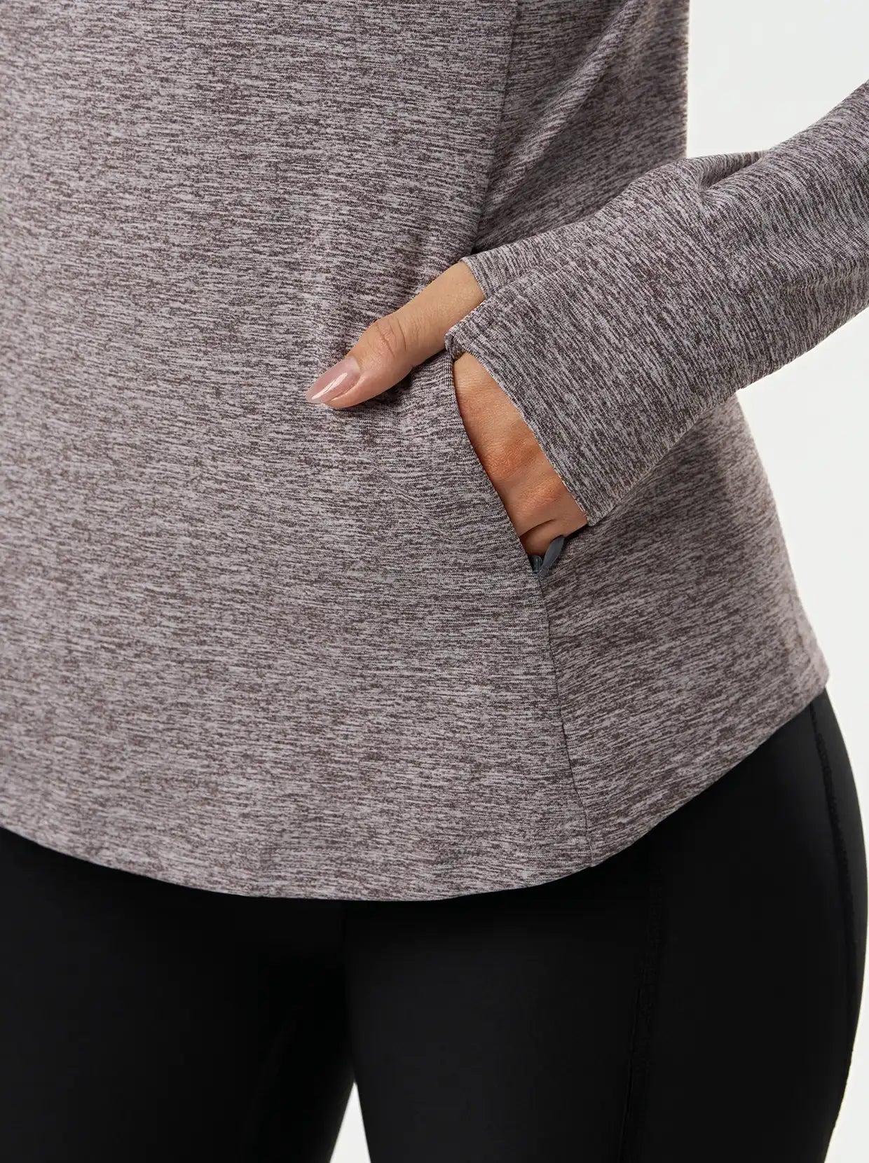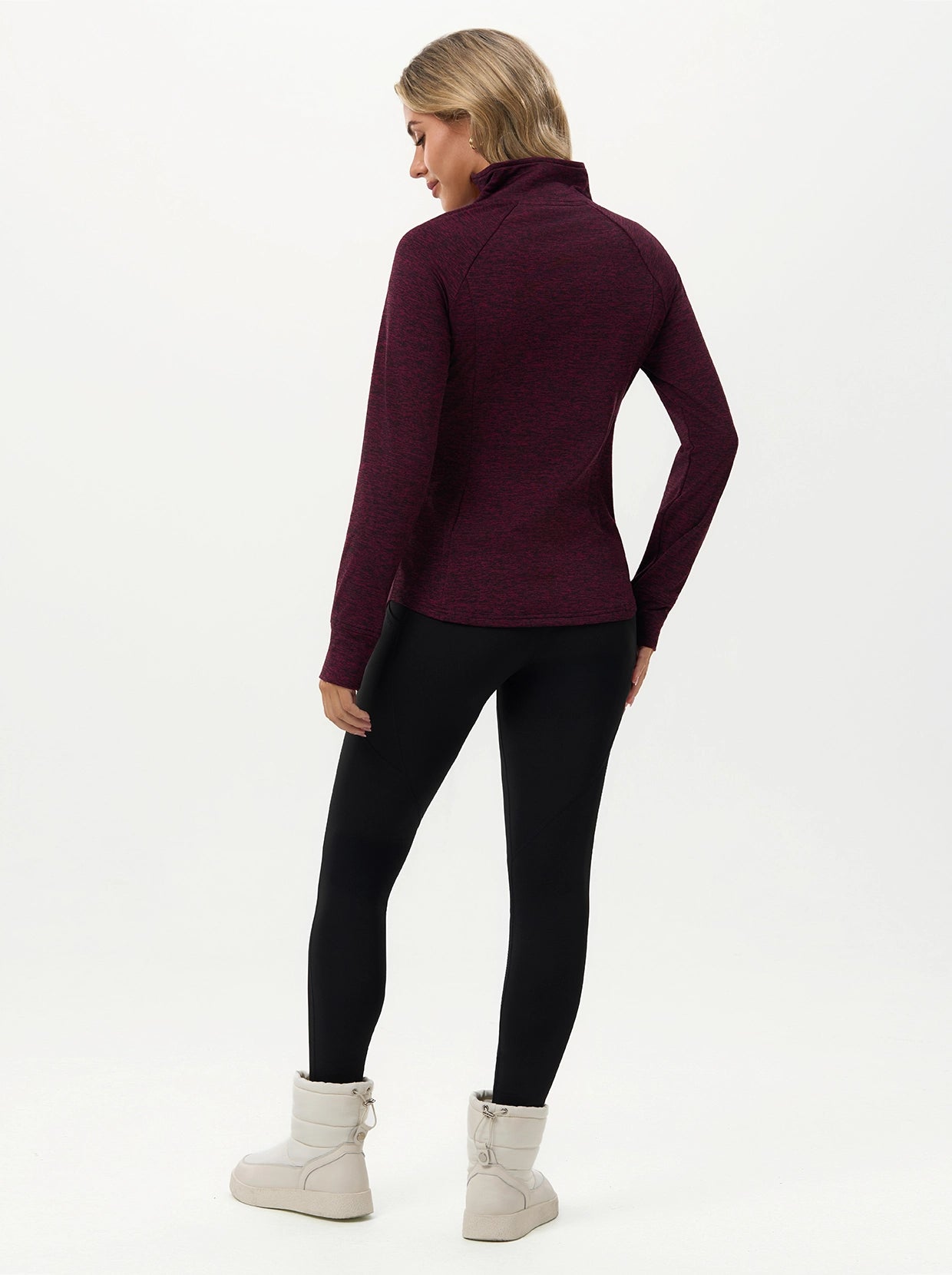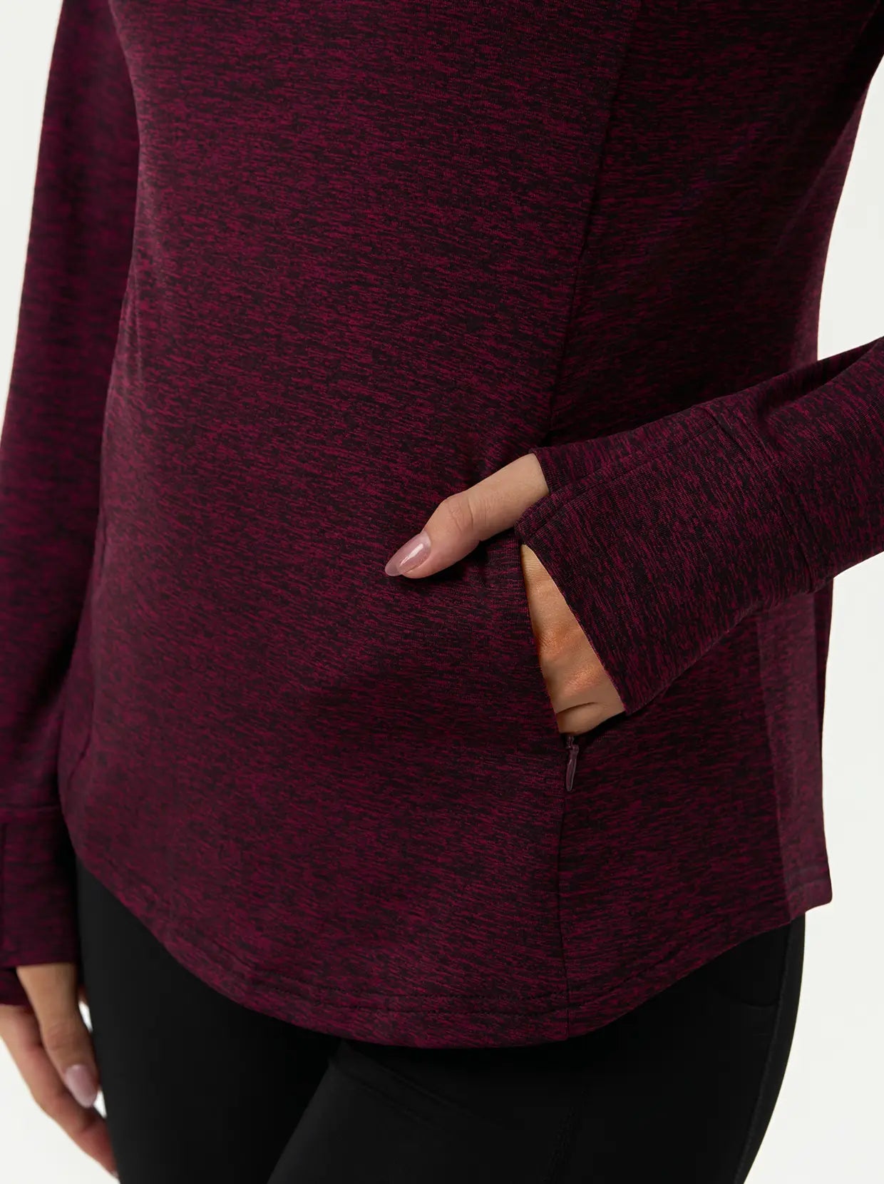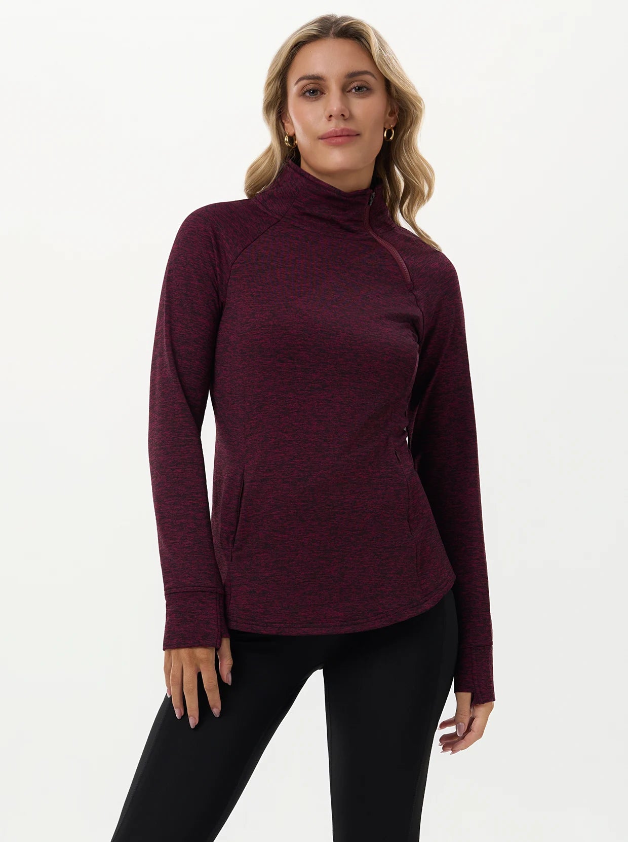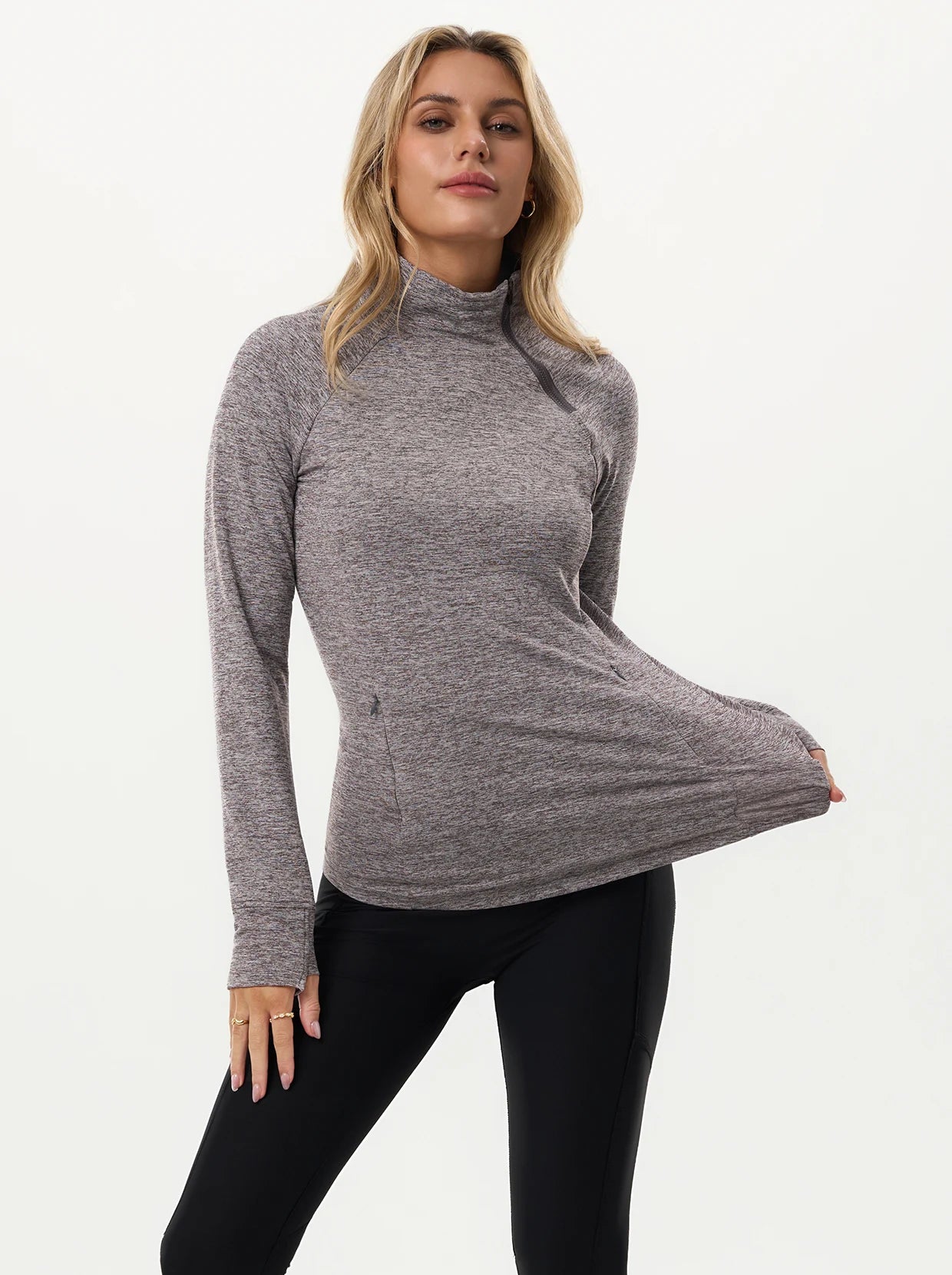 Quarter-zip Long-sleeve Thermal Tops with Curved Split Hem