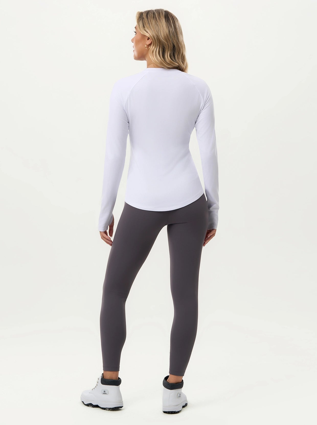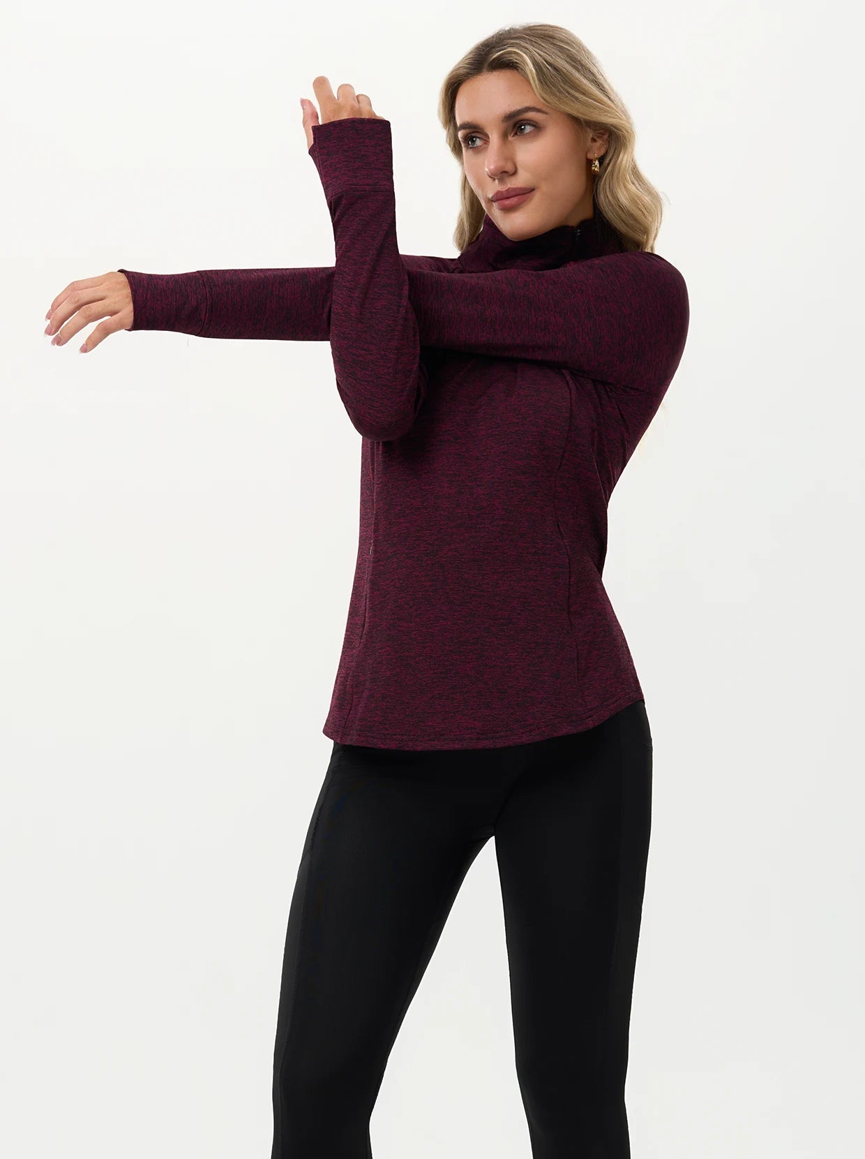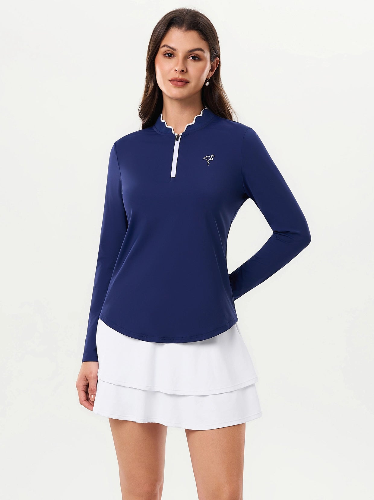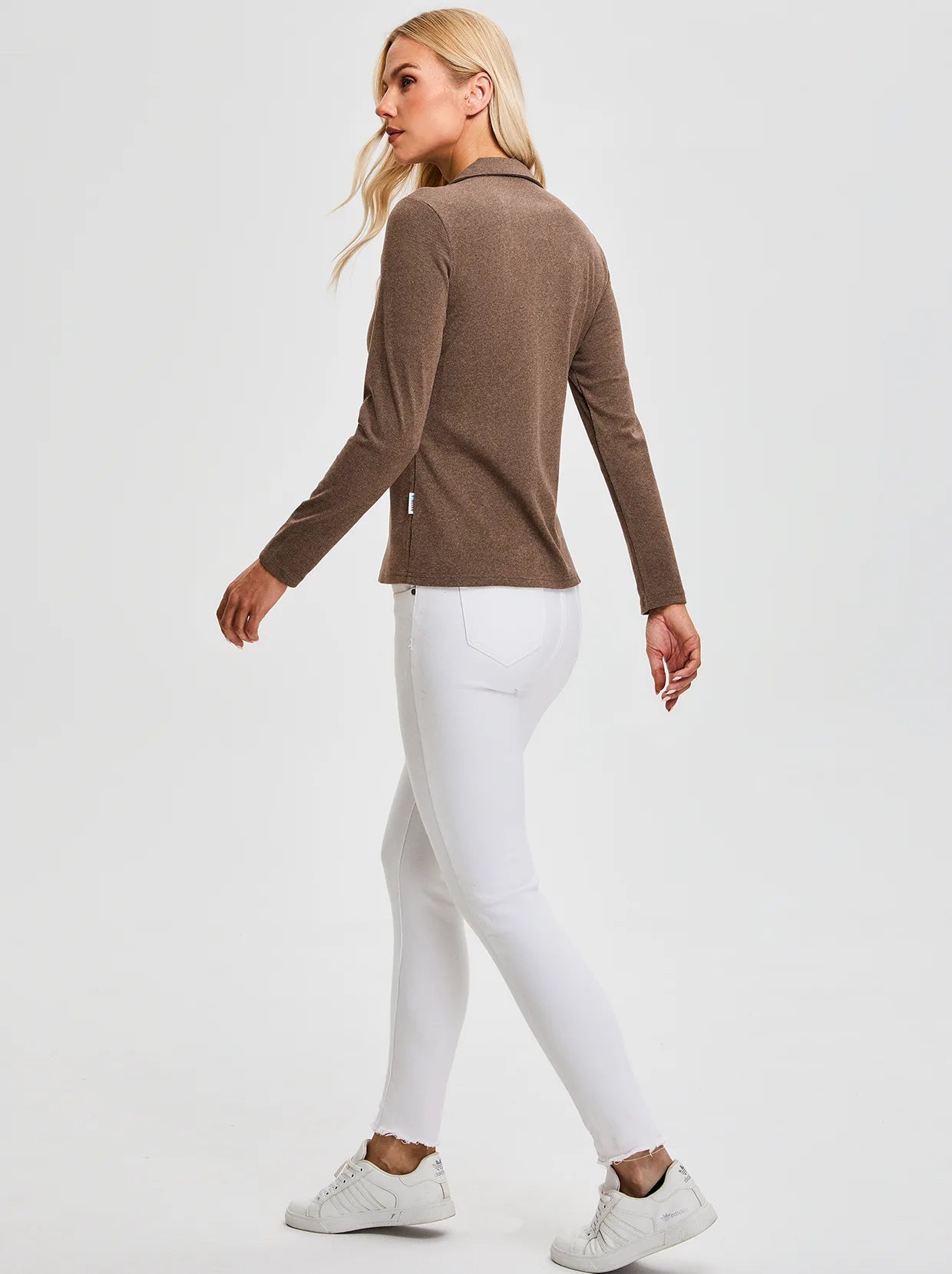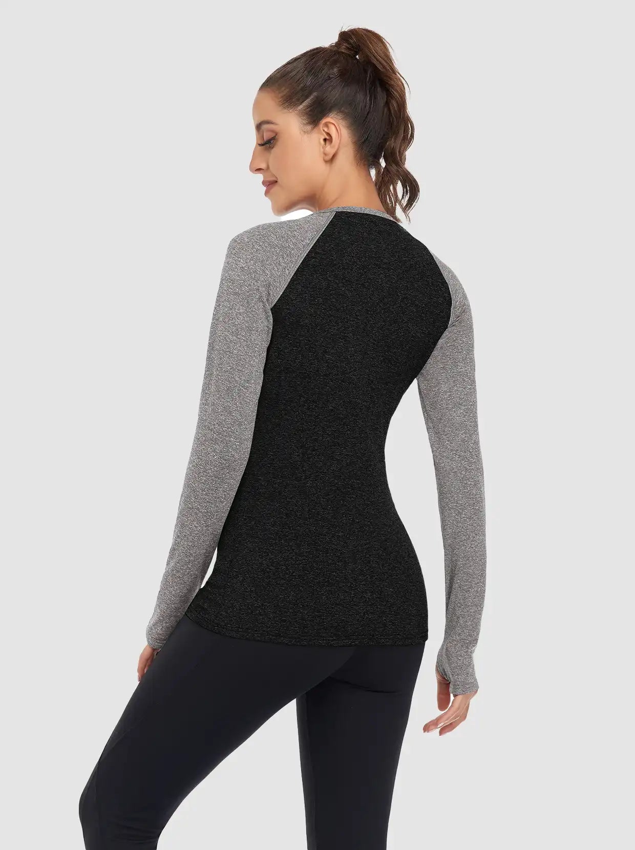 Quarter-zip Long-sleeve Thermal Tops with Curved Split Hem