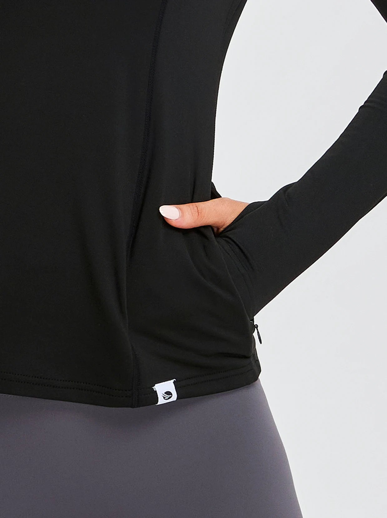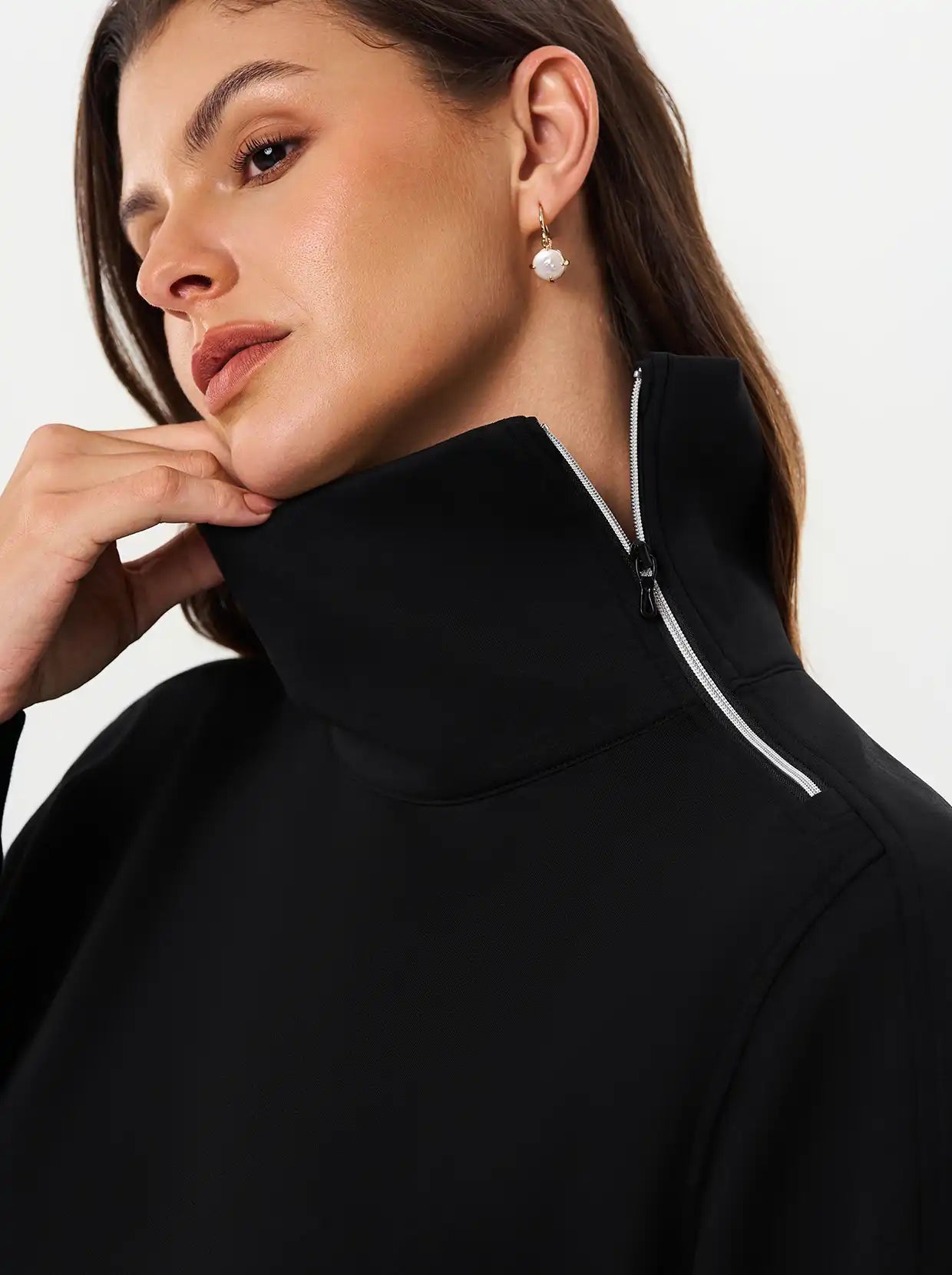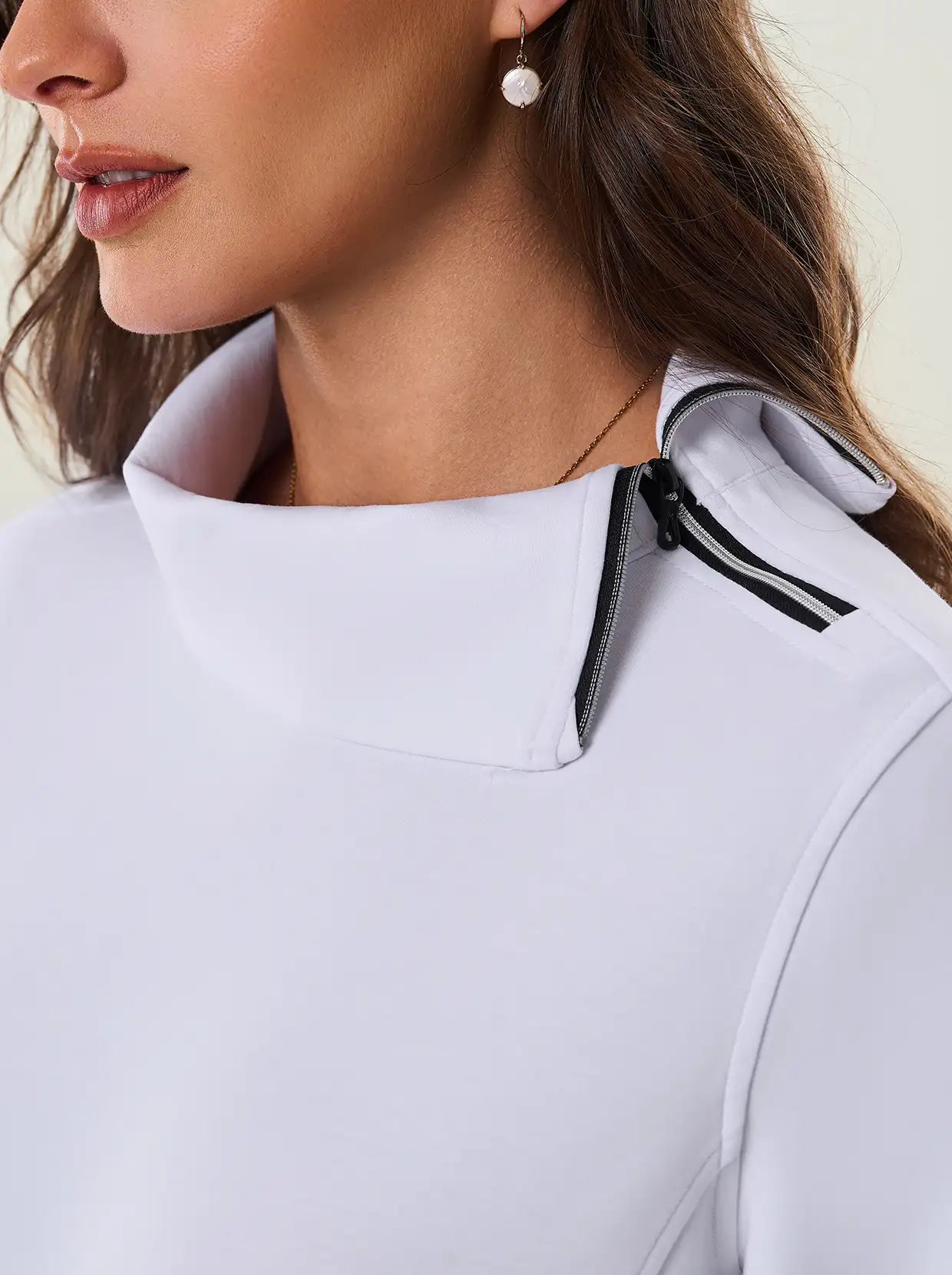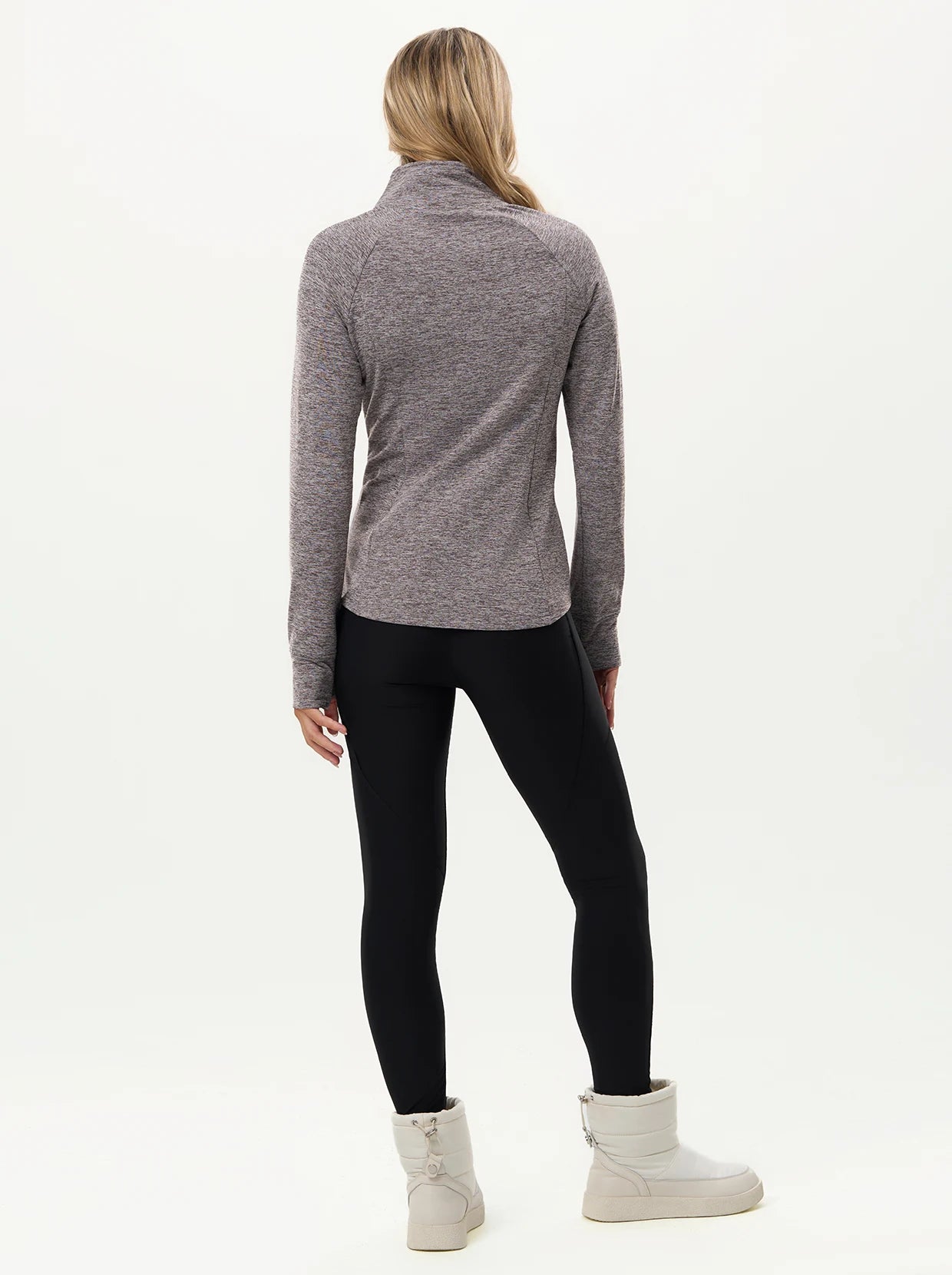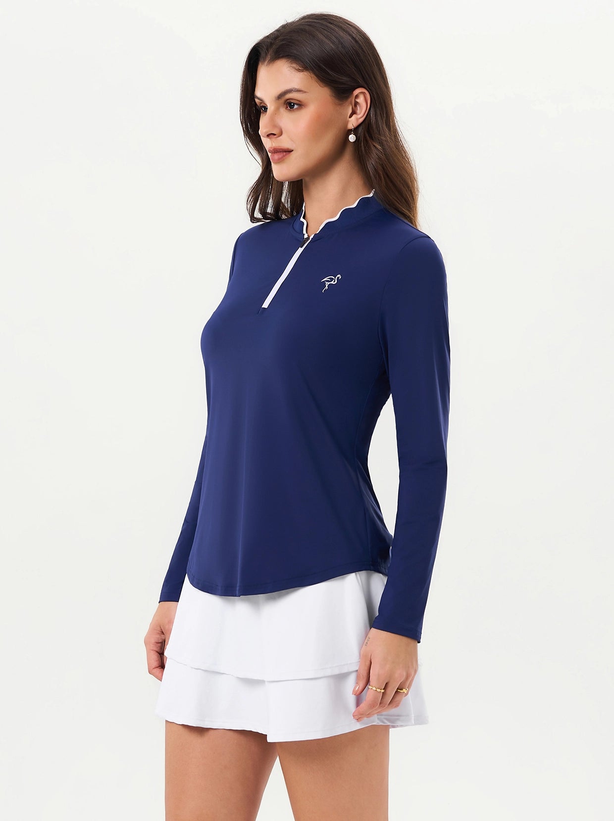 Quarter-zip Long-sleeve Thermal Tops with Curved Split Hem