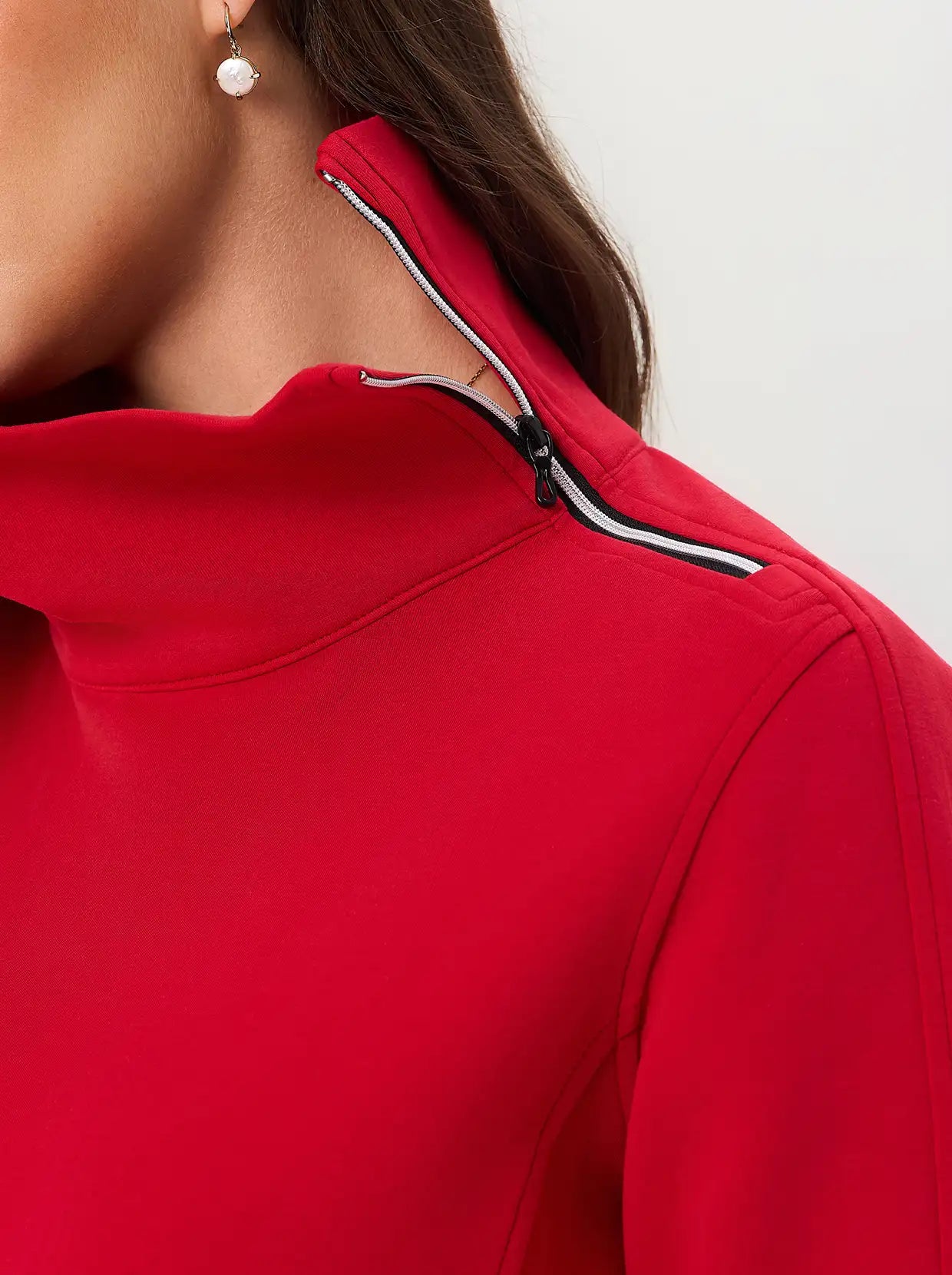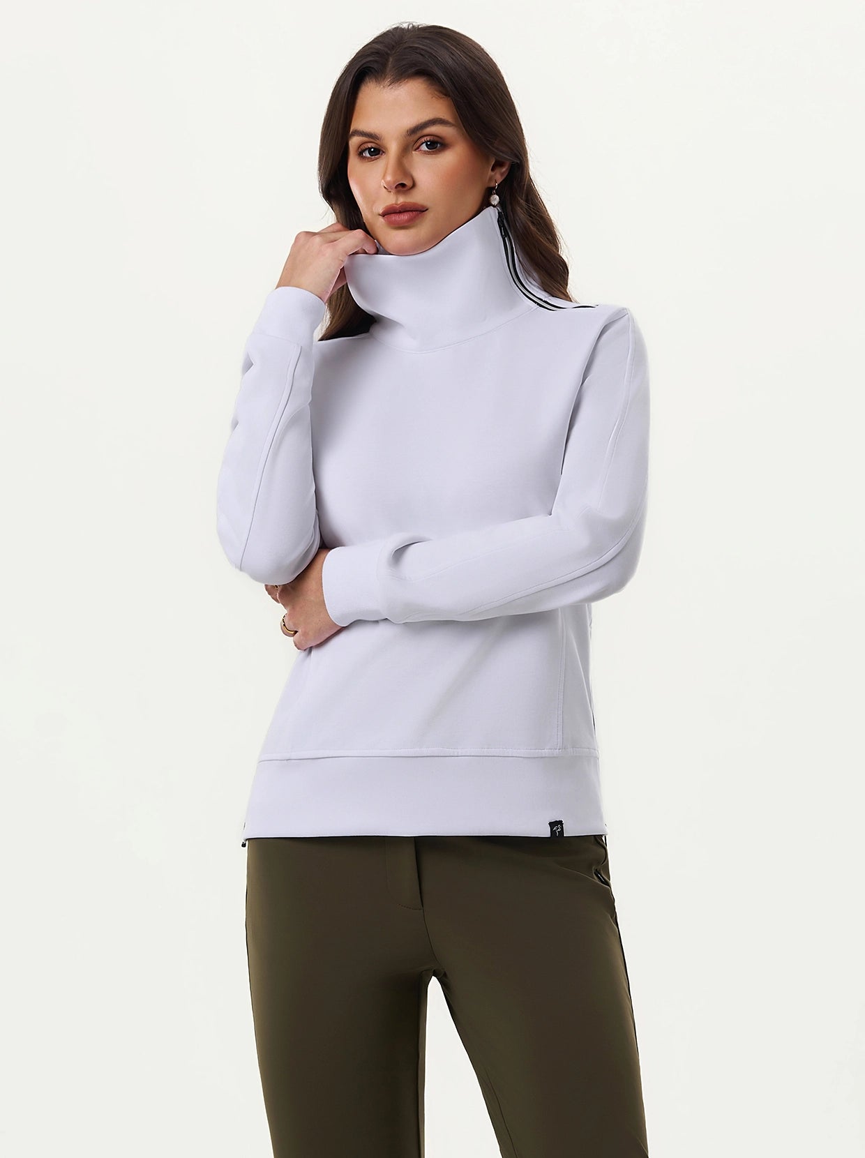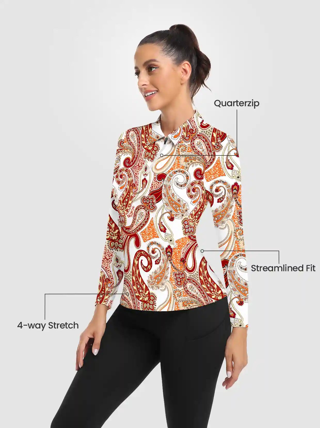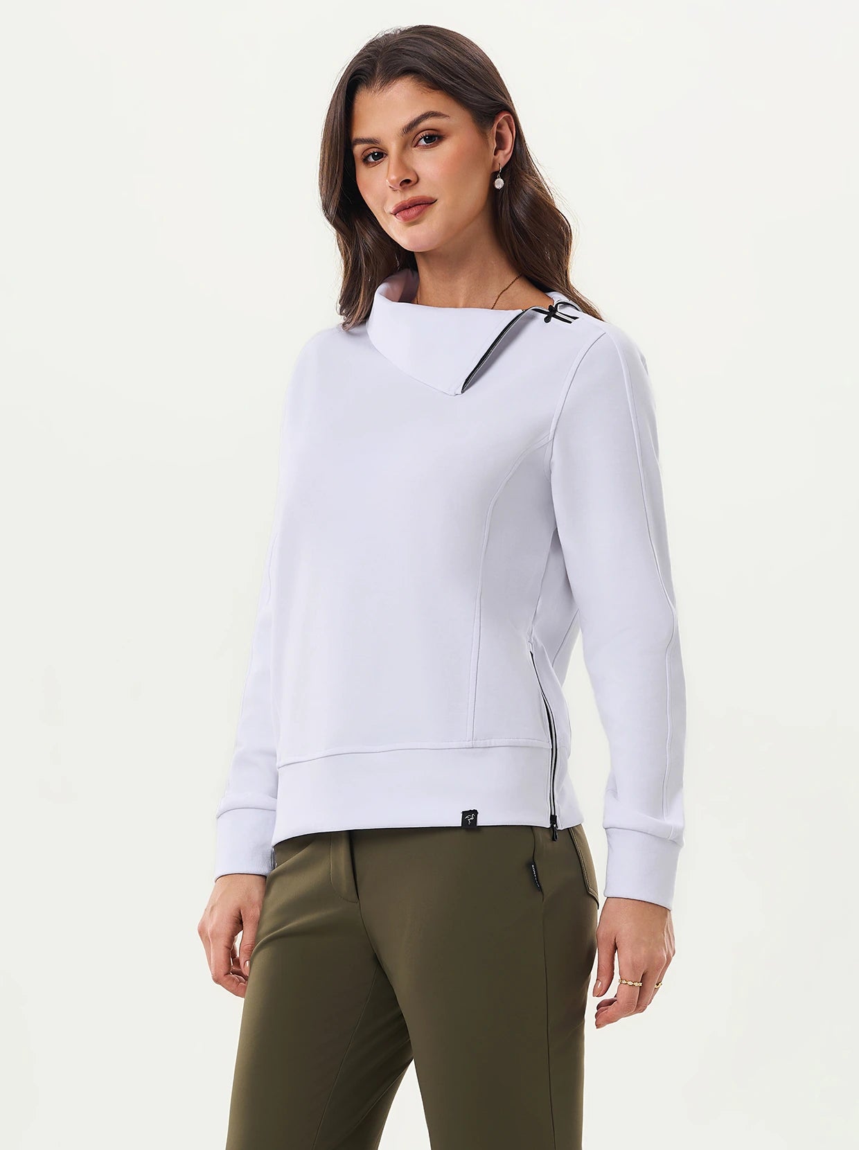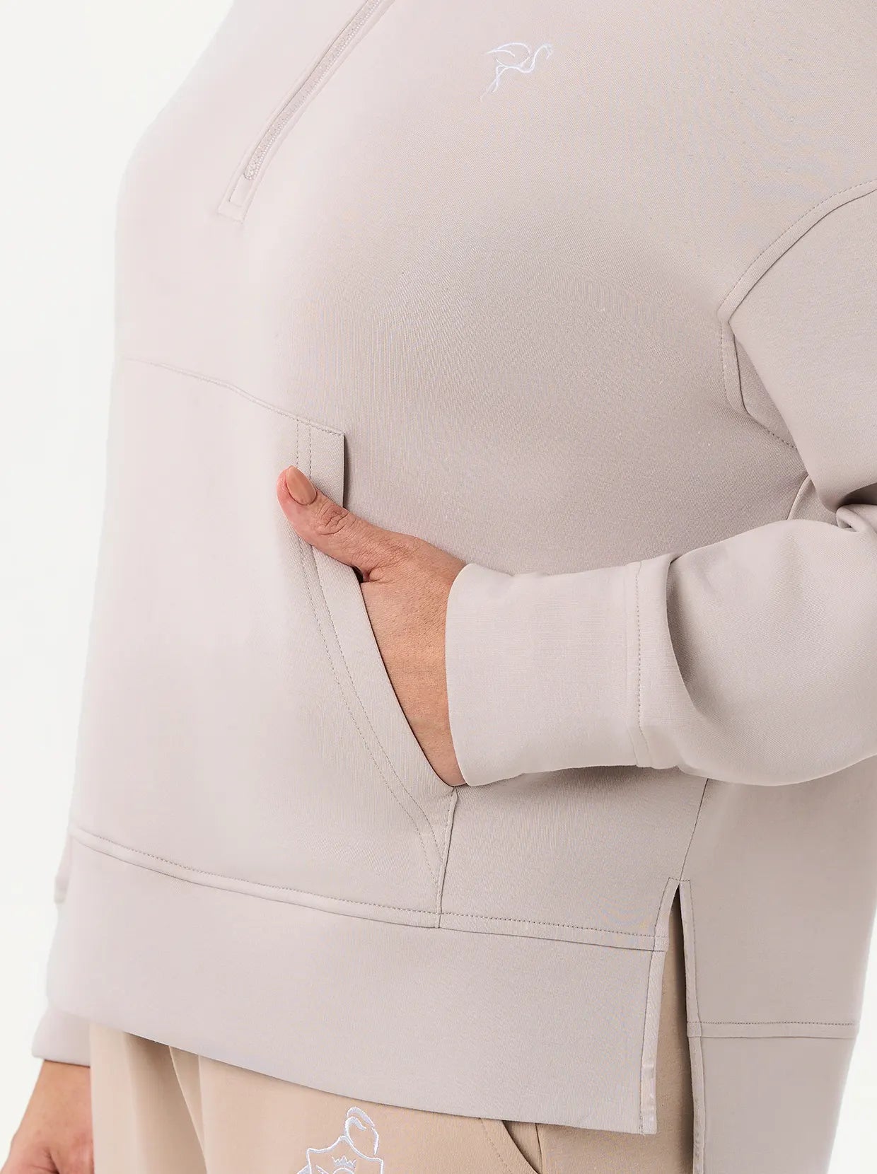 Quarter-zip Long-sleeve Thermal Tops with Curved Split Hem
