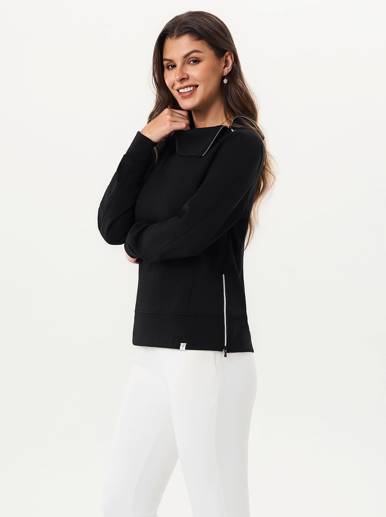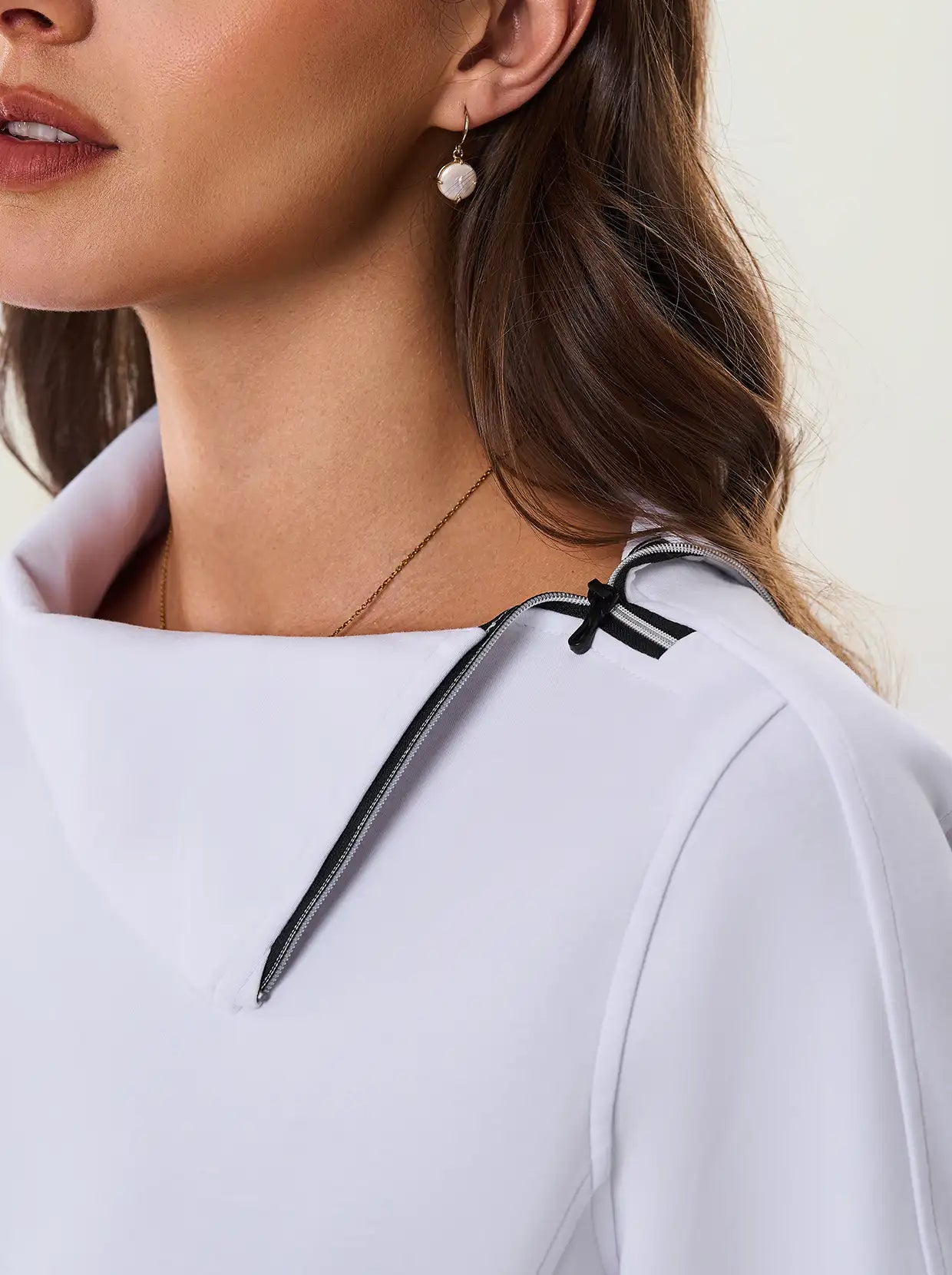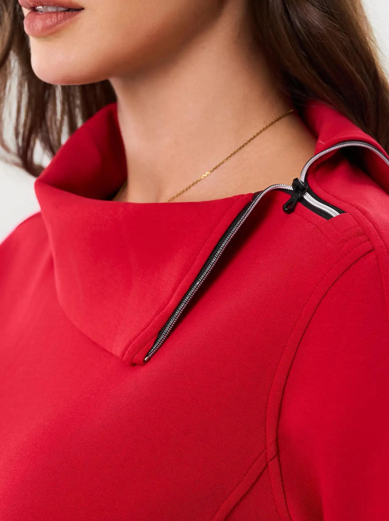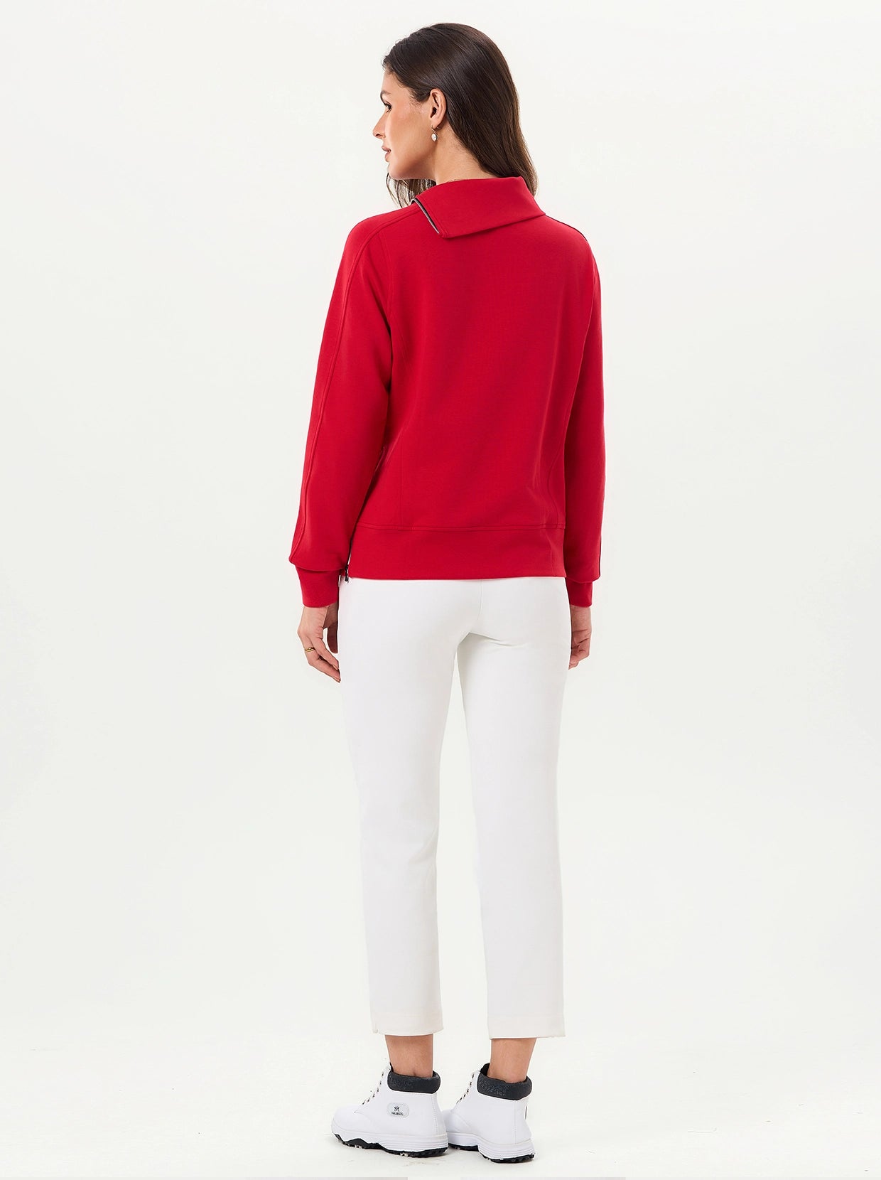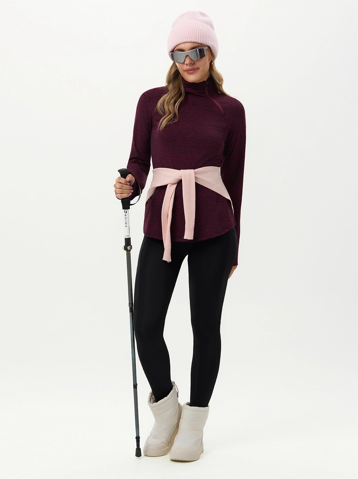 Quarter-zip Long-sleeve Thermal Tops with Curved Split Hem