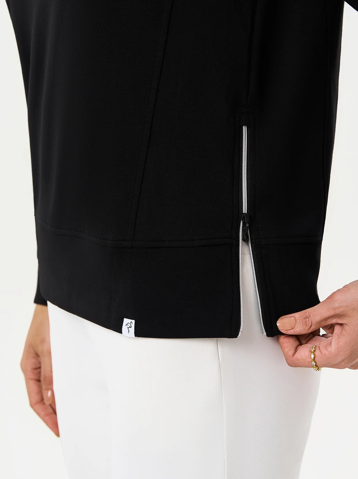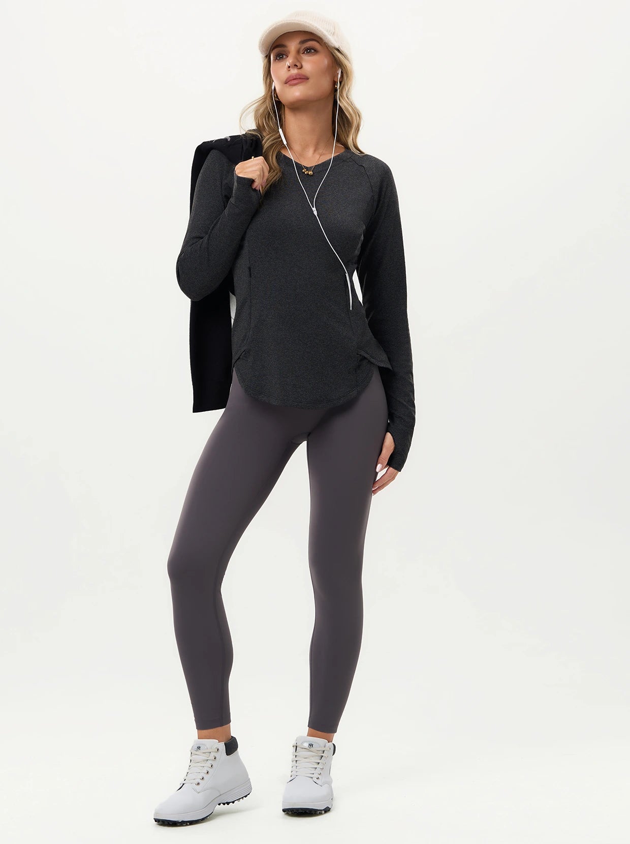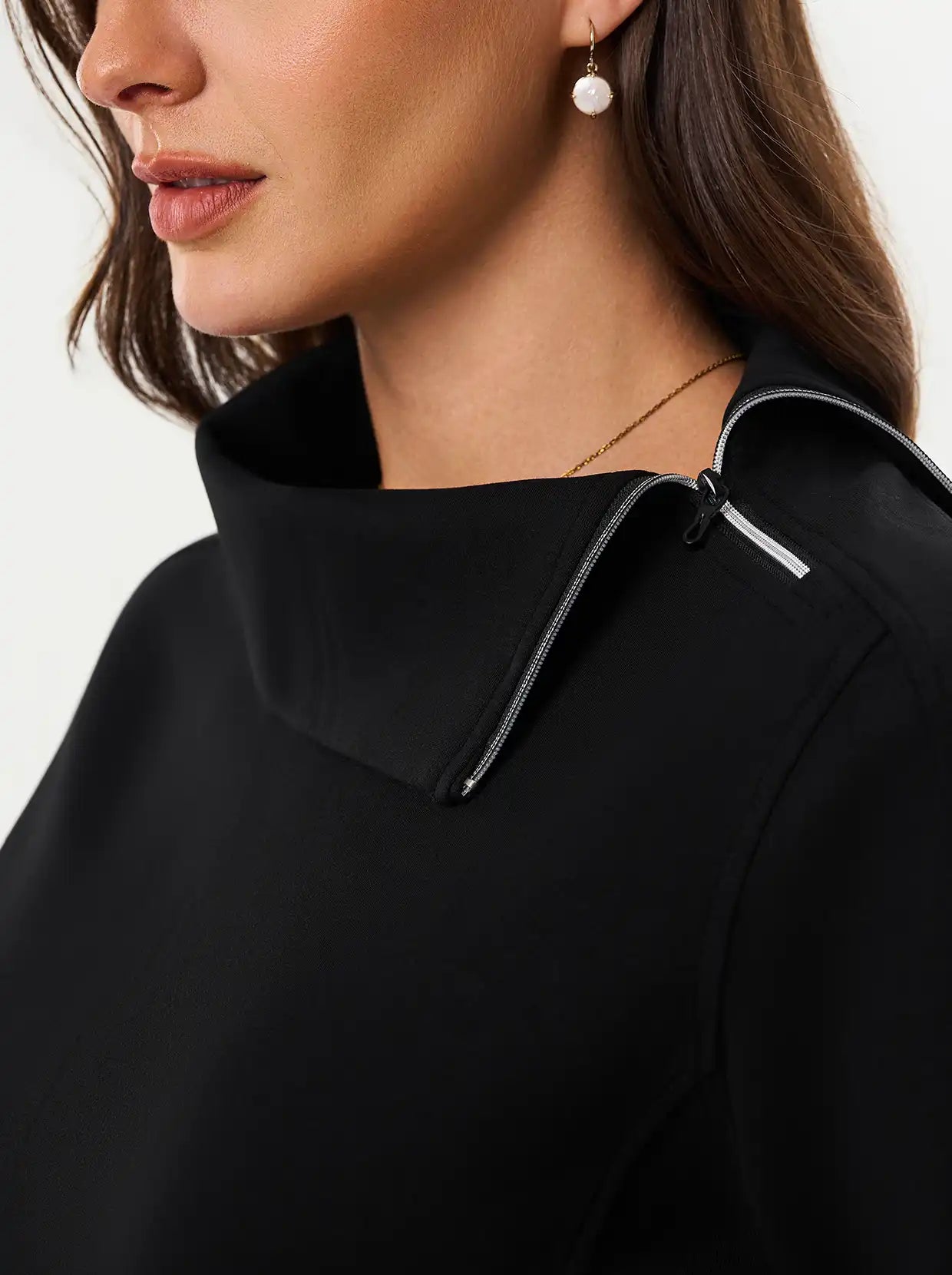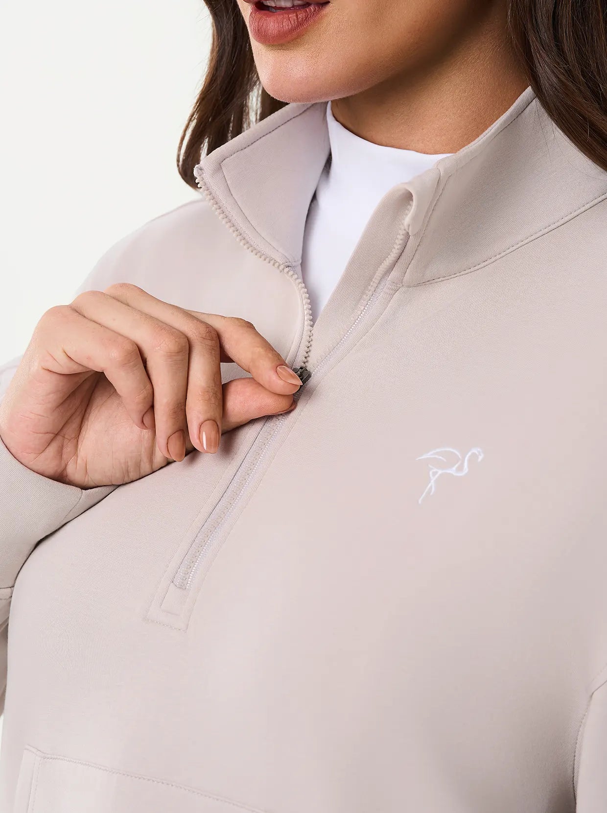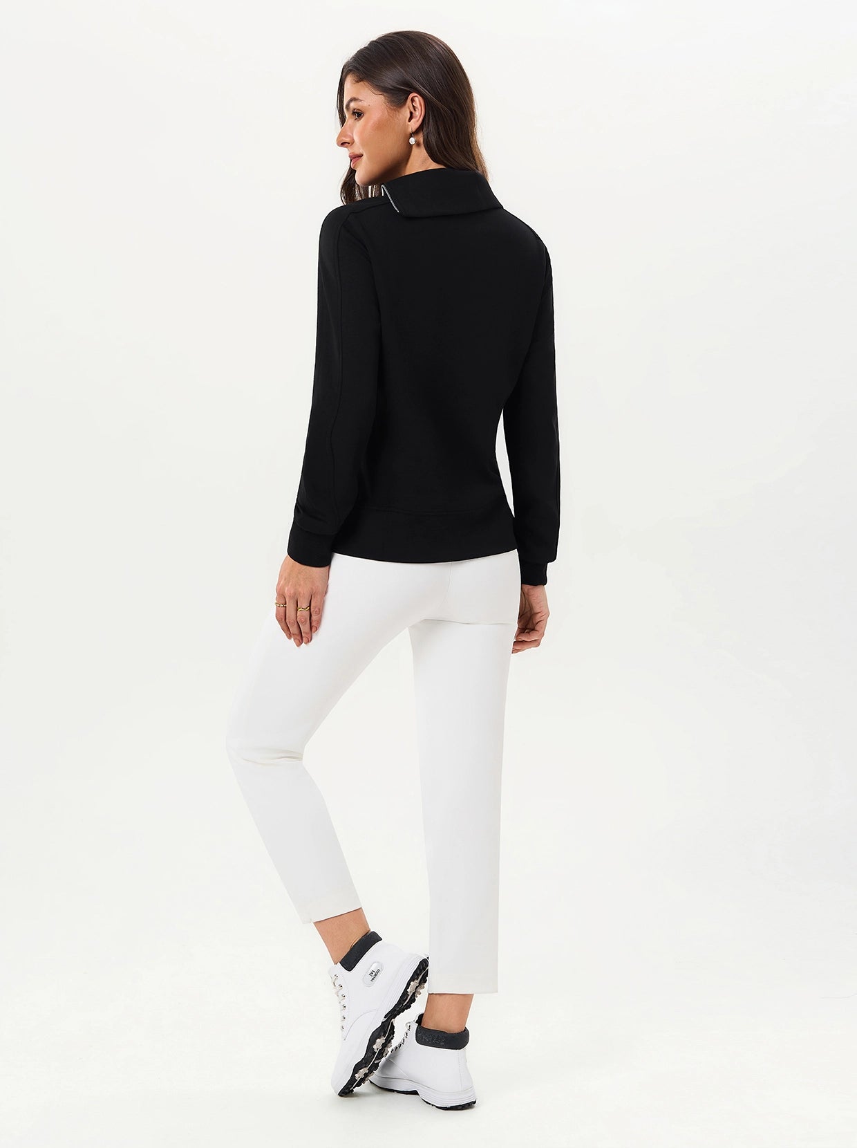 Quarter-zip Long-sleeve Thermal Tops with Curved Split Hem