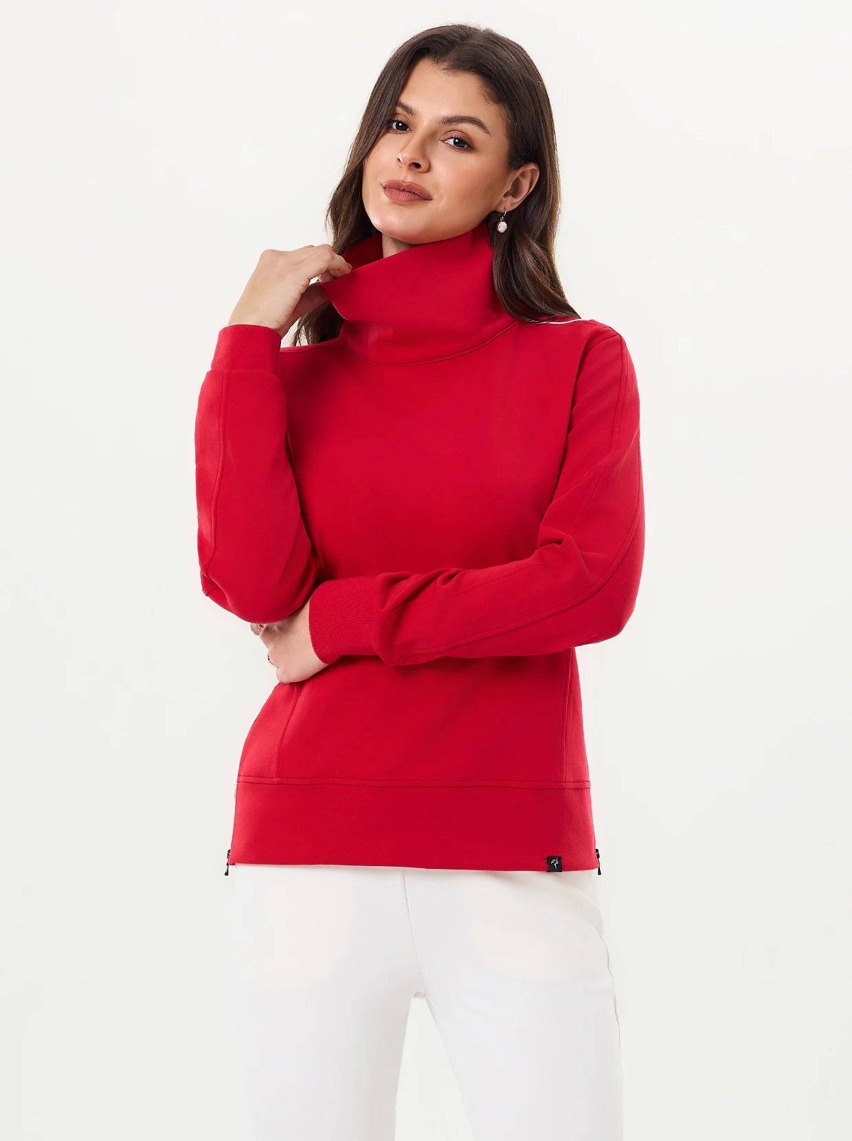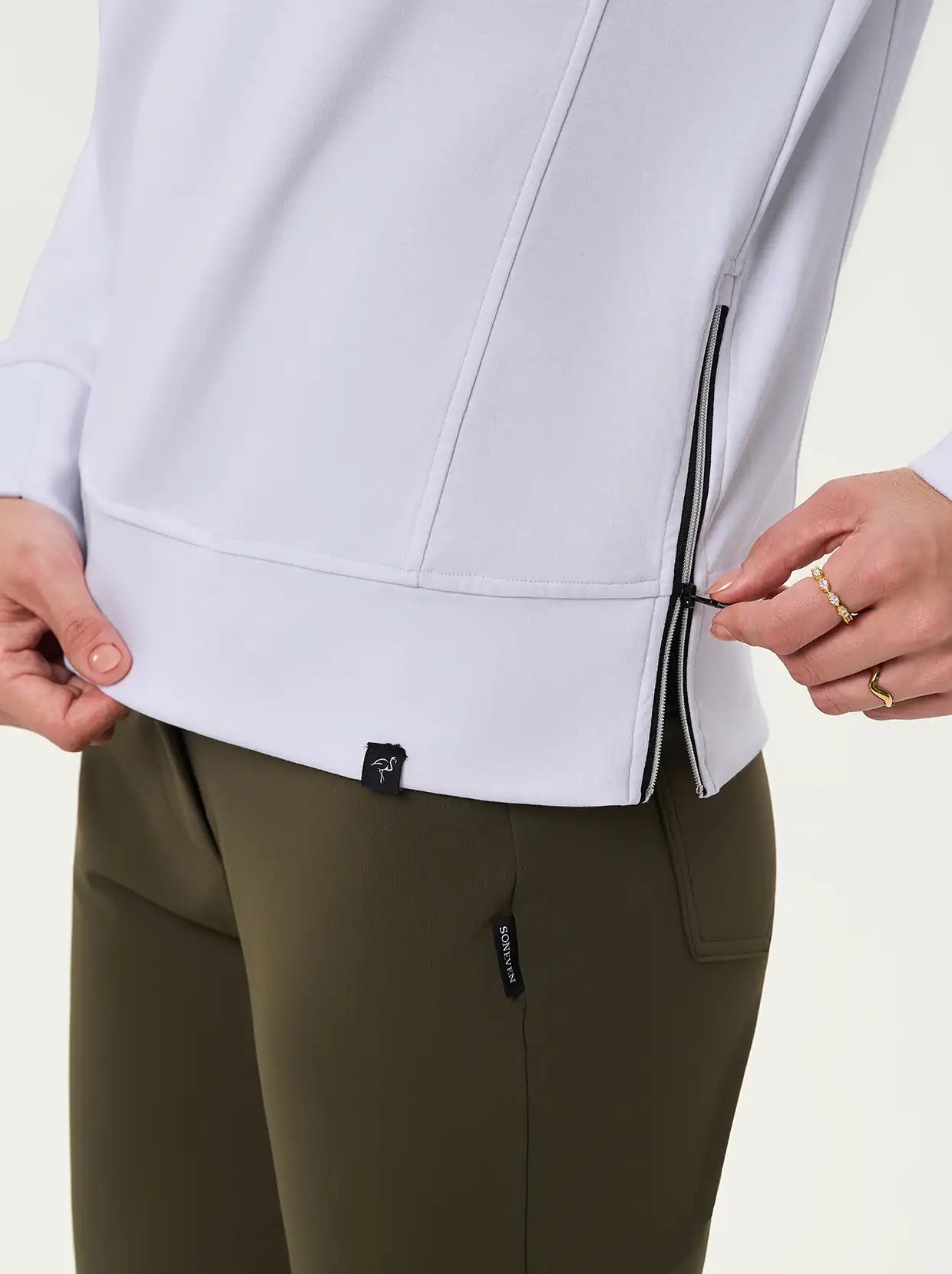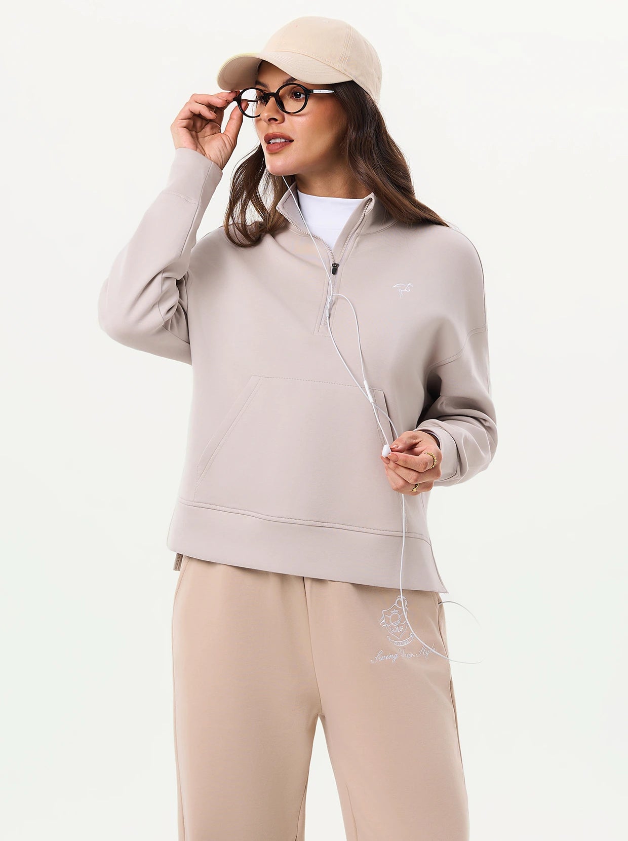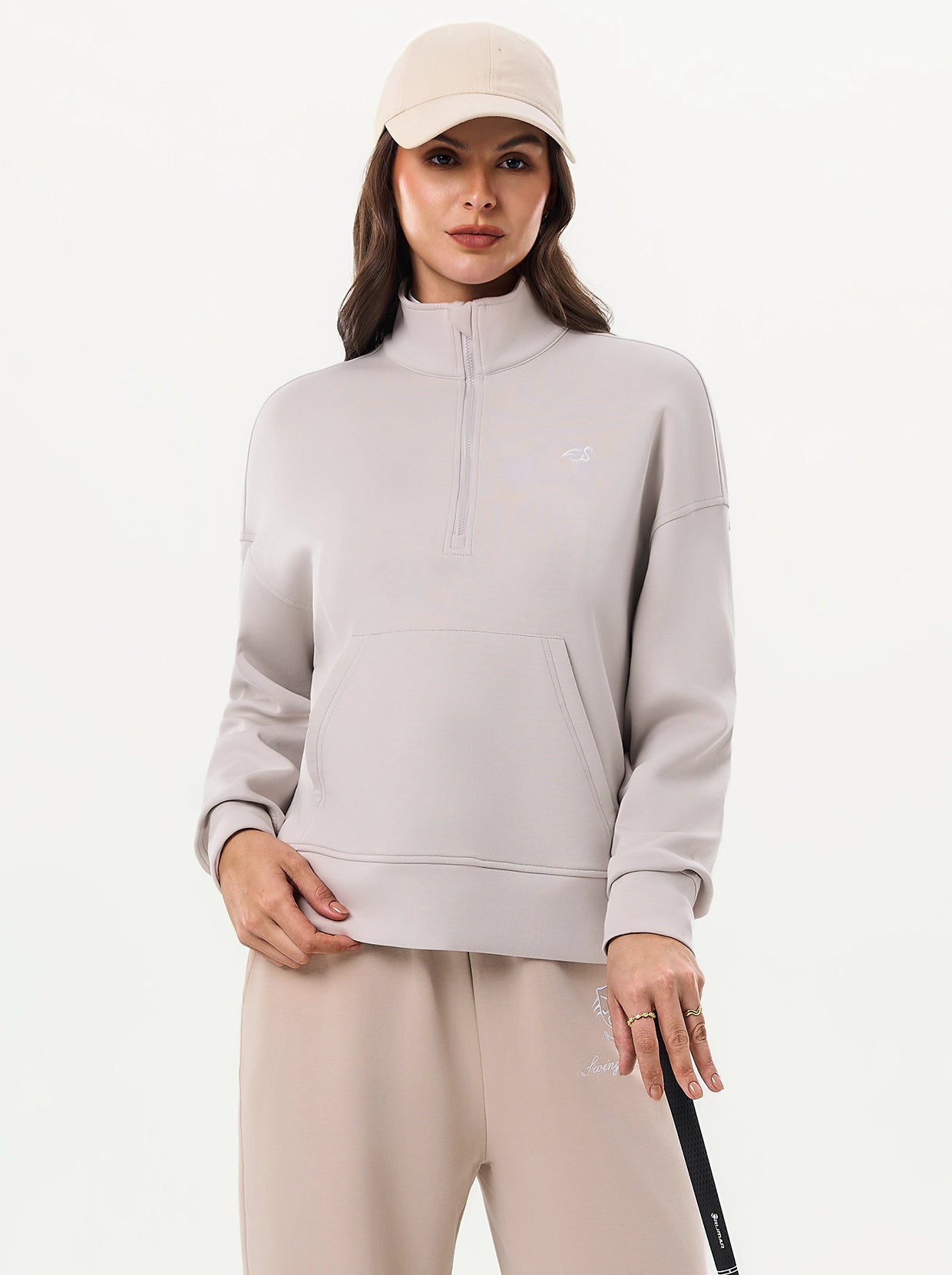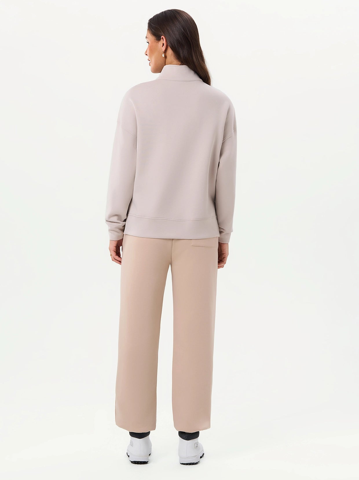 Quarter-zip Long-sleeve Thermal Tops with Curved Split Hem