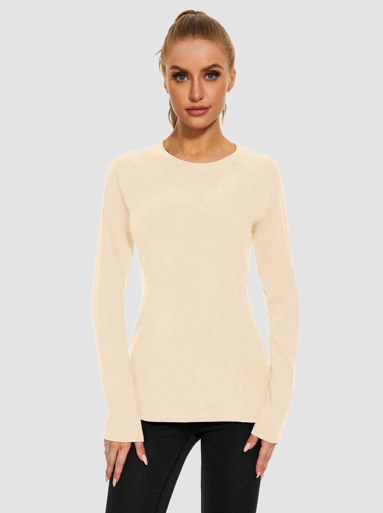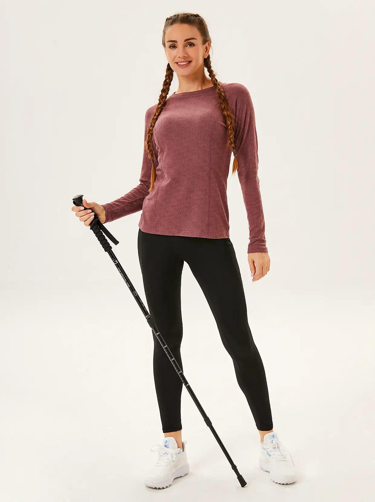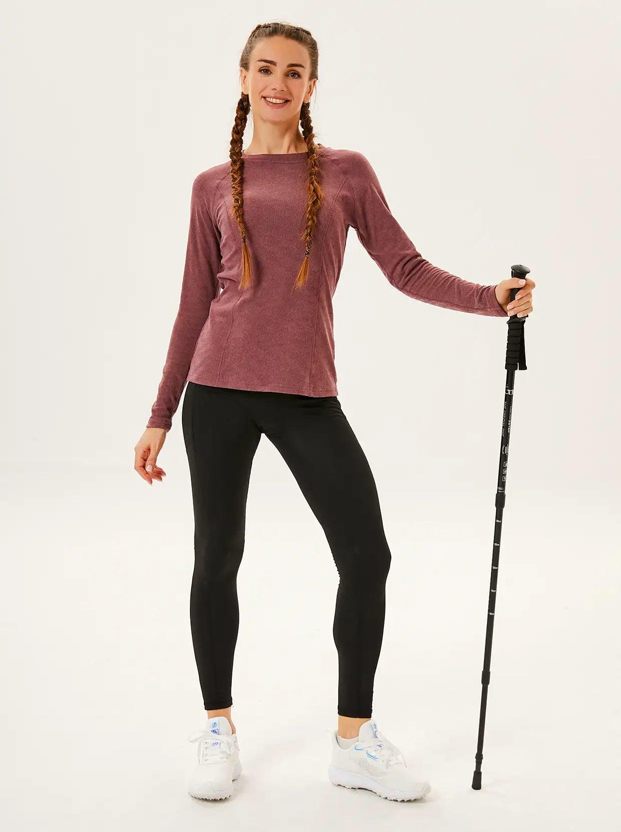 Crew-neck Long-sleeve Fleece Tops for Women
