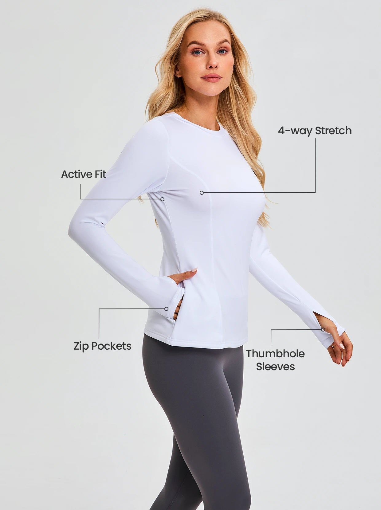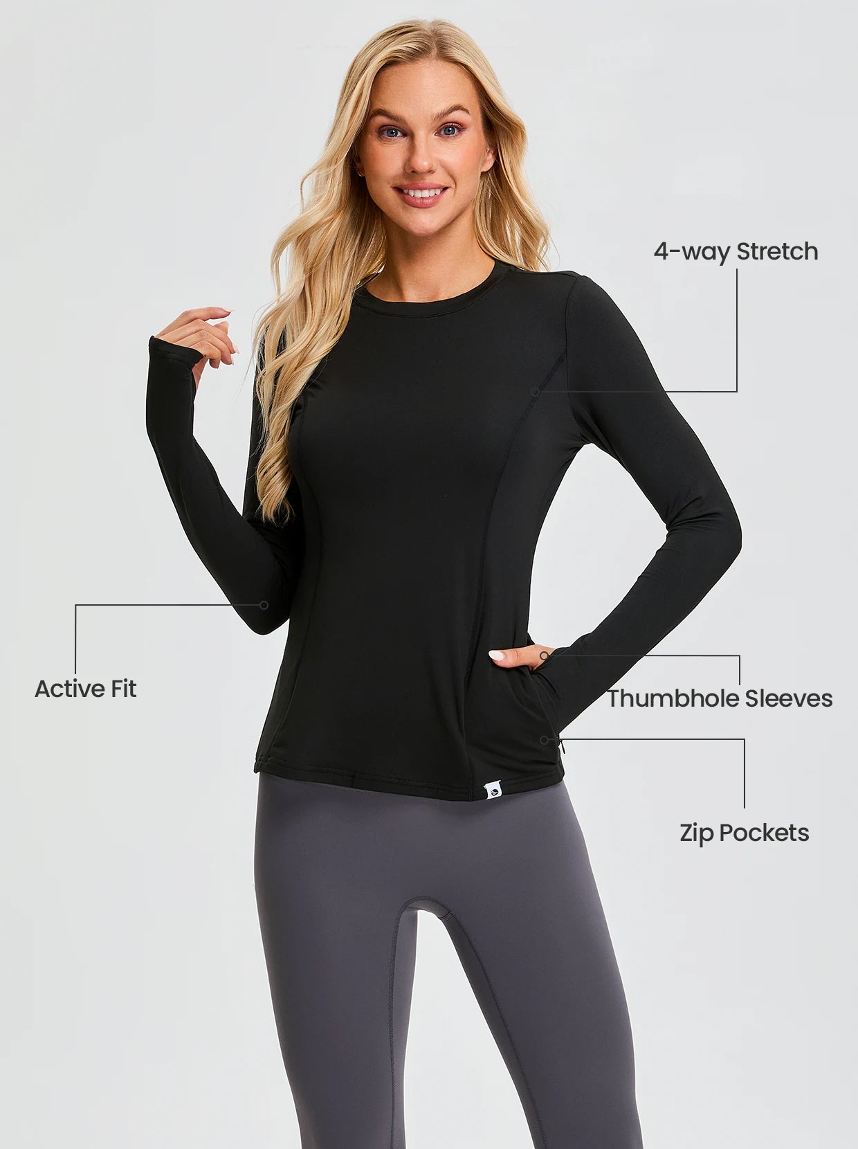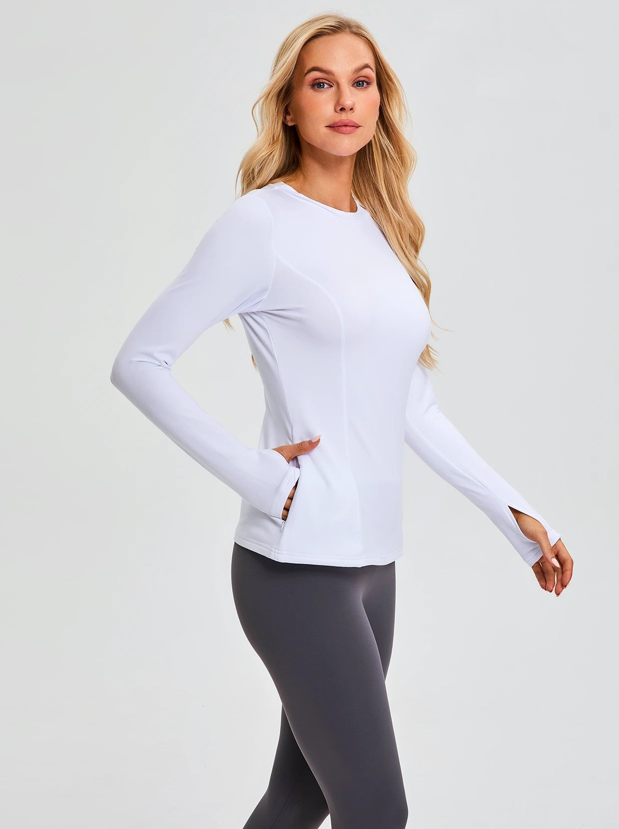 Crew-neck Long-sleeve Fleece Tops for Women