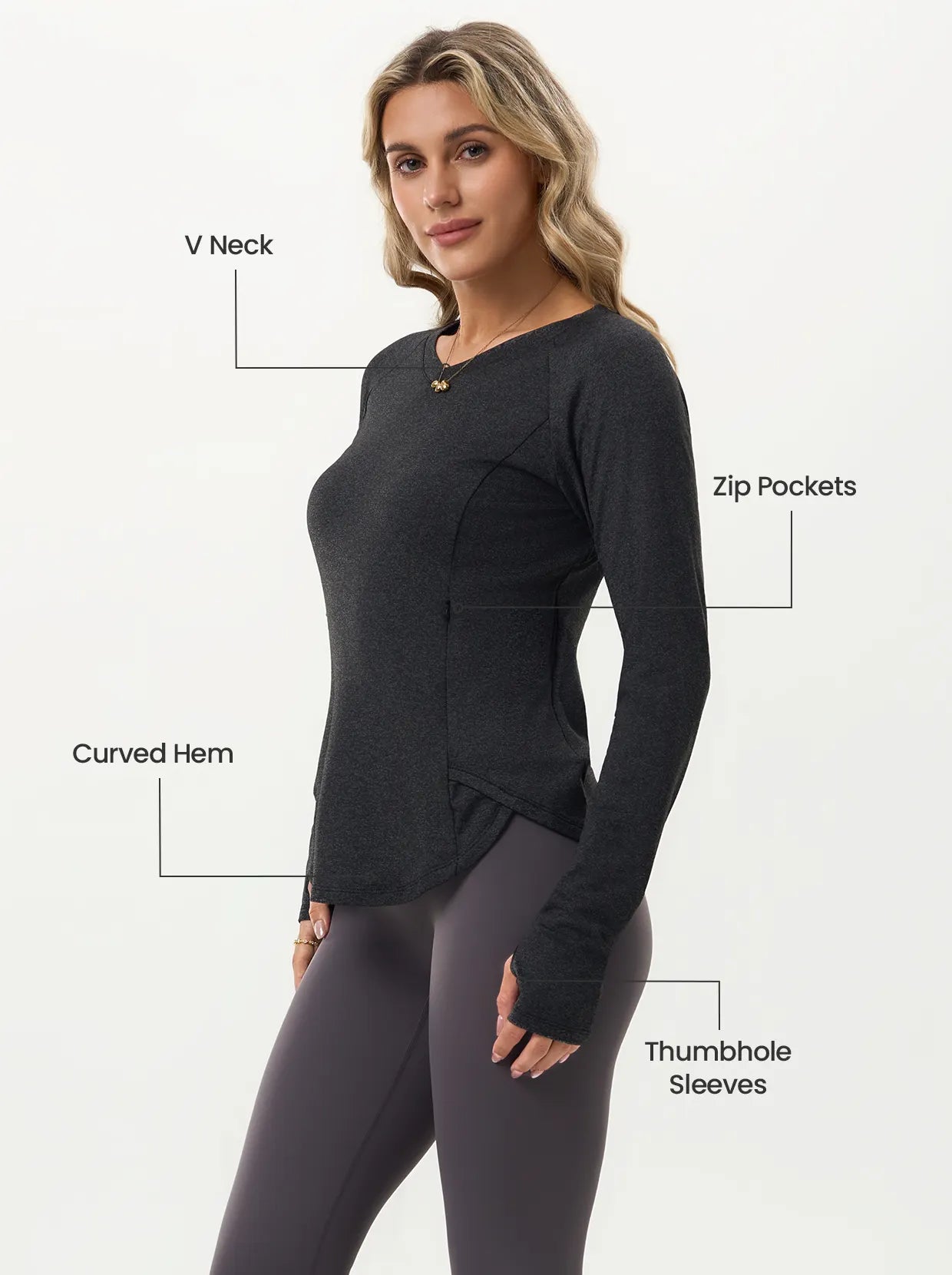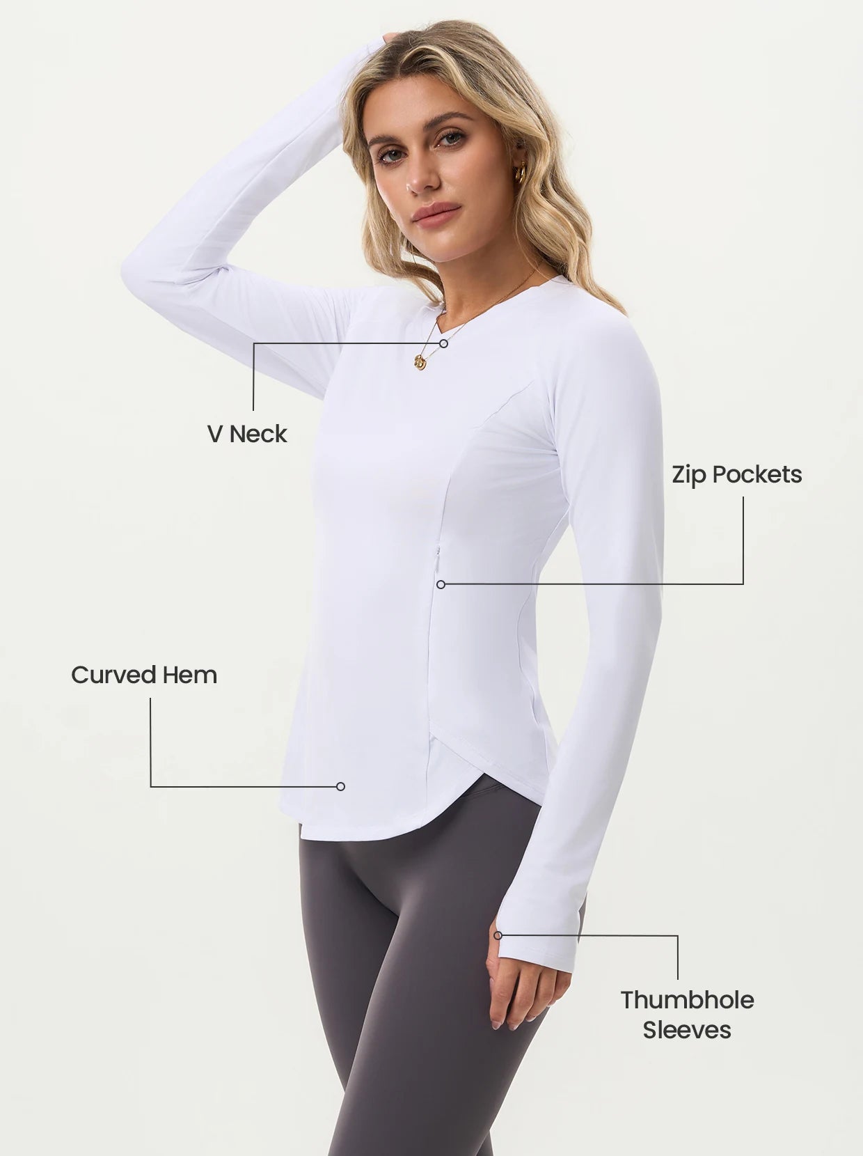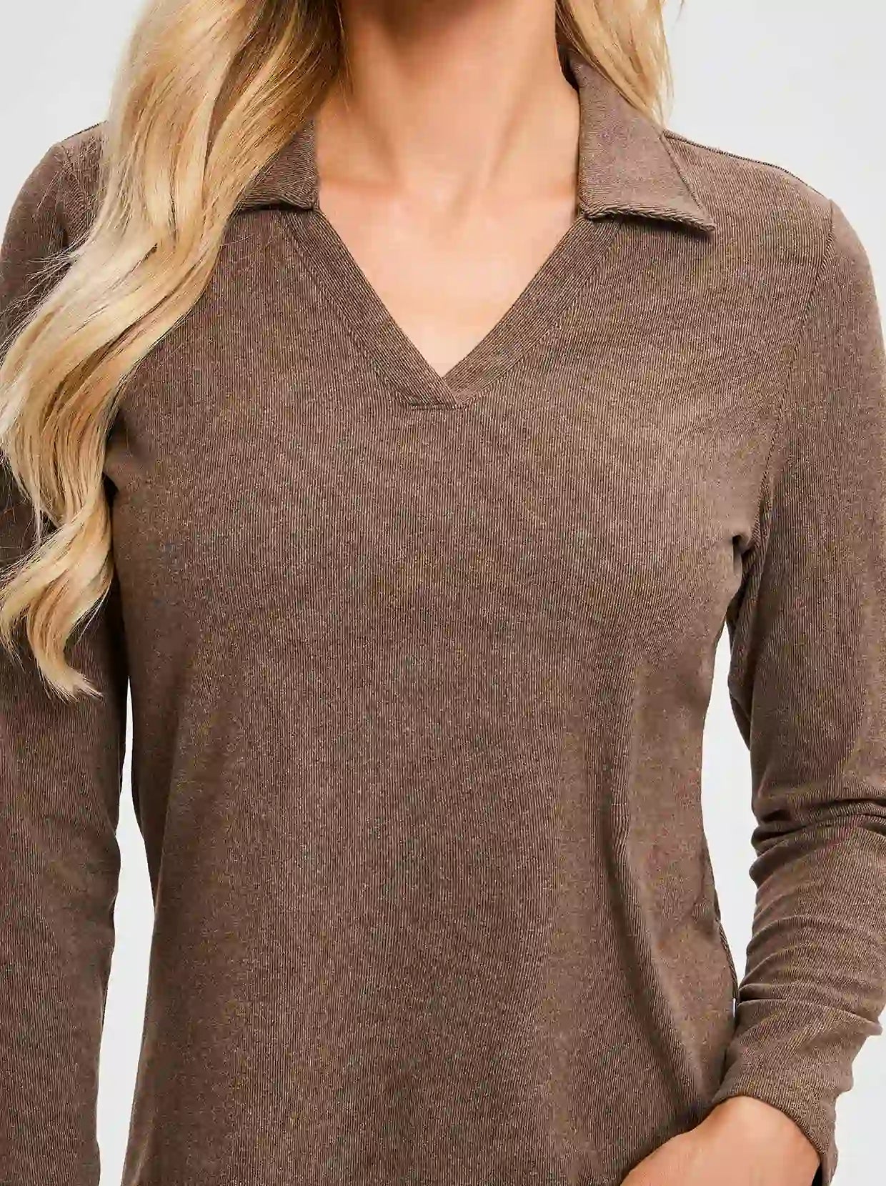 V-neck Long-sleeve Fleece Top with Thumbholes