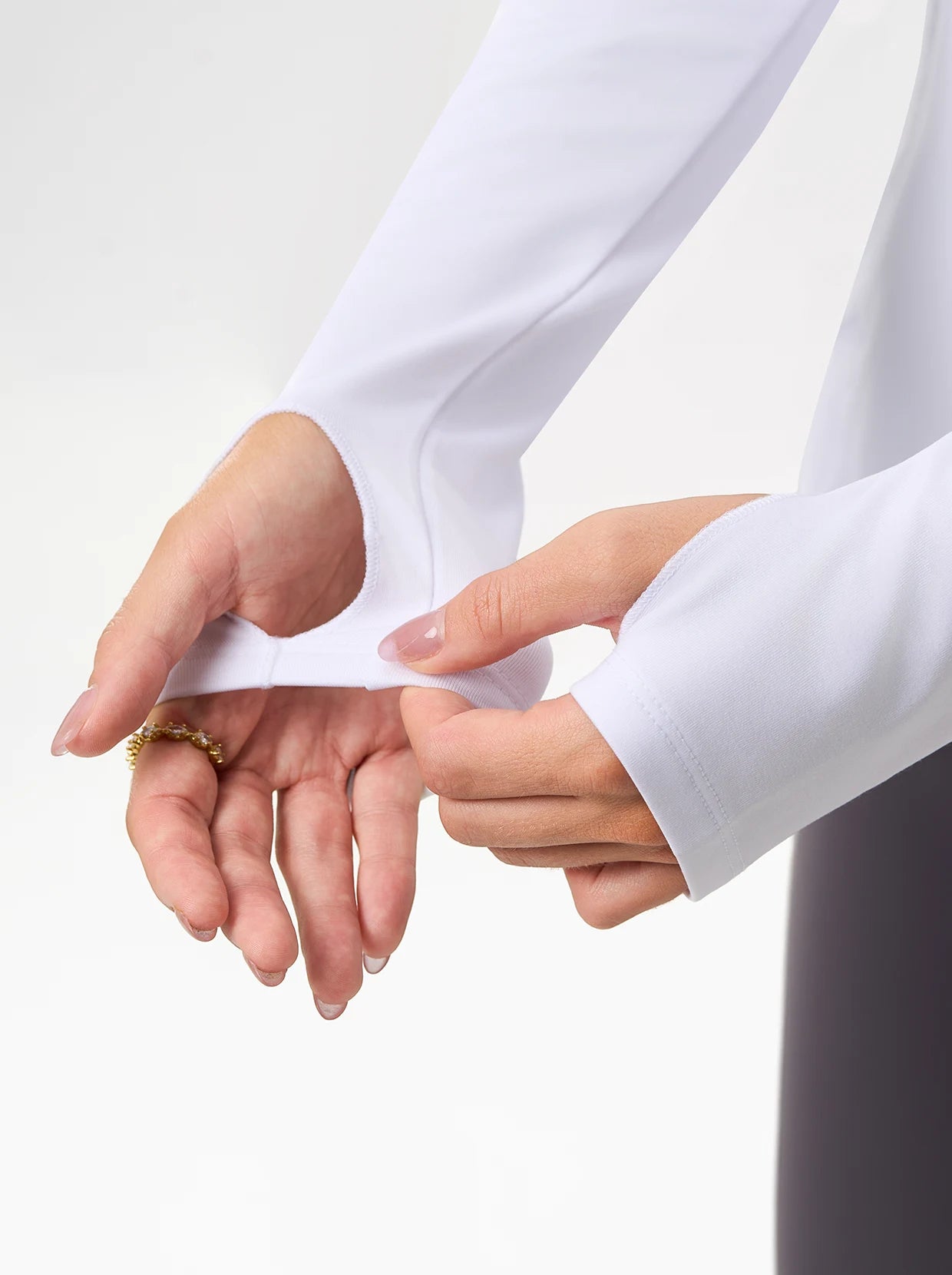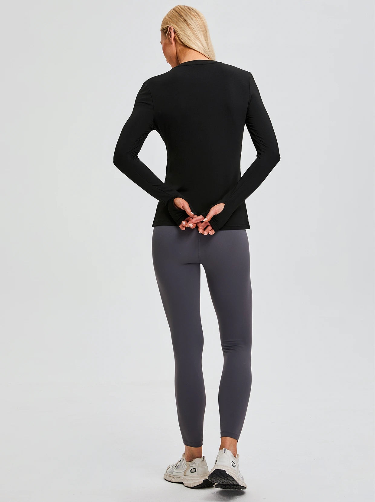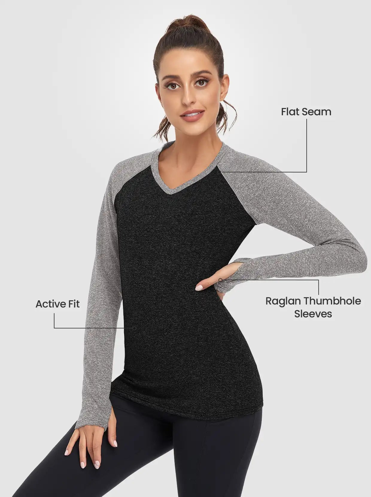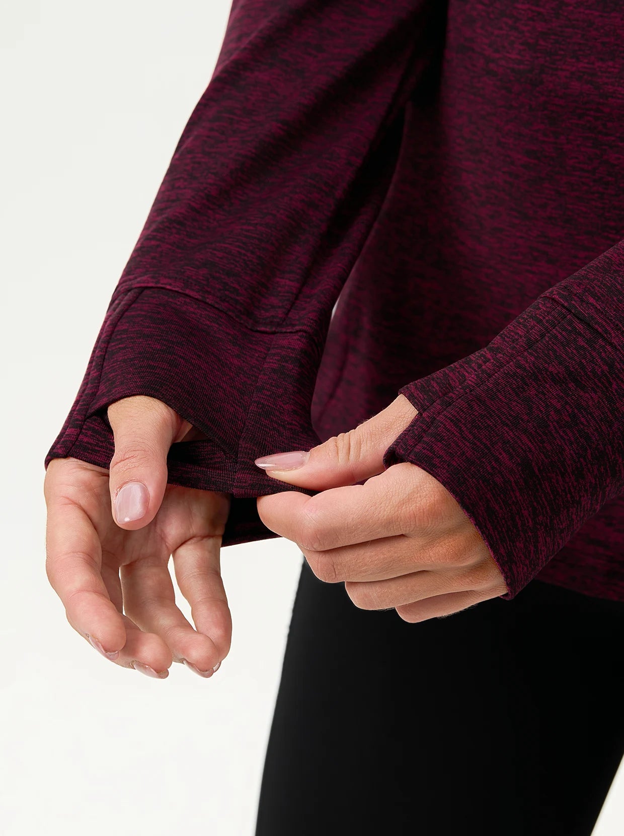 V-neck Long-sleeve Fleece Top with Thumbholes