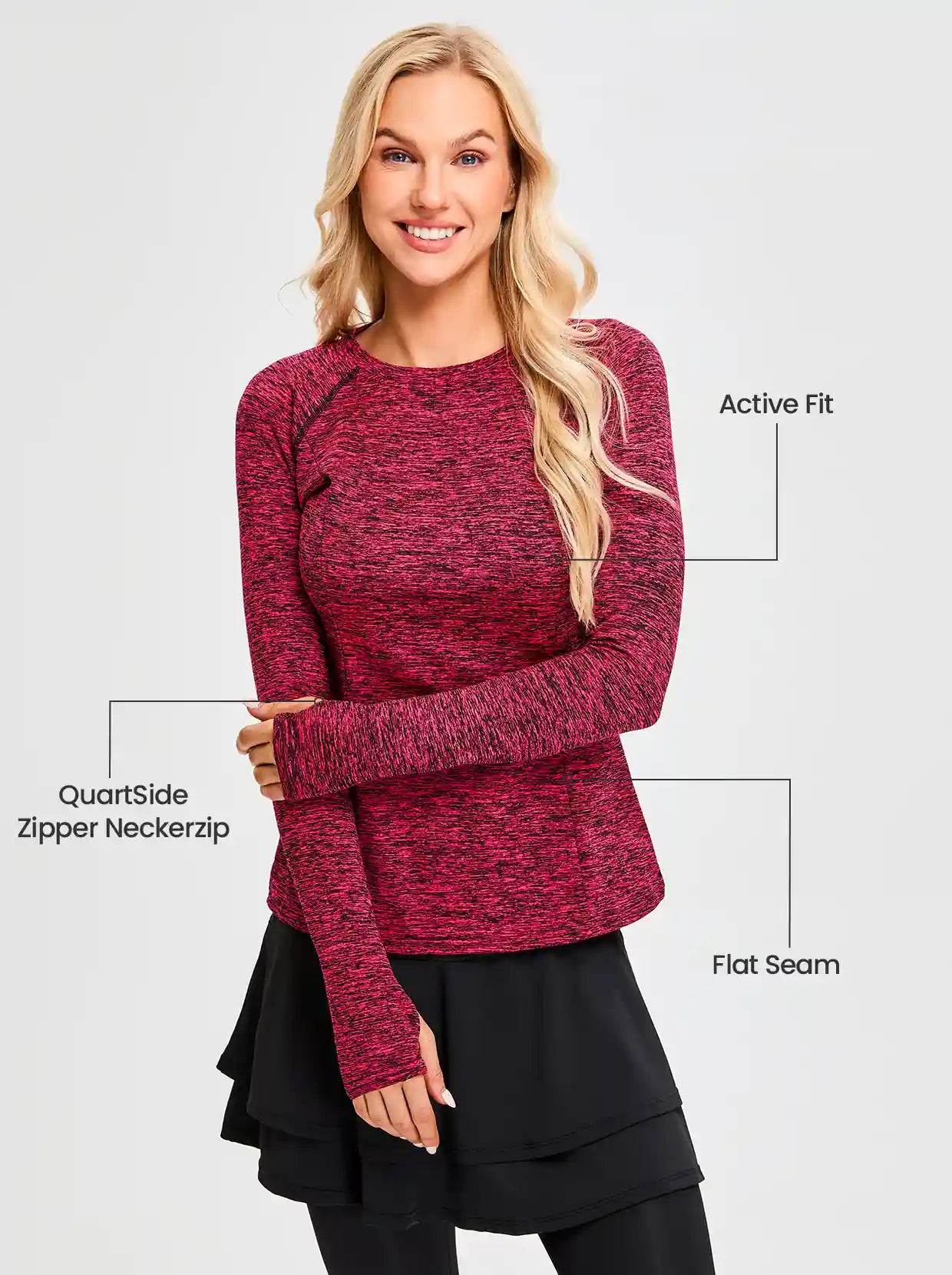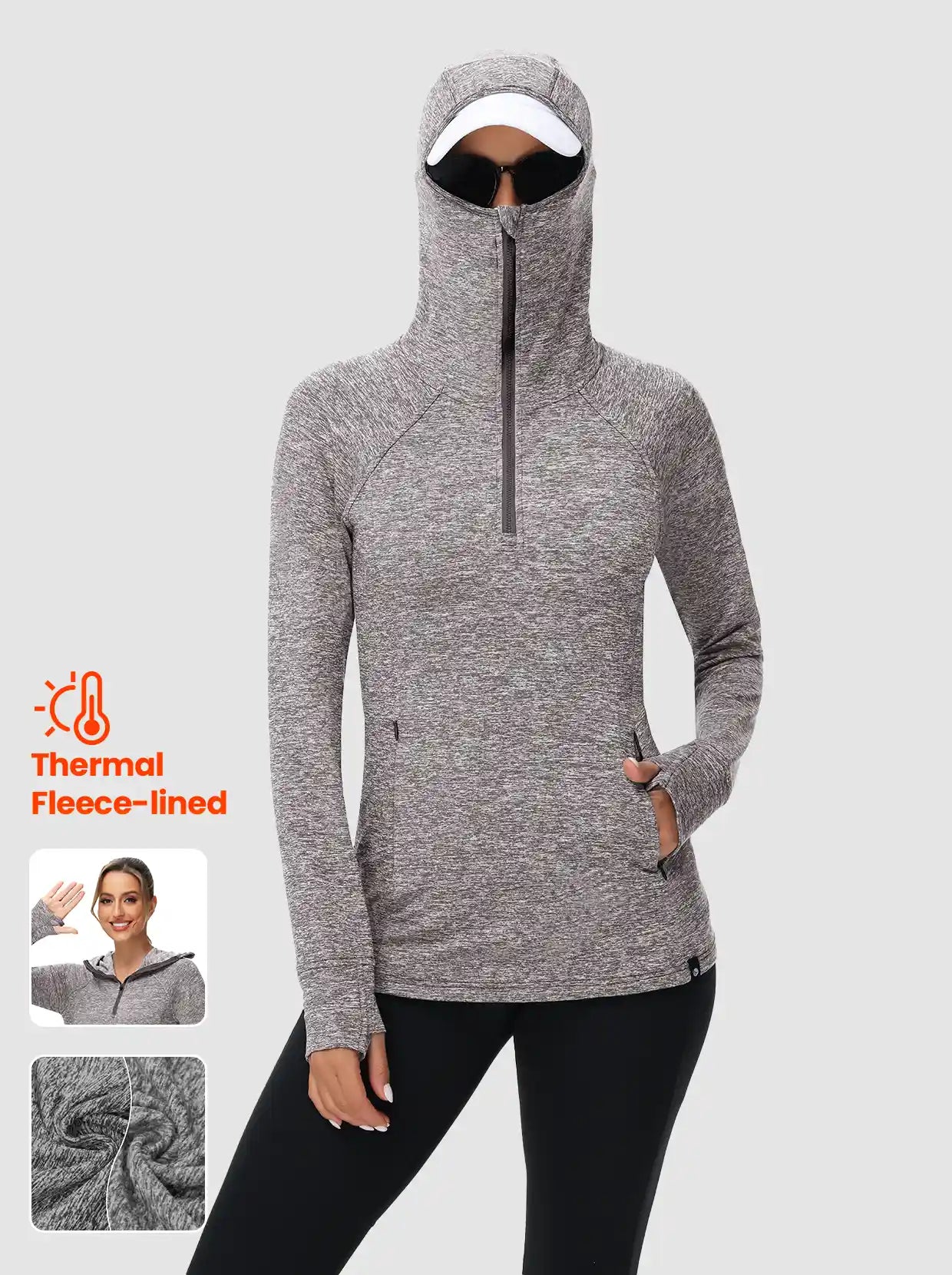 Half-zip Hoodies Long-sleeve Thermal Top for Women