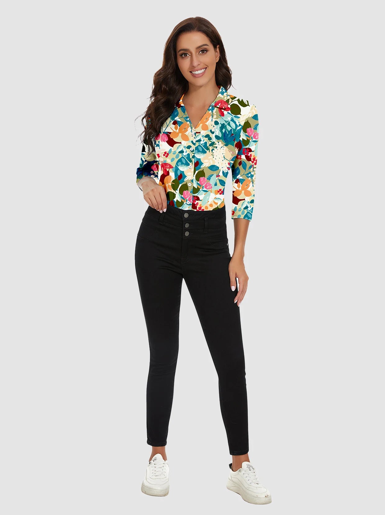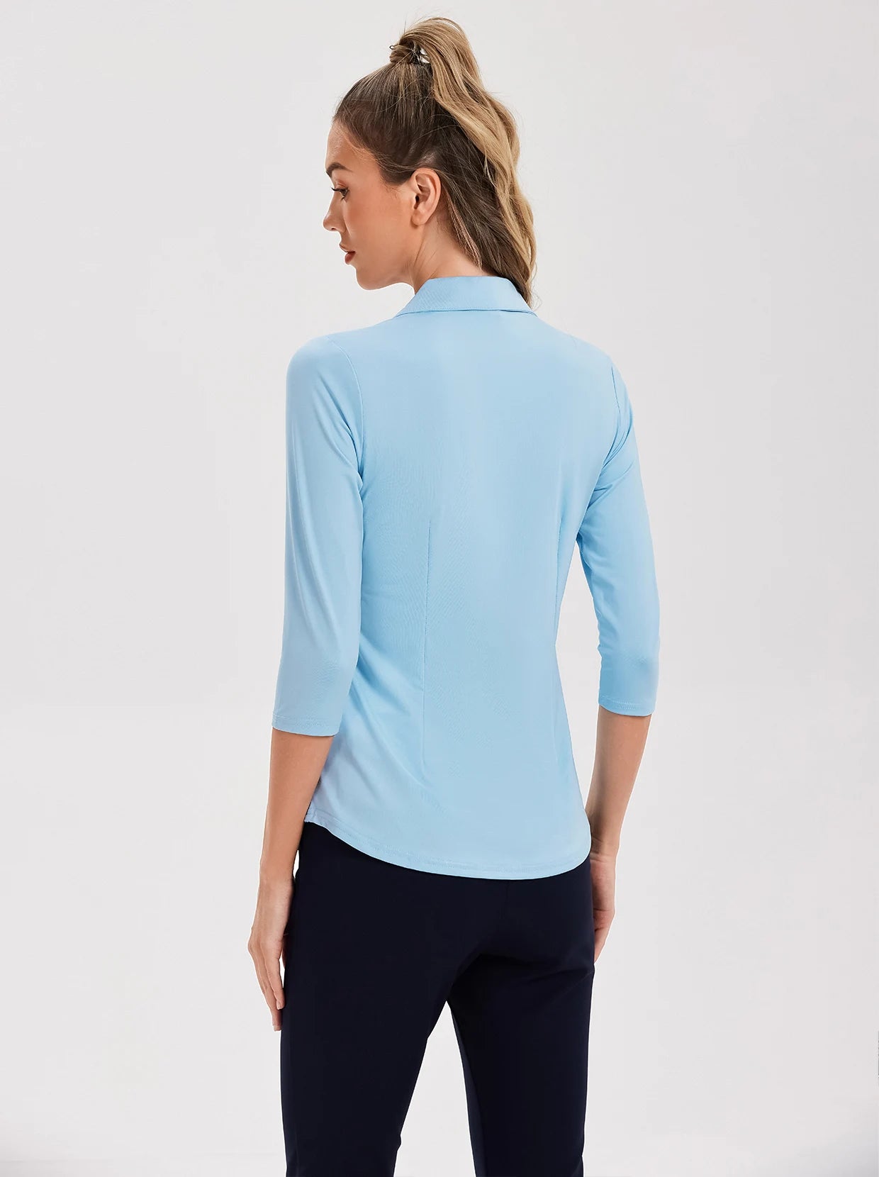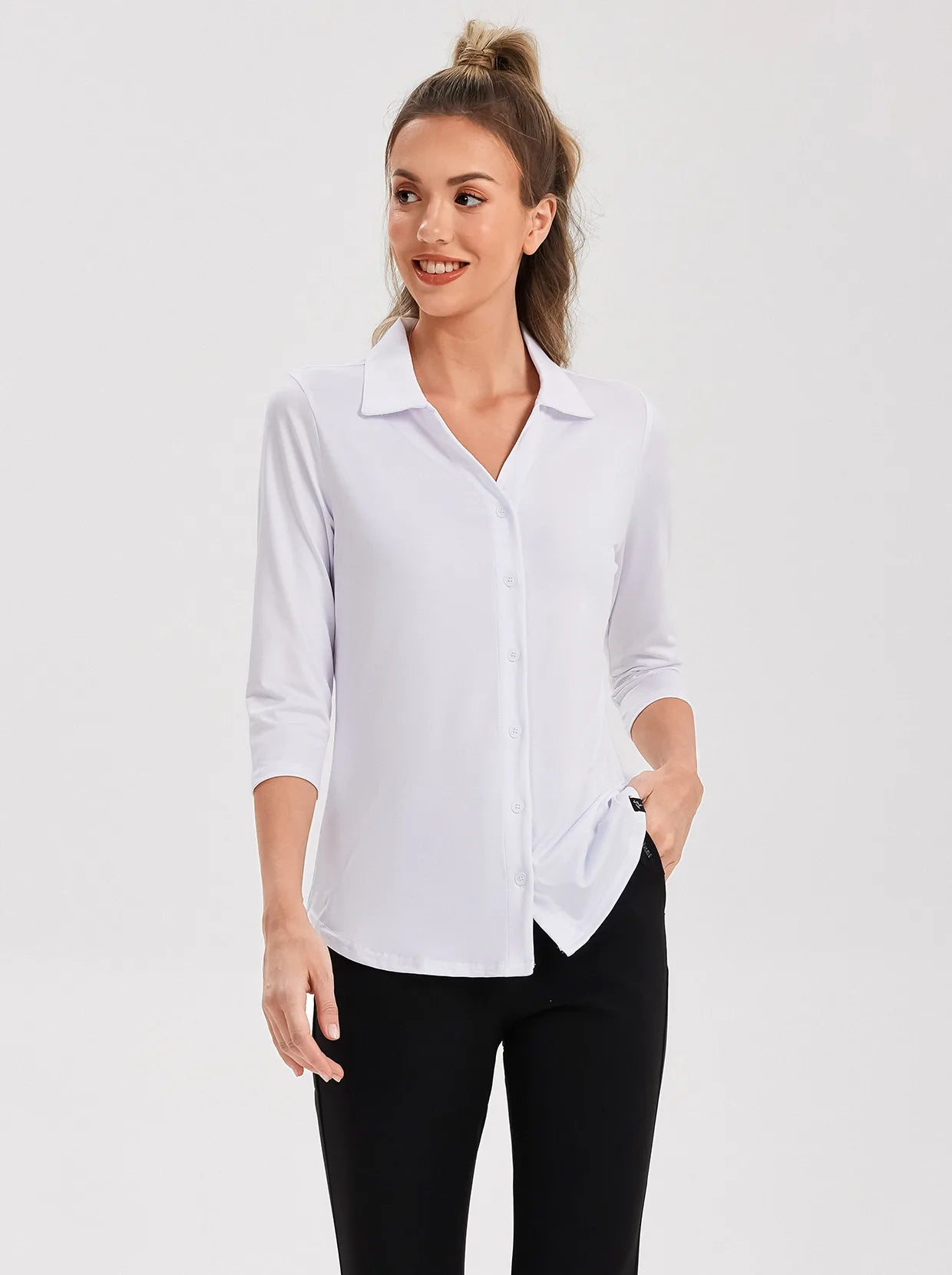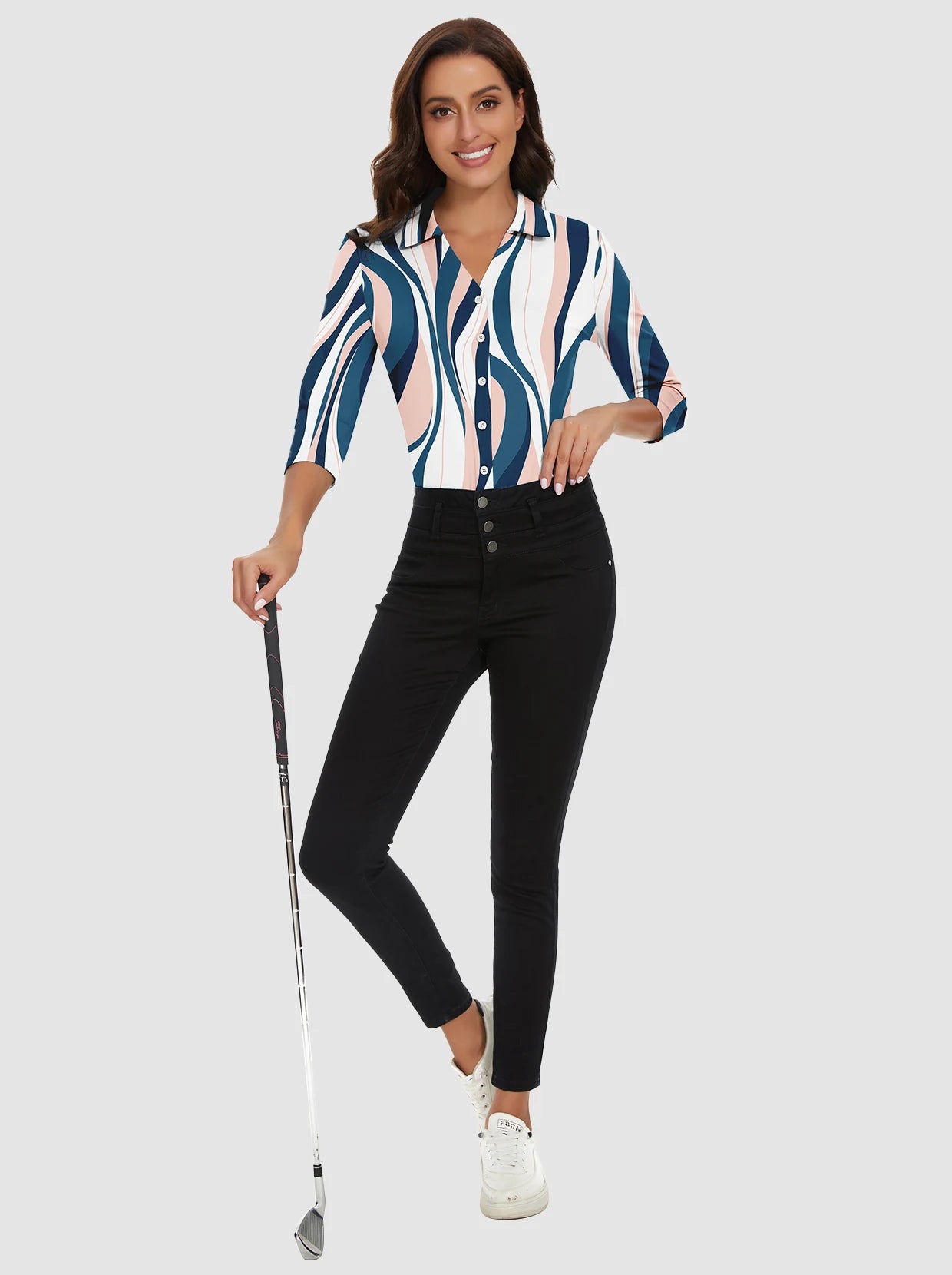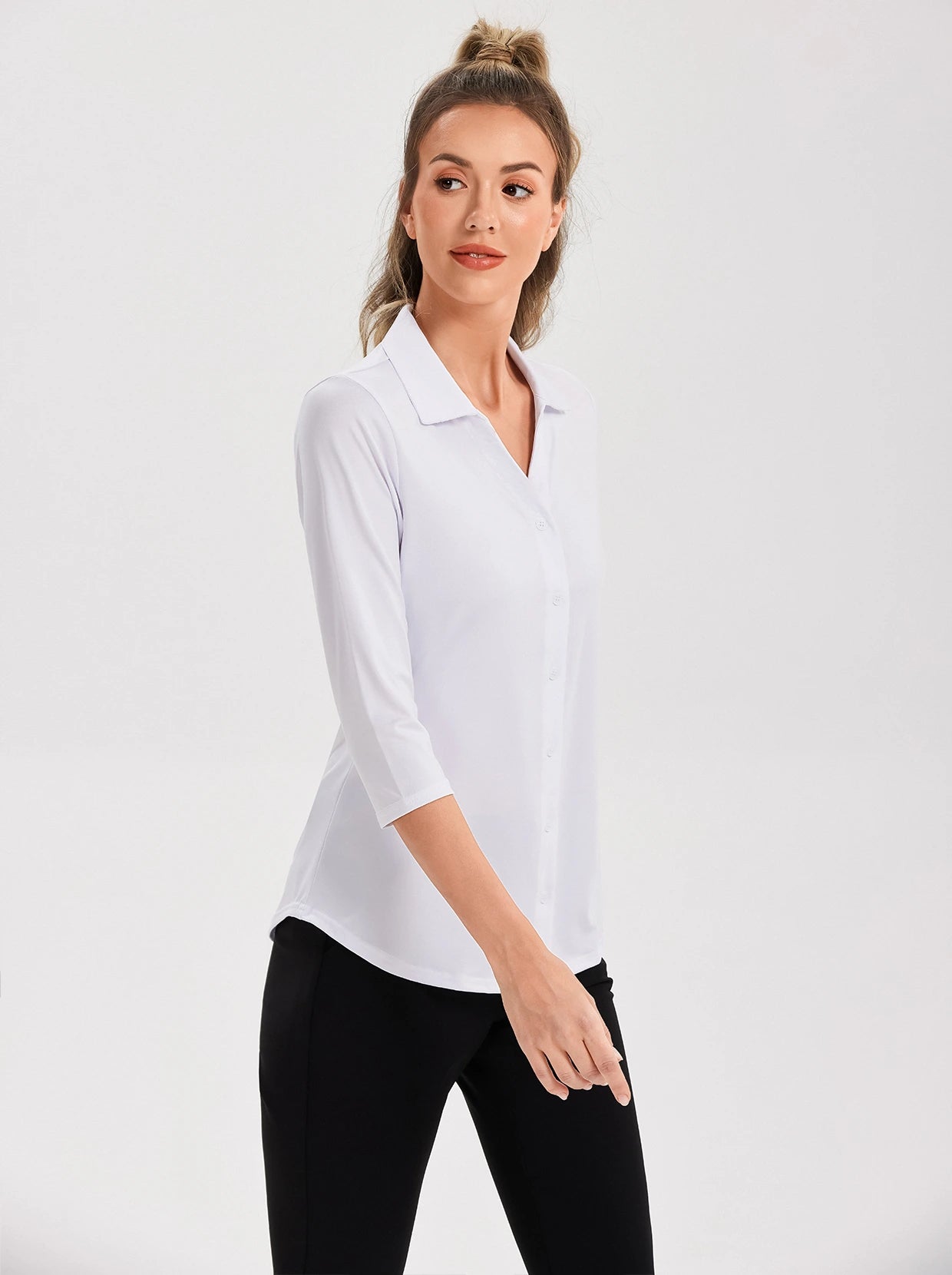 Discover the allure of Soneven's stylish 3/4 length sleeve golf shirts for women. Offering comfortable coverage for ample sun protection, these shirts are designed to elevate your golf game. With elegant and feminine designs, along with trendy prints, they add a playful touch to your golf outfits. V-neck button-down shirts, also perfect for daily wear, are easy to pair with straight long skirts and jeans.