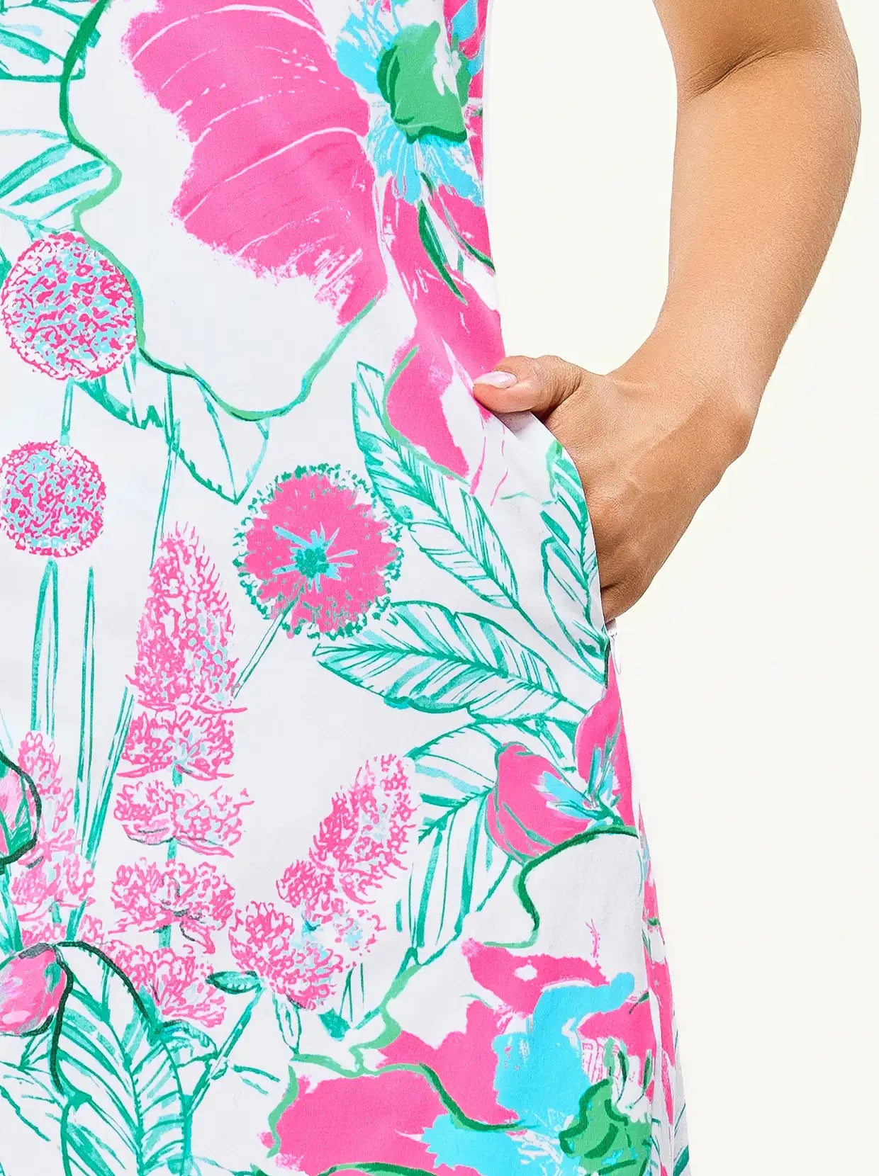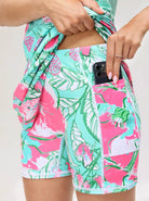 34.5" Pink Floral Sleeveless Polo Dress with Shorts and Pockets