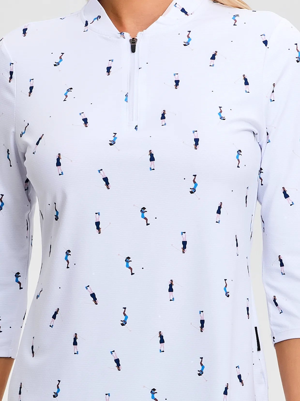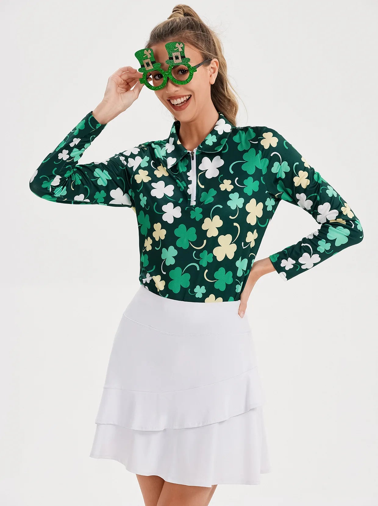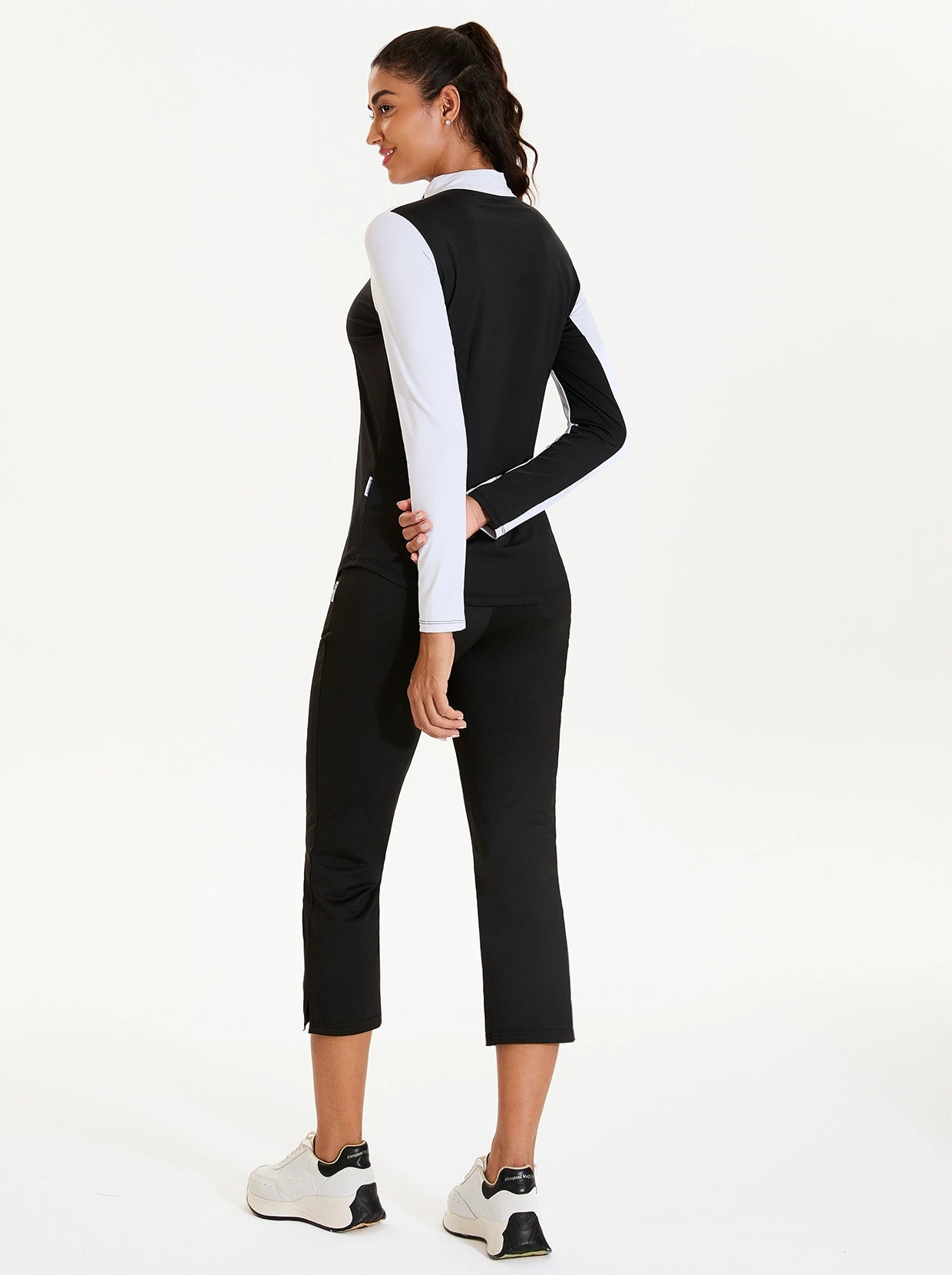 A women’s quarter zip is a versatile piece for golf, and styling it properly can help you feel comfortable and look your best on the course. Start by pairing it with well-fitted golf pants or a skirt for a balanced, athletic look. For a more relaxed approach, consider wearing it with comfortable women’s golf shirts underneath for added layering. The quarter zip can be worn open or zipped up depending on the weather, allowing for adaptability. When choosing a color, stick to classic neutrals like navy, black, or white for a timeless look, or opt for bold hues to stand out.