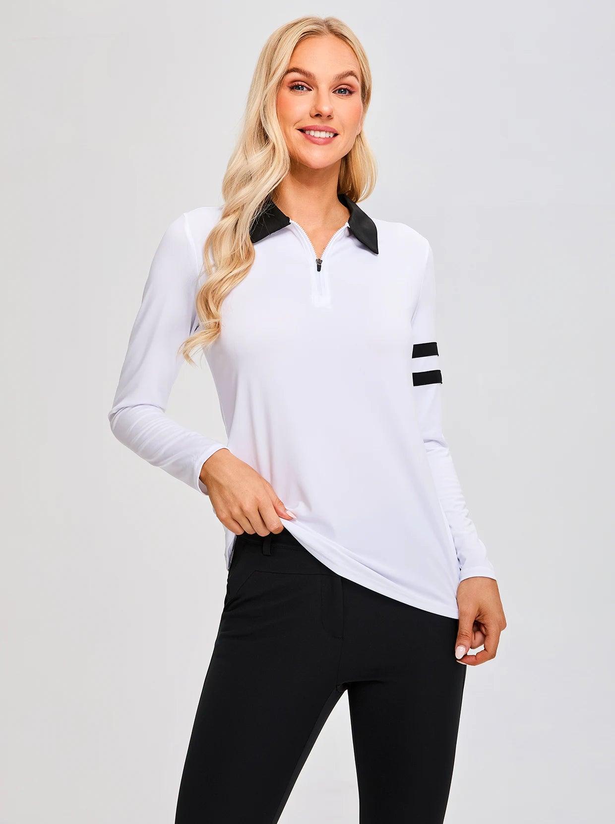 Additionally, the layering option allows you to stay warm in colder temperatures without wearing bulky clothing. The style is perfect for early morning rounds when the temperatures are cooler, or for playing during transitional seasons like fall or spring. With the right fabric and layering, a quarter-zip women’s top can be both functional and stylish in colder weather, ensuring you're prepared for any conditions on the golf course.