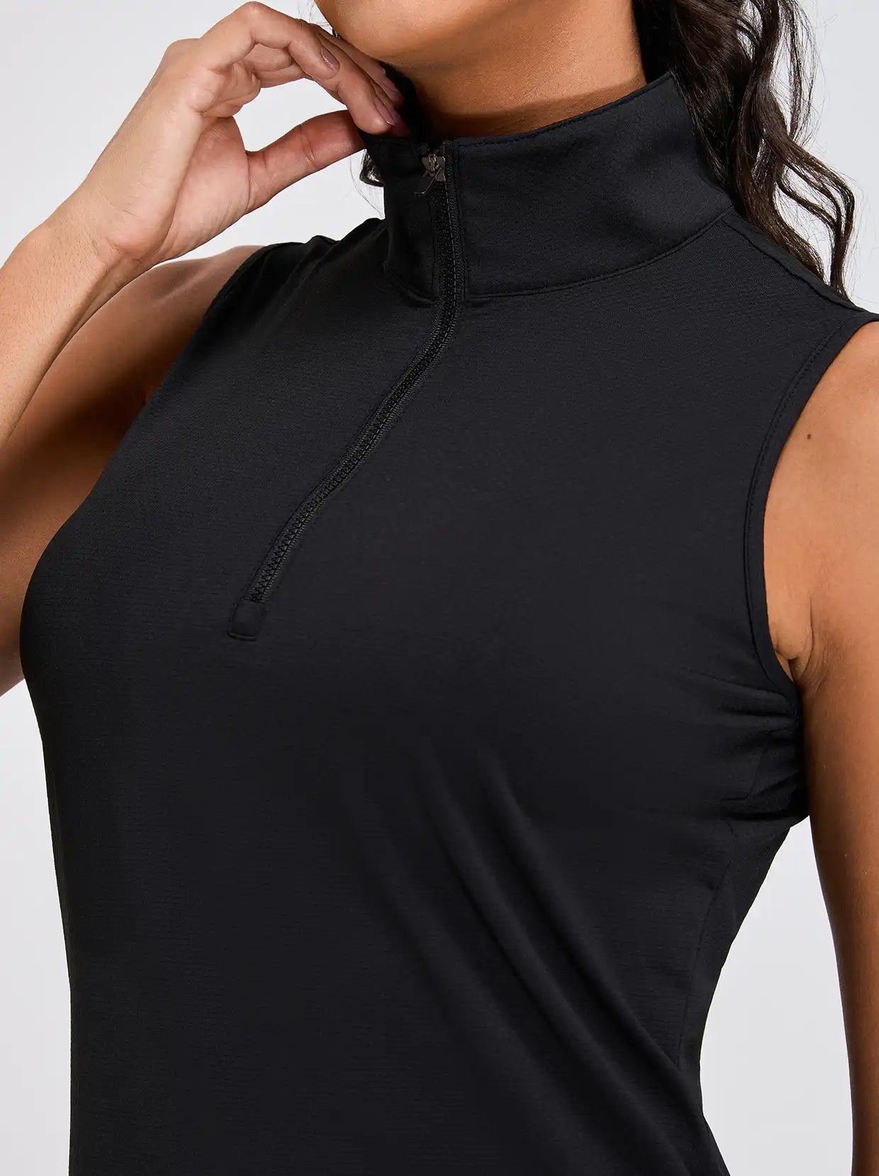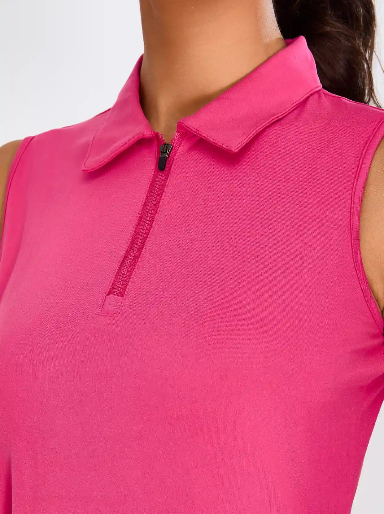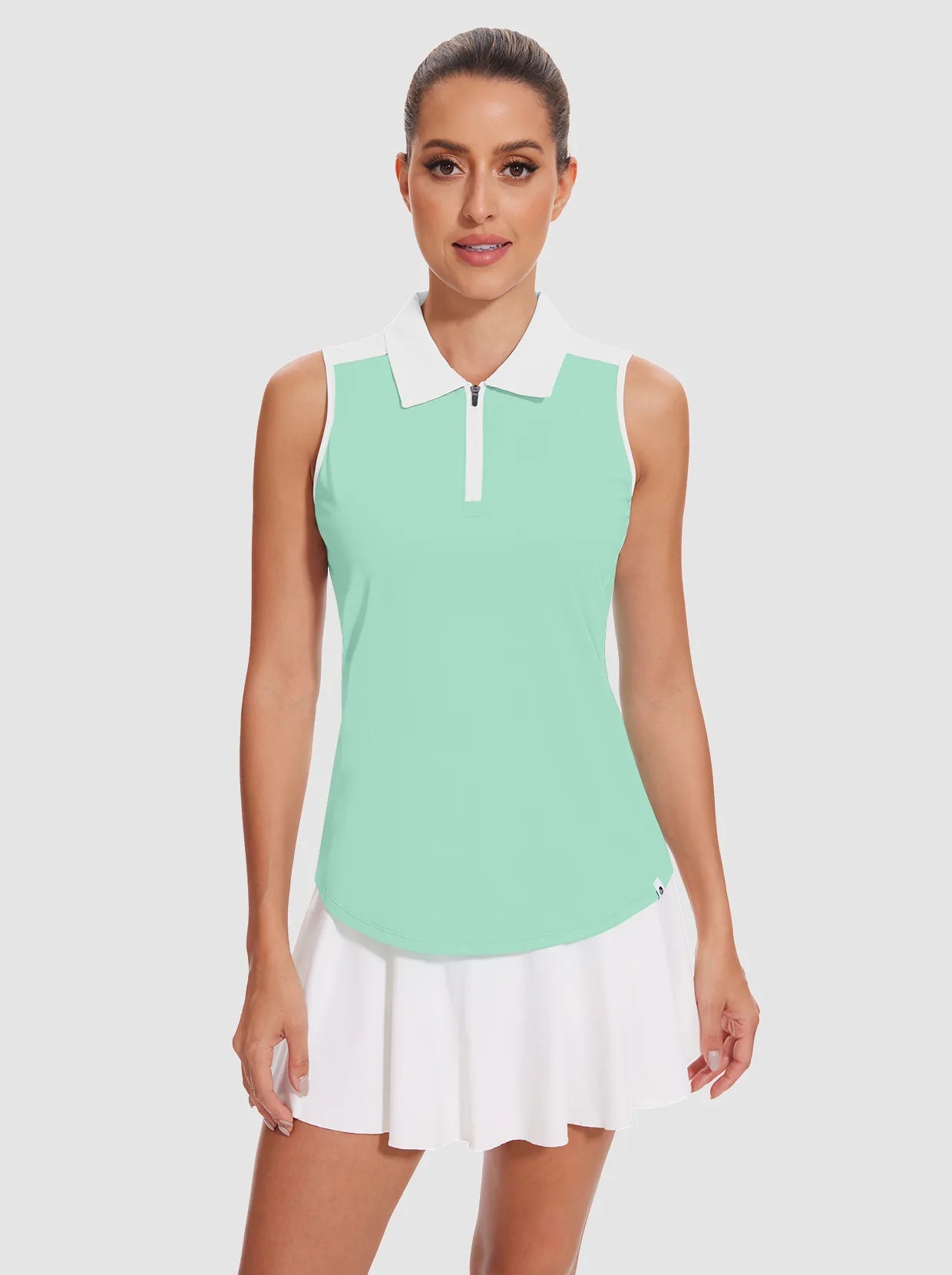 Solid Color Quarter-zip Sleeveless Polo Shirt For Women