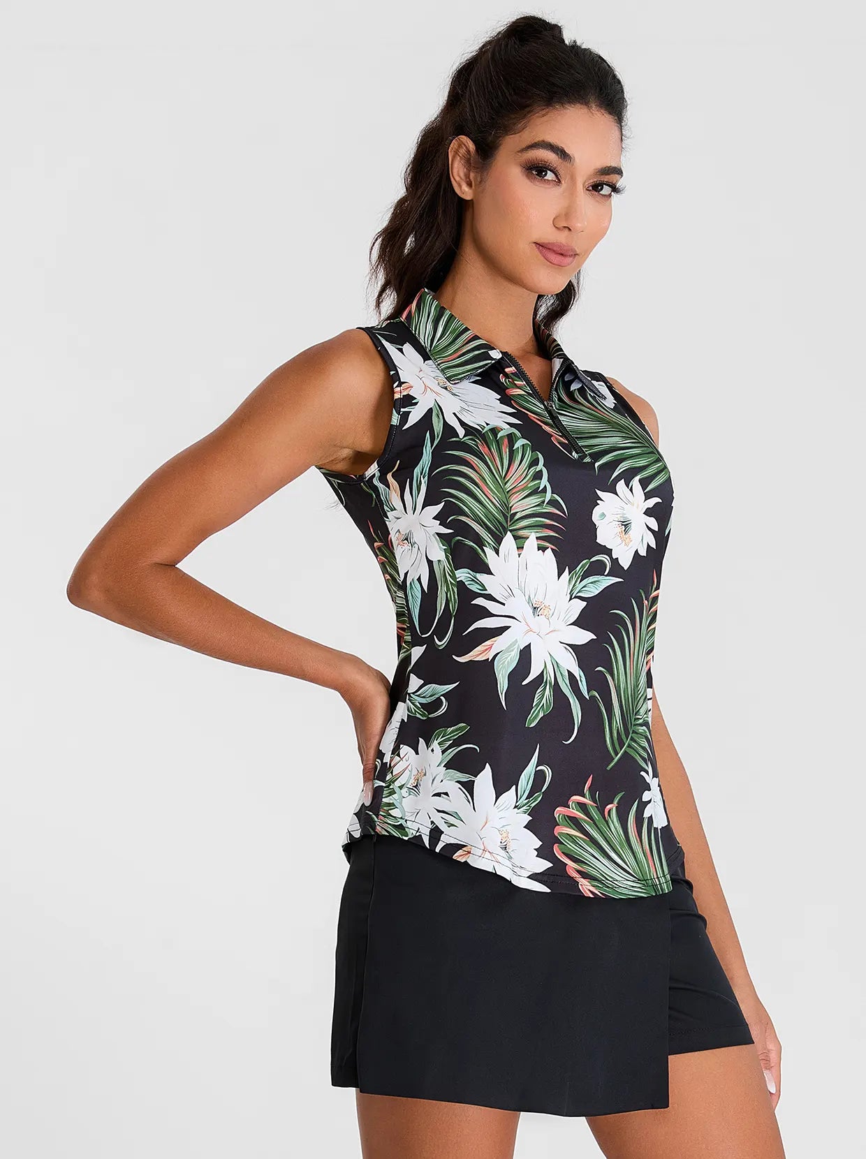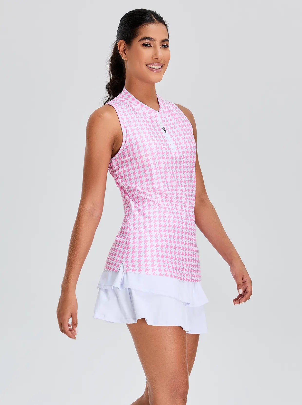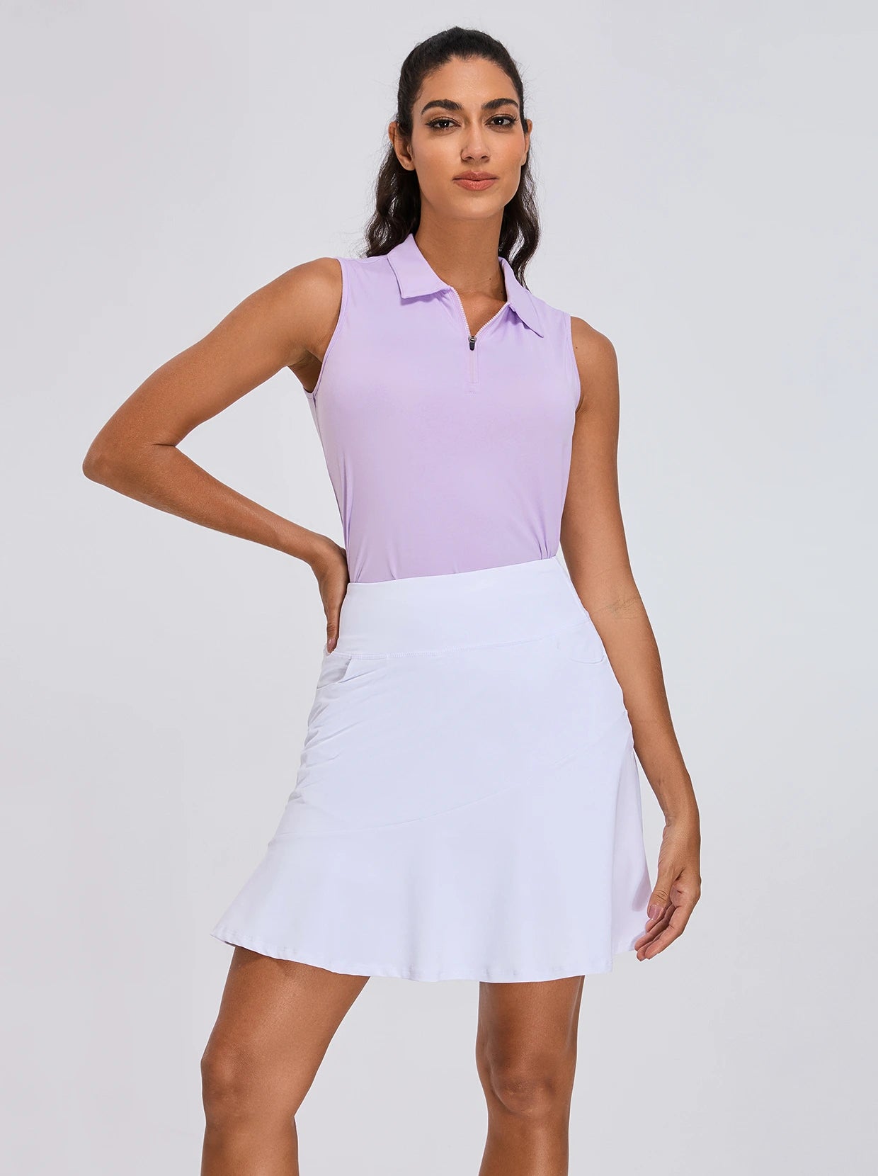 Solid Color Quarter-zip Sleeveless Polo Shirt For Women