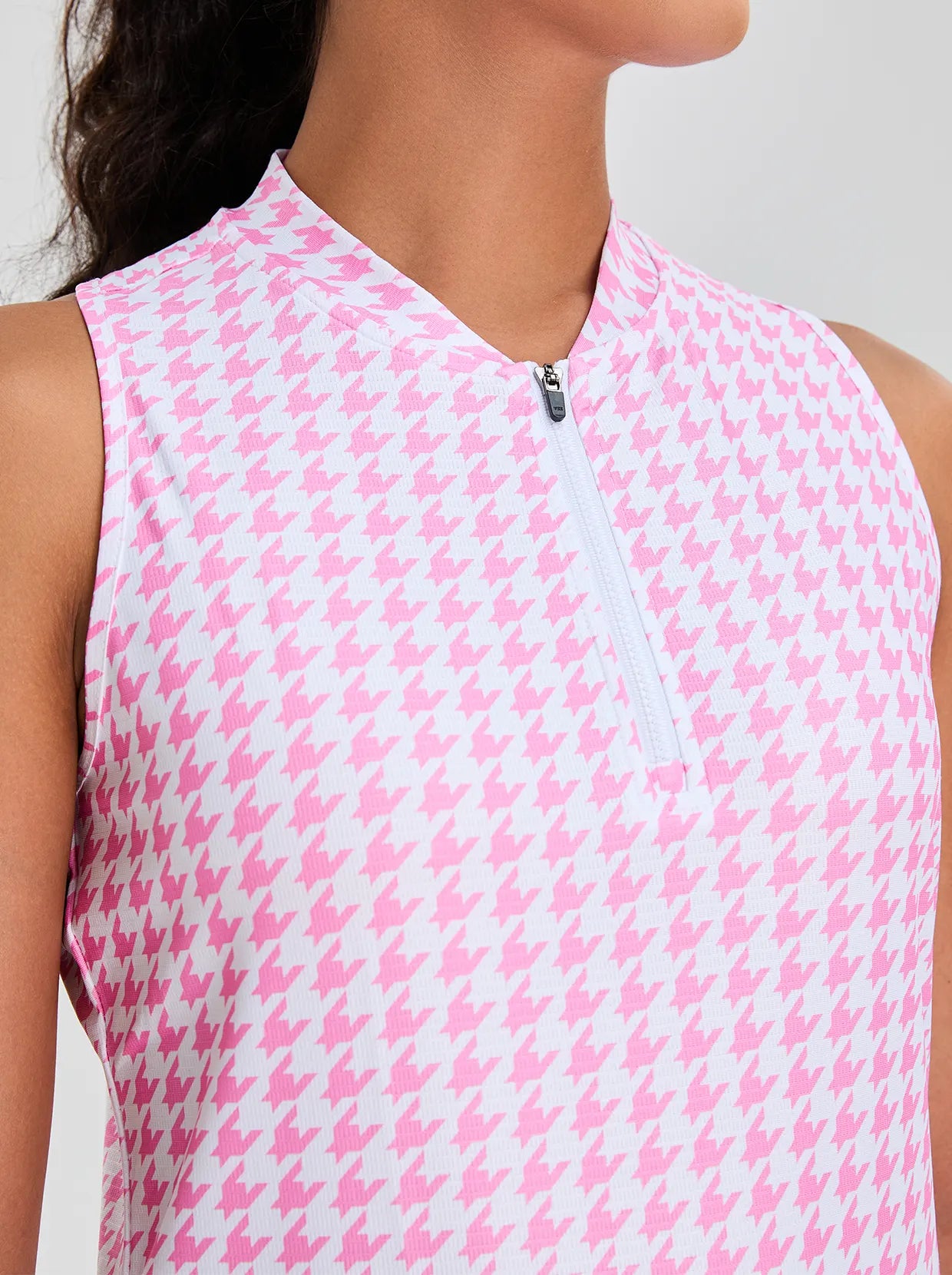 Rose Red Classic Quarter-zip Sleeveless Polo Shirt