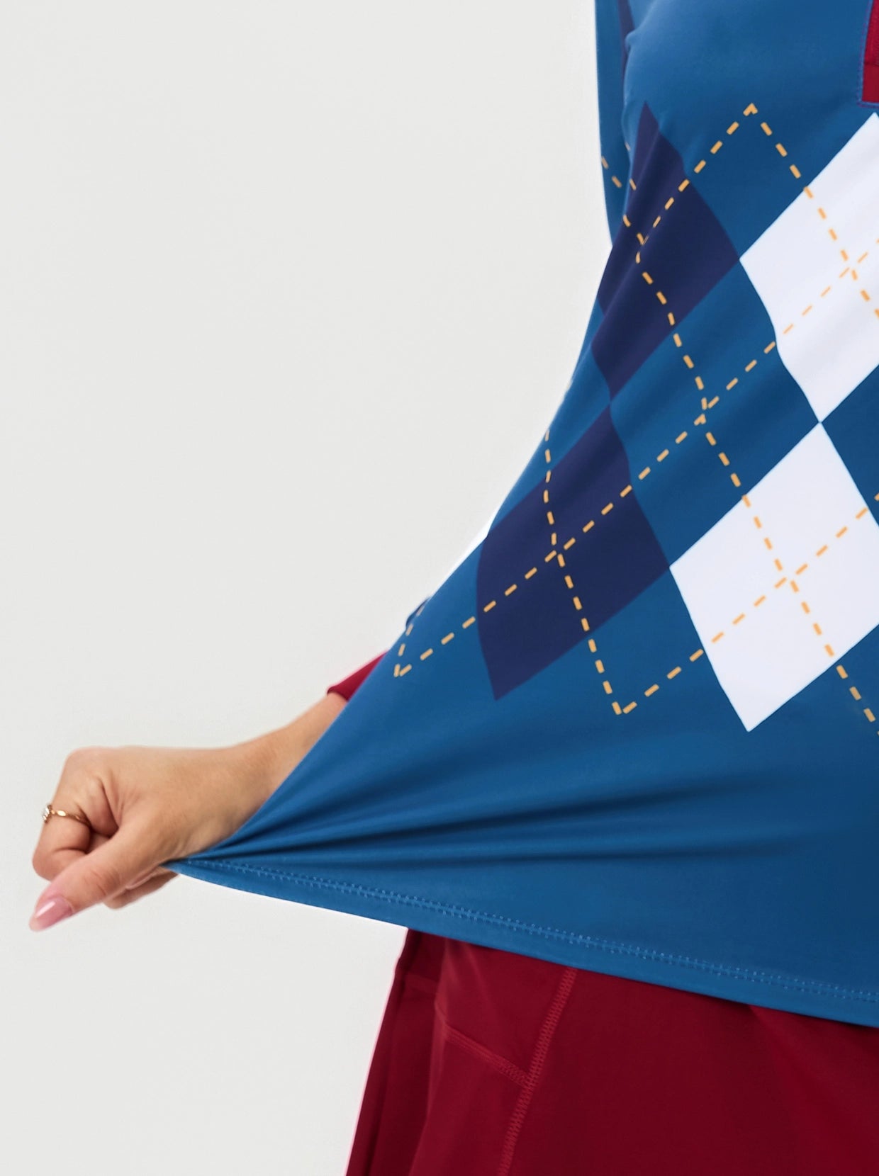 When shopping for ladies' golf tops, check that the fabric stretches with your body. Tops made from materials like spandex or elastane provide the flexibility you need while ensuring the women's golf top fits snugly and comfortably, enhancing both style and performance.