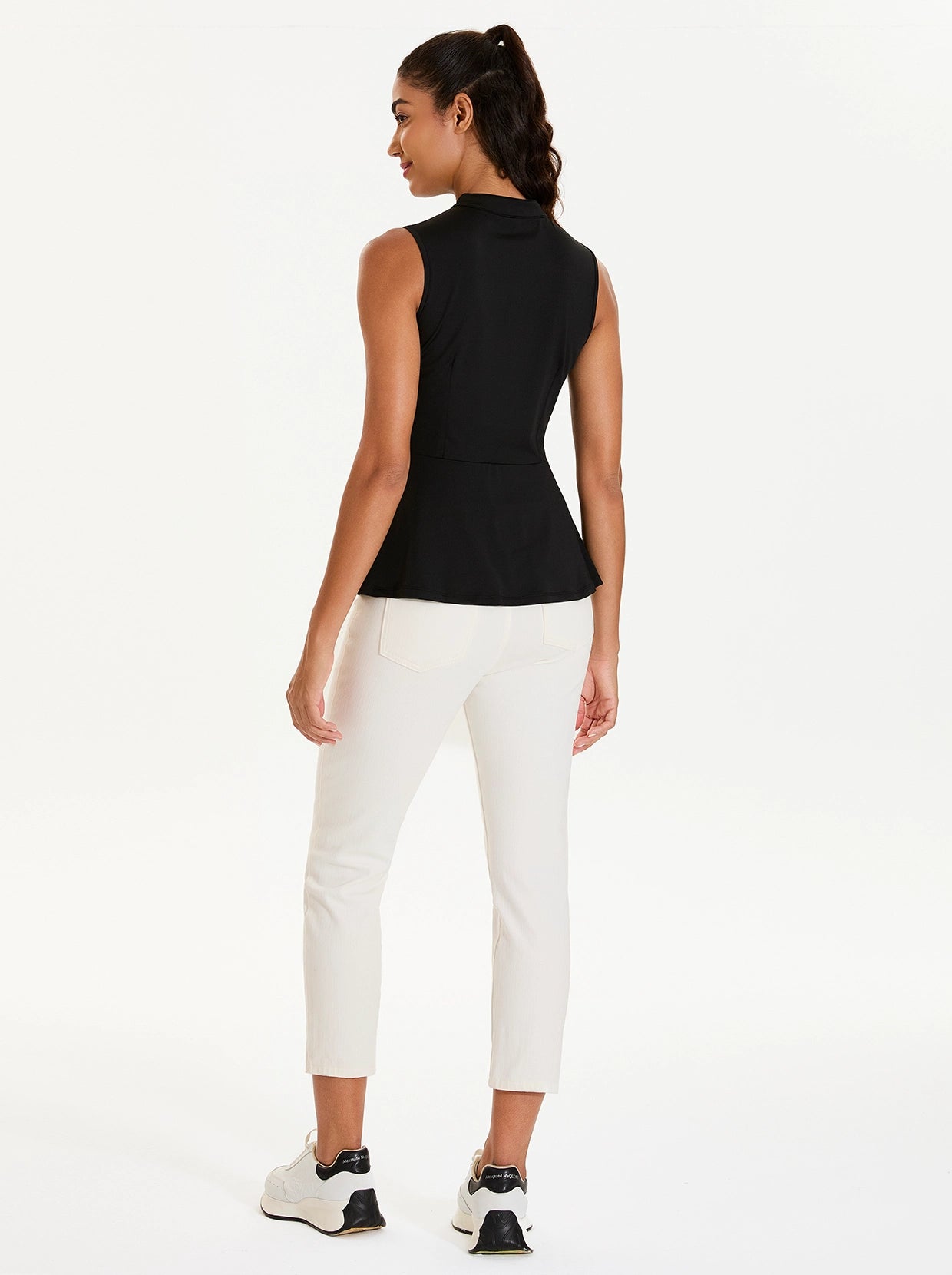 Solid Color Quarter-zip Sleeveless Polo Shirt For Women